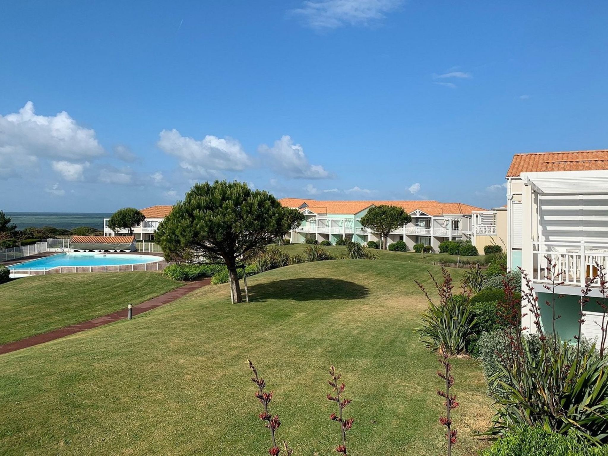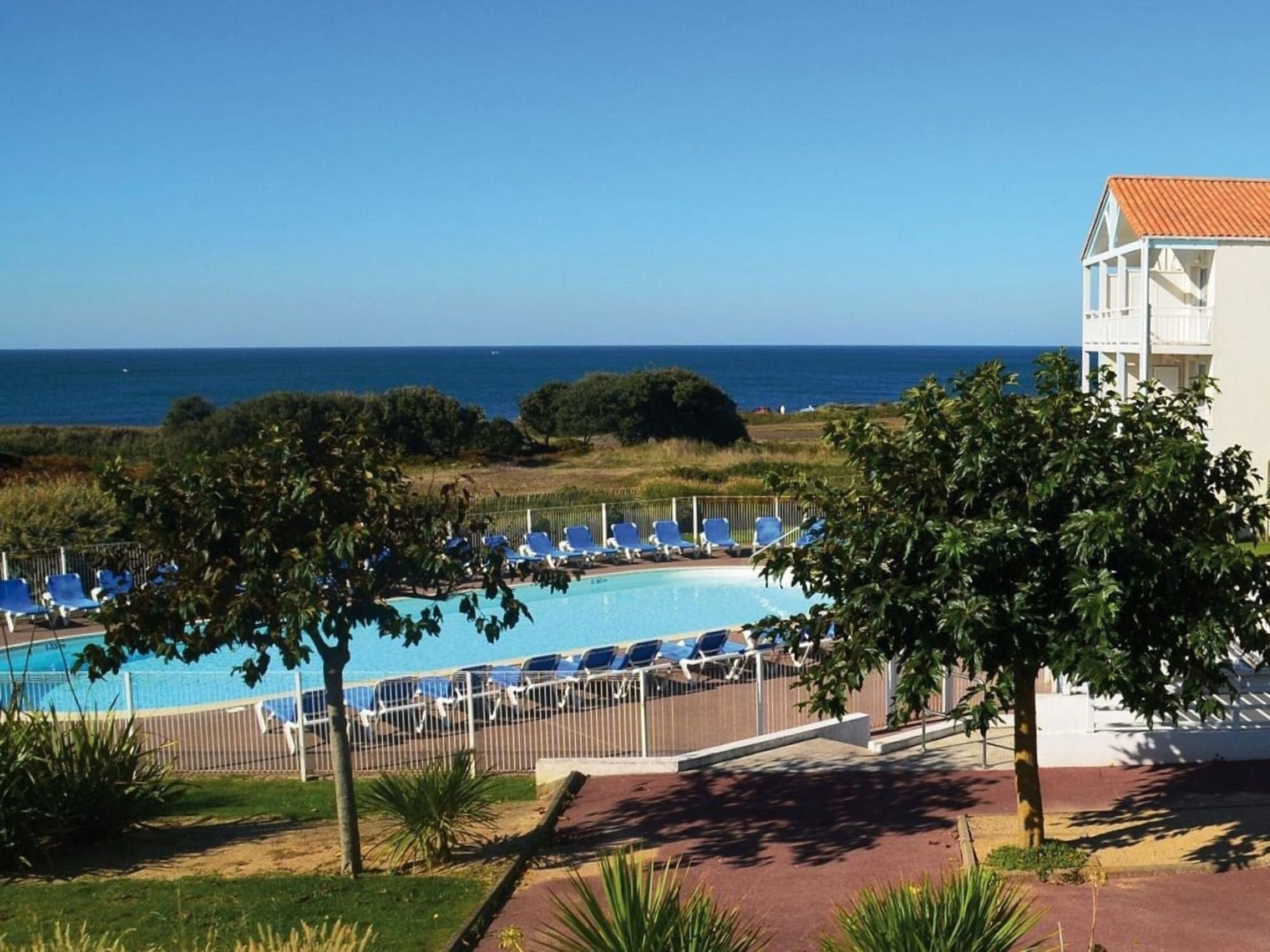 Beautiful residence. In the district of La Corniche-Château d'Olonne 4 km from the centre of Sables d'Olonne, 200 m from the sea, 1.4 km from the beach. For shared use: property with lawn and plants, beautiful garden to relax, 2 swimming pools heated (12 x 5 m, depth 150 cm, seasonal availability: 01.May. - 30.Sep.). Table tennis, boccia, children's playground. In the complex: reception, washing machine (for shared use, extra). Parking. Grocery 300 m, shopping centre 2 km, bus stop 300 m, railway station "Les Sables Olonne" 4.5 km, sandy beach "Plage du Tanchet" 1.4 km, thermal baths "Thalassothérapie" 2 km. Sports harbour 5 km, surf school 1.4 km, cycle lane 200 m. Nearby attractions: St Gilles Croix de Vie 30 km, Noirmoutier 65 km, Le Puy du Fou 80 km, Nantes 95 km, La Rochelle 100 km. Hiking paths: GR8 200 m. Residence with electric gates.