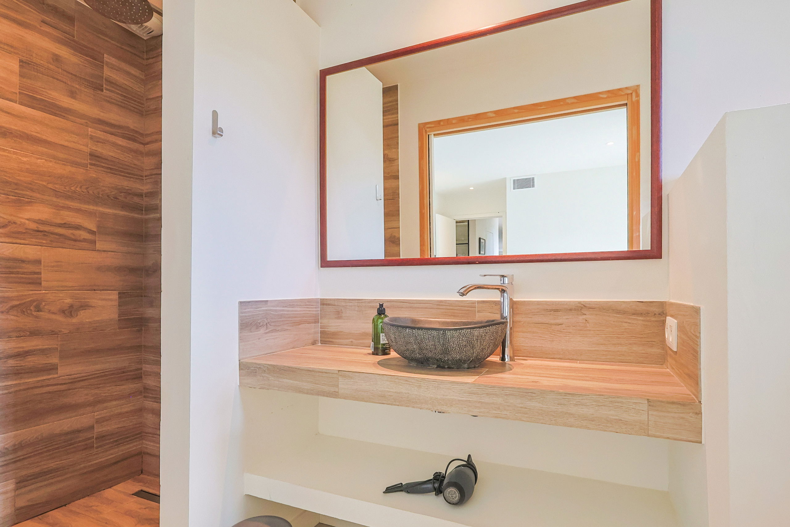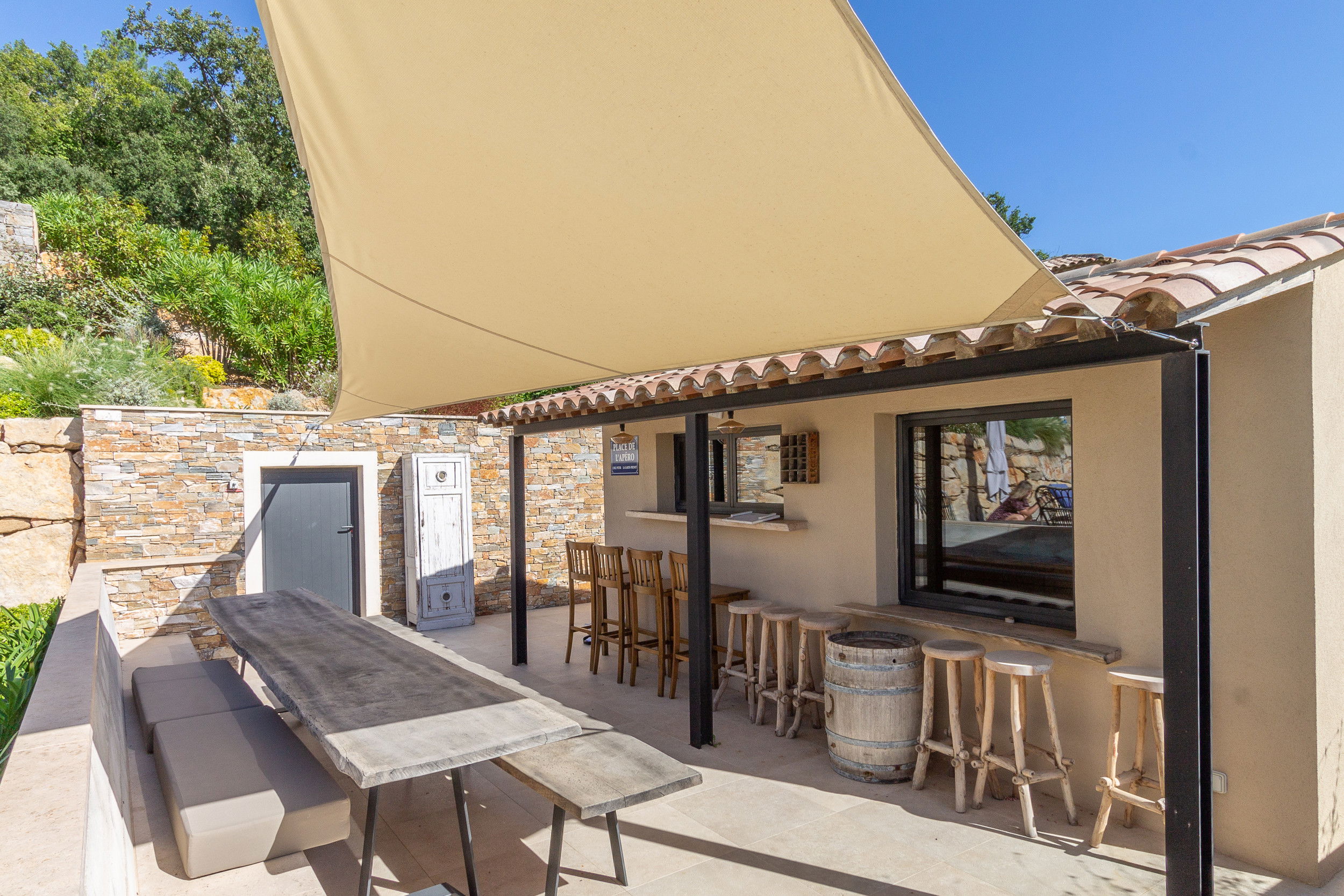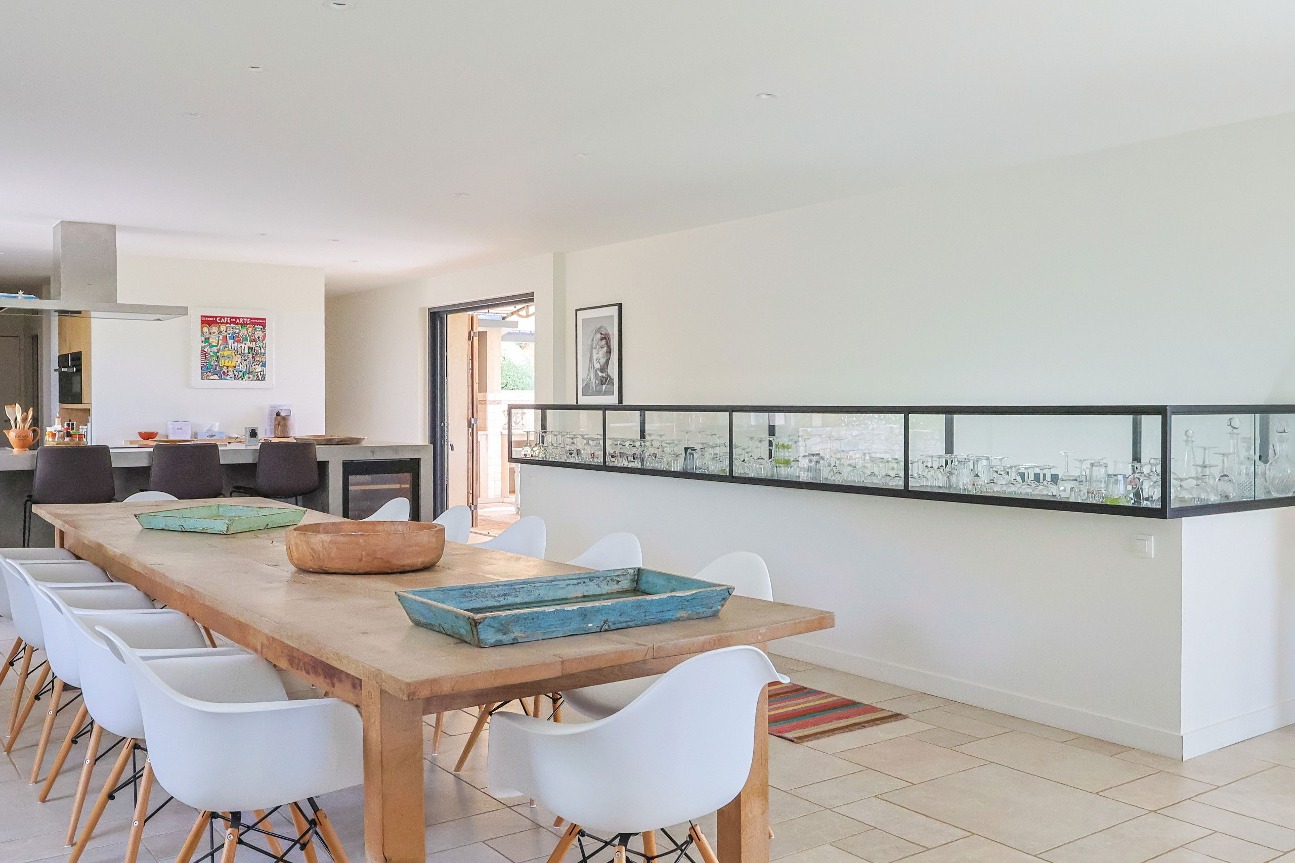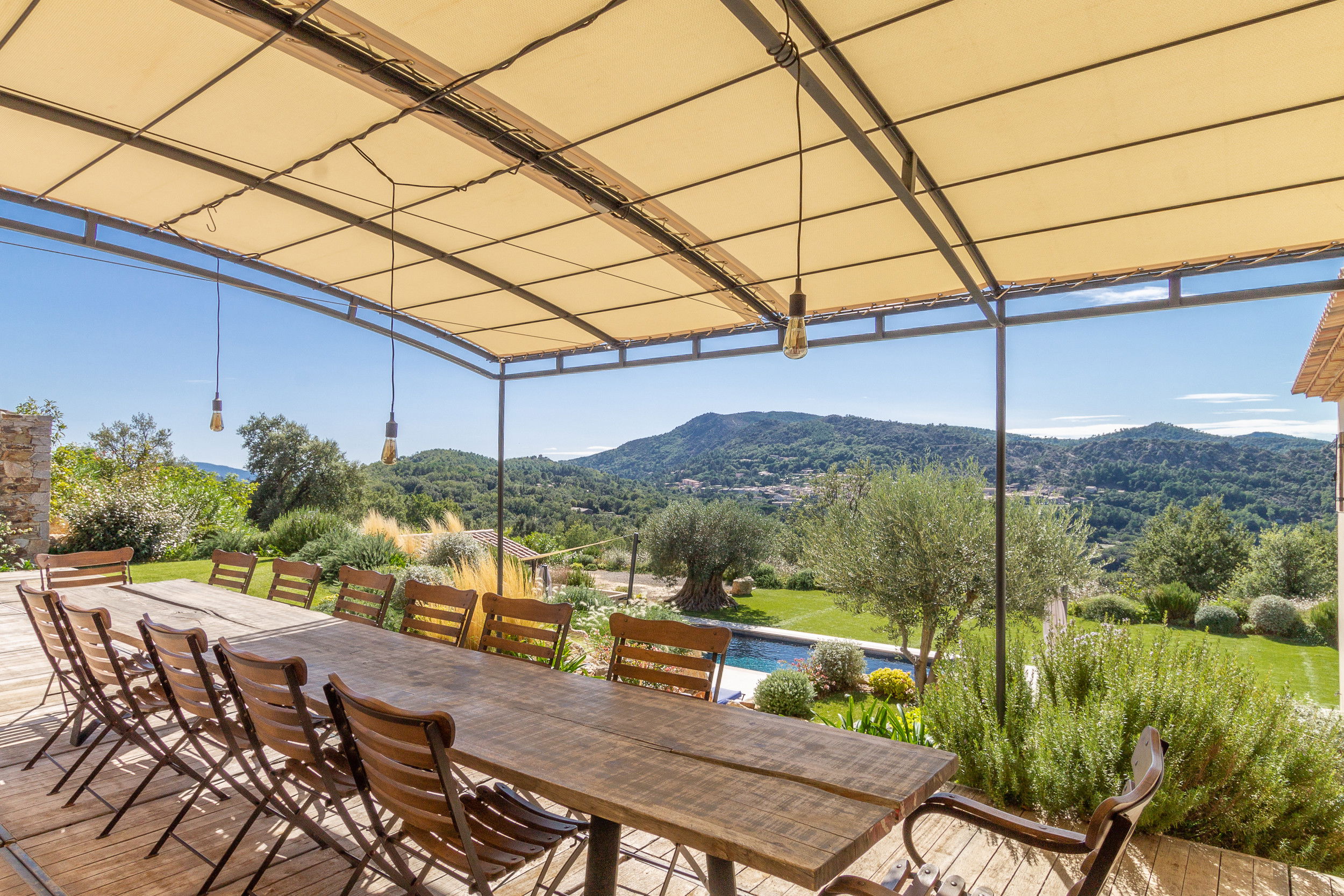 The outdoor kitchen is fully-fitted (barbecue, induction cooker, sink) allowing you to have a lovely dinner at the large table on the covered terrace while enjoying the wonderful view.