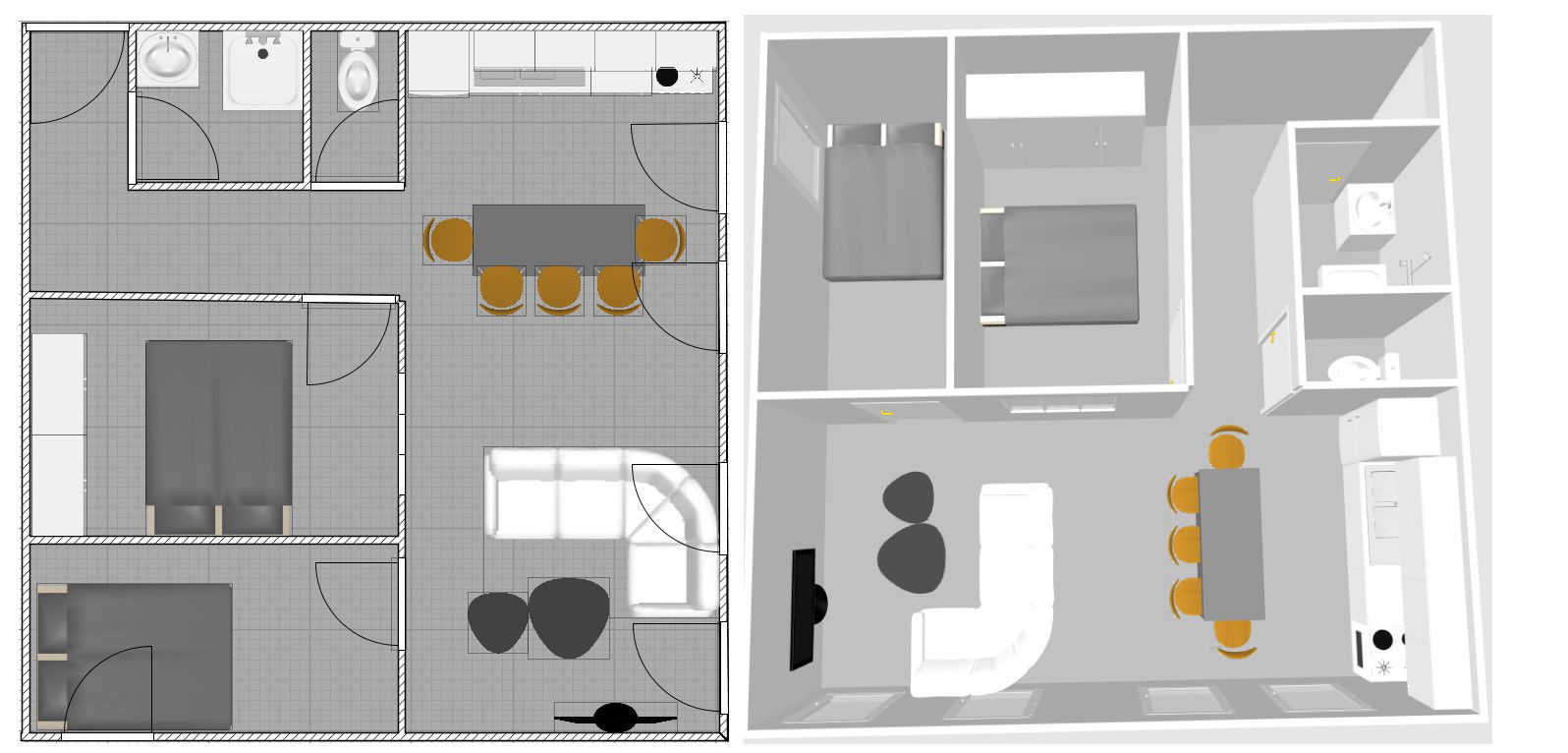3 rooms of 44 m2 which can accommodate 4 people On the 1st floor of the...