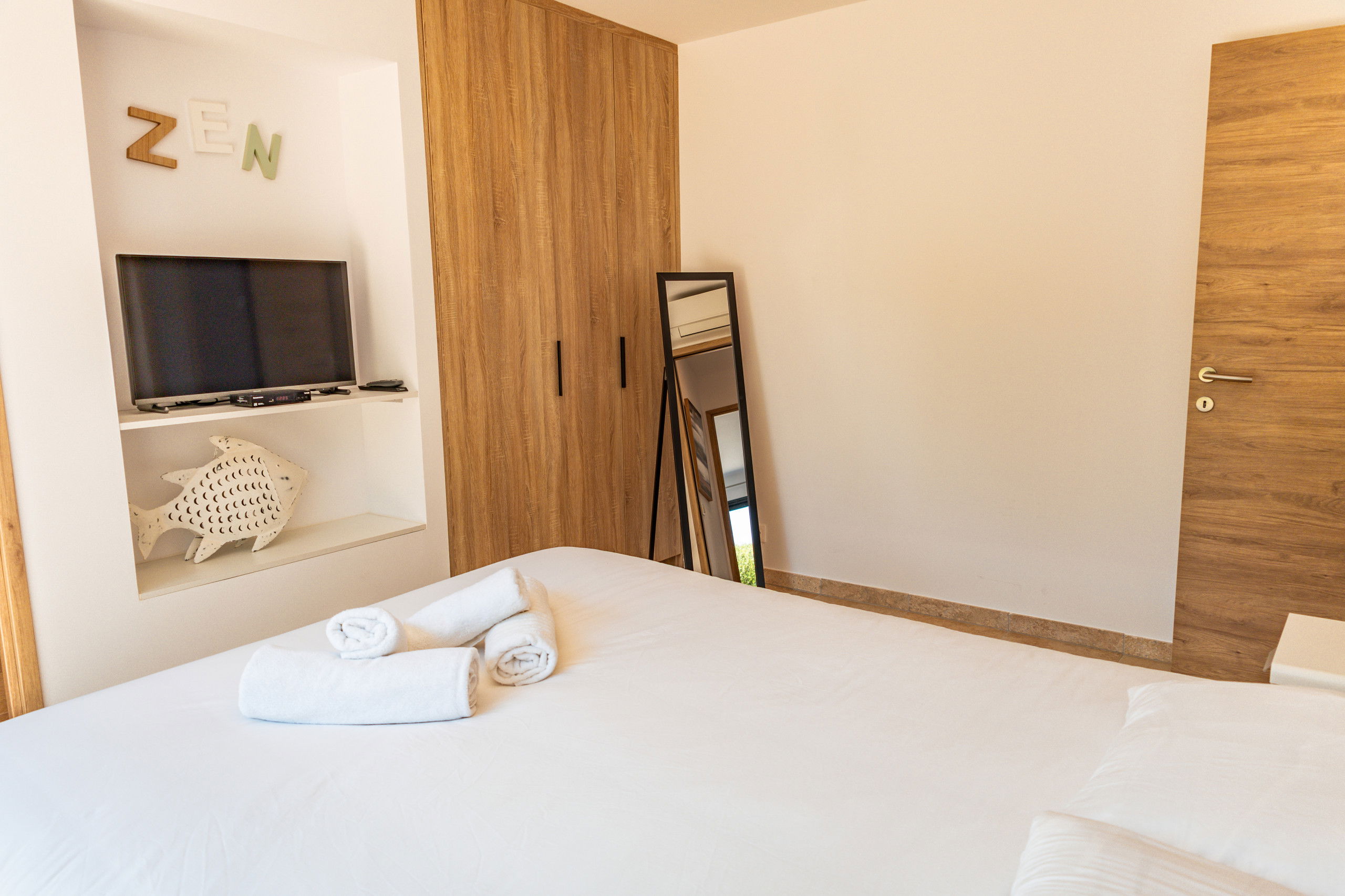 • Bedroom 1: Queen-size bed (160x200) with TV, private shower room and toilet.