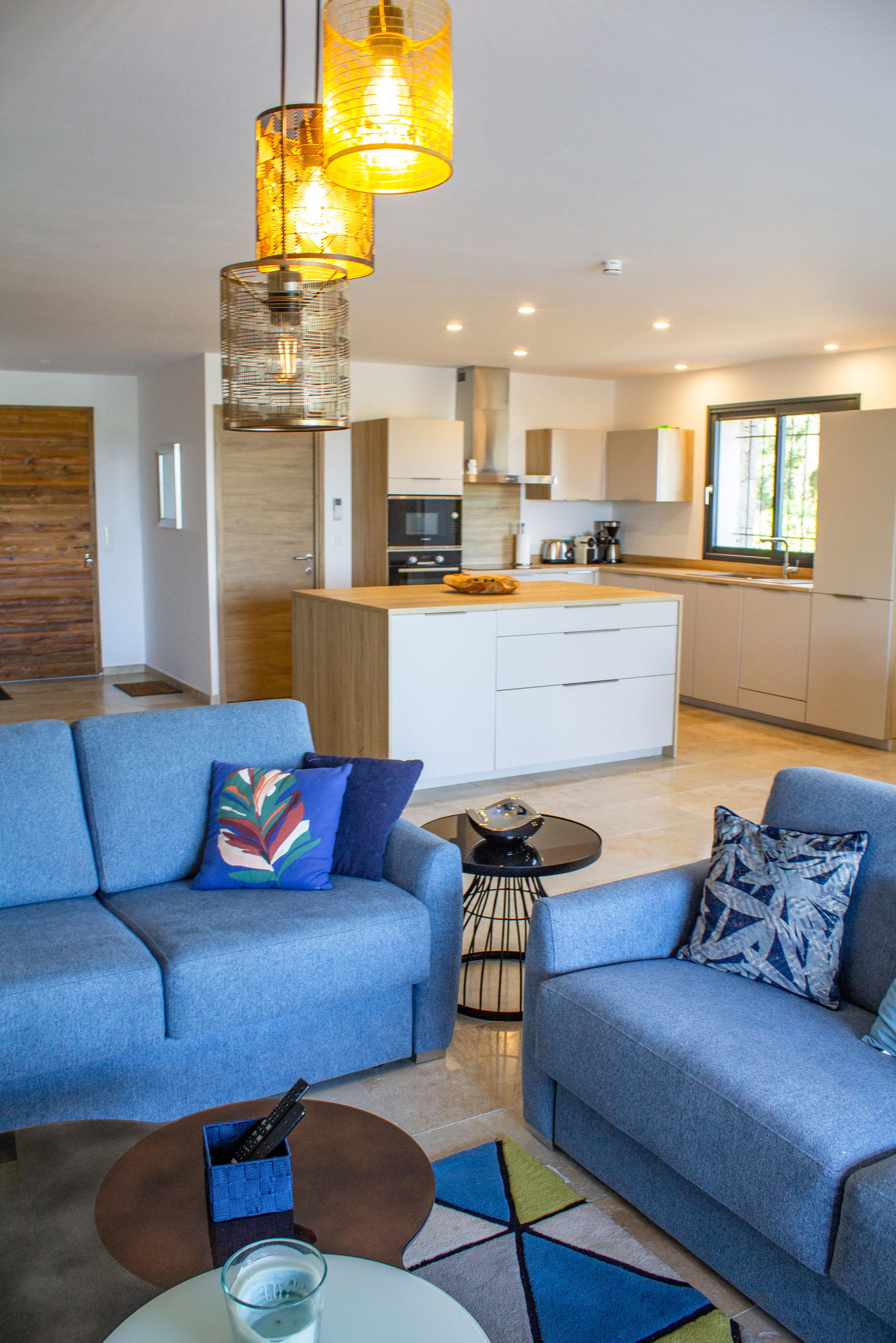 • Living room and open kitchen: A bright and cosy space, with TV, a fully equipped kitchen: dishwasher, microwave, Nespresso coffee machine, filter coffee maker.