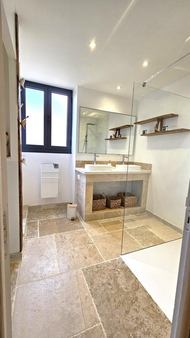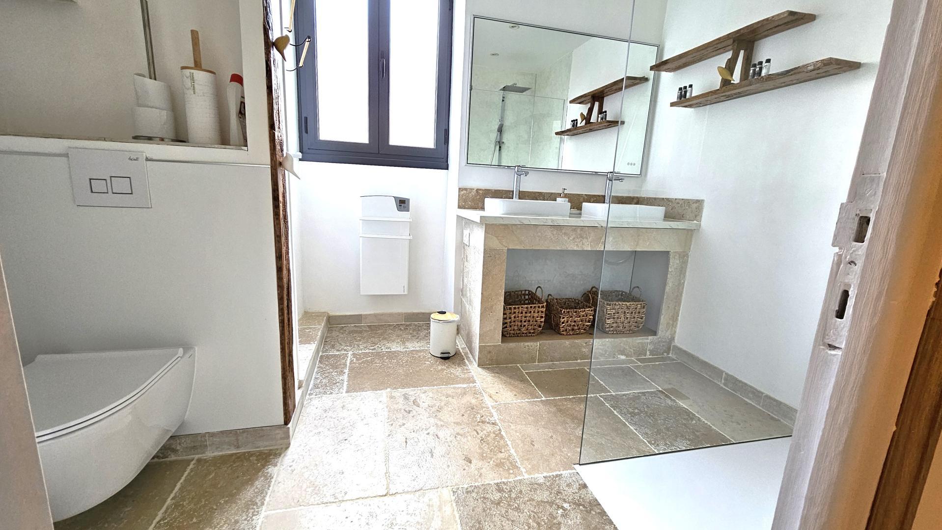 Sleeping area: 4 bedrooms, two of which each have a 160cm double bed and its own bathroom, the 3rd bedroom has a 180cm double bed and the 4th bedroom has a 140cm double bed. Walk-in shower with WC and a separate WC with washbasin. Beds made on arrival.