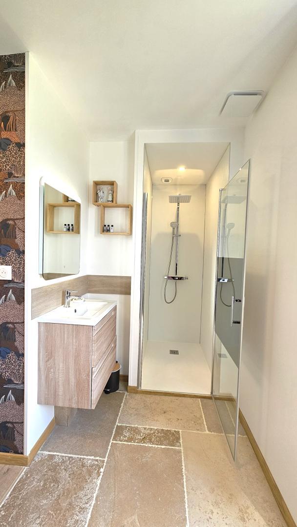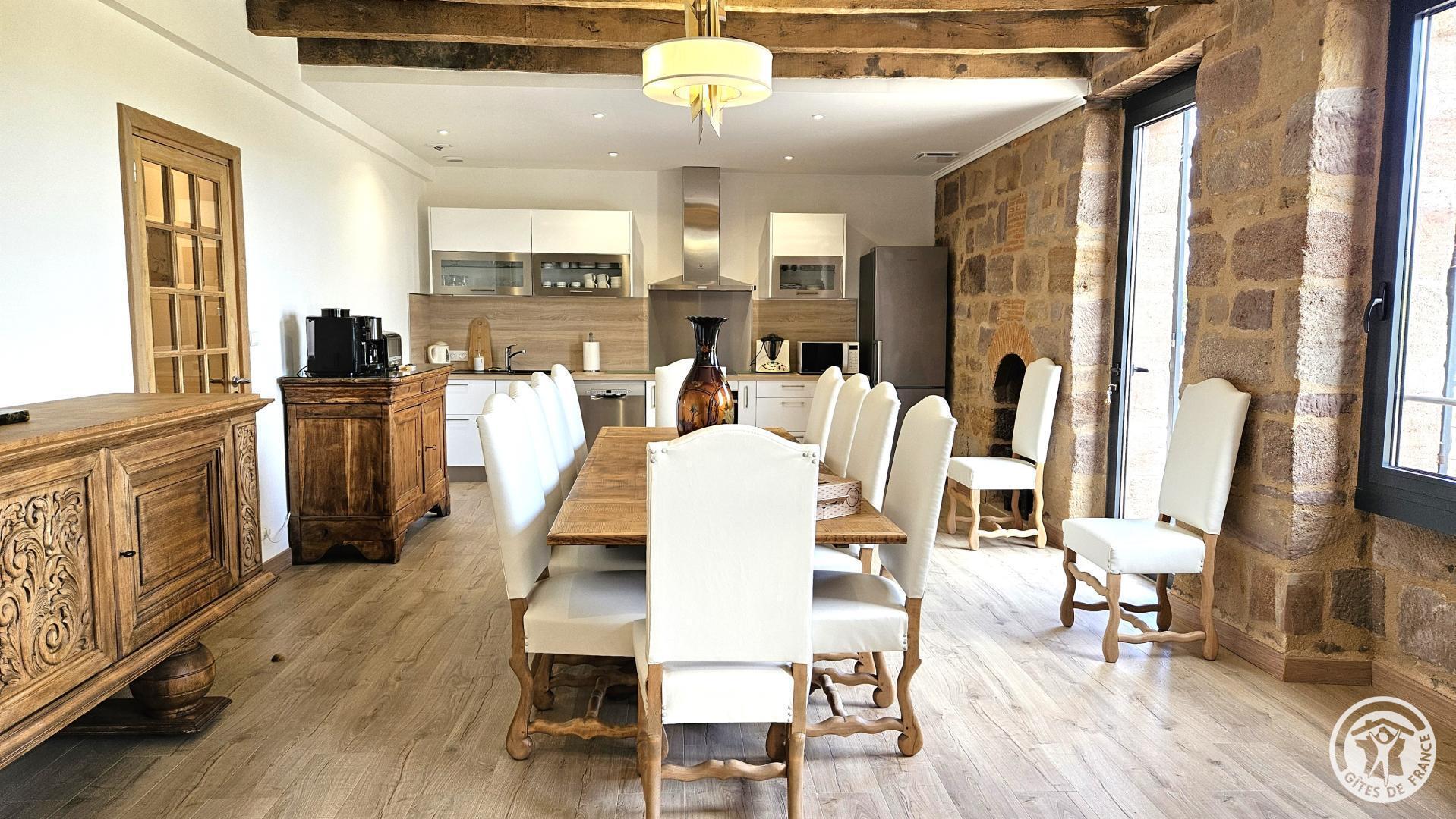 Gîte "Le nid des Grisets" typically Corrèze with its beautiful stones, fully air-conditioned, is composed of a large living room of 68m², lounge, dining room Wifi with fiber, television and very well-equipped open kitchen: induction, fridge-freezer, dishwasher, pyrolysis oven, microwave, bean-to-cup coffee machine.
