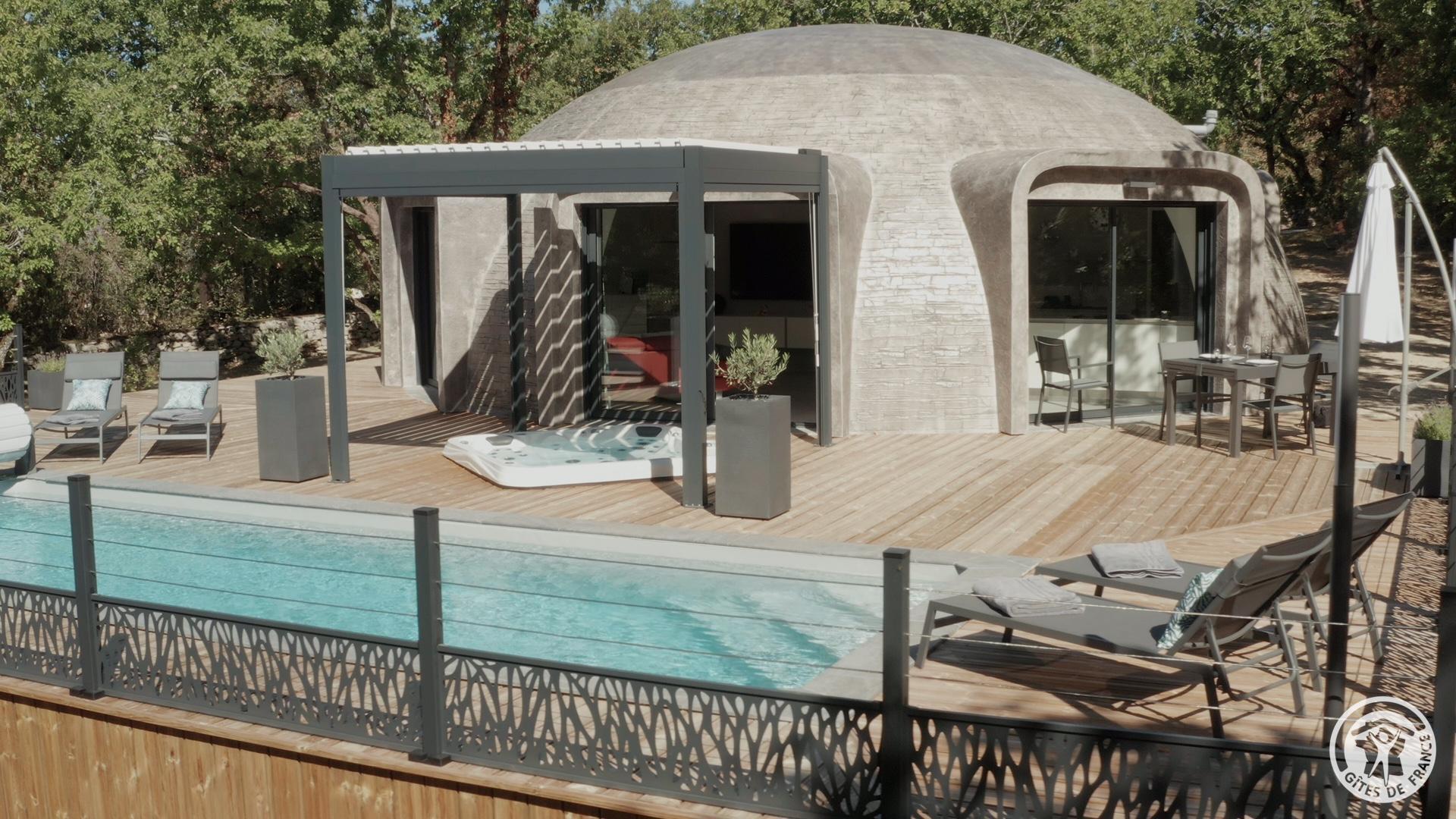 The Dome is located on a 3000m² plot in a quiet area, with a beautiful 100m² terrace facing due south.