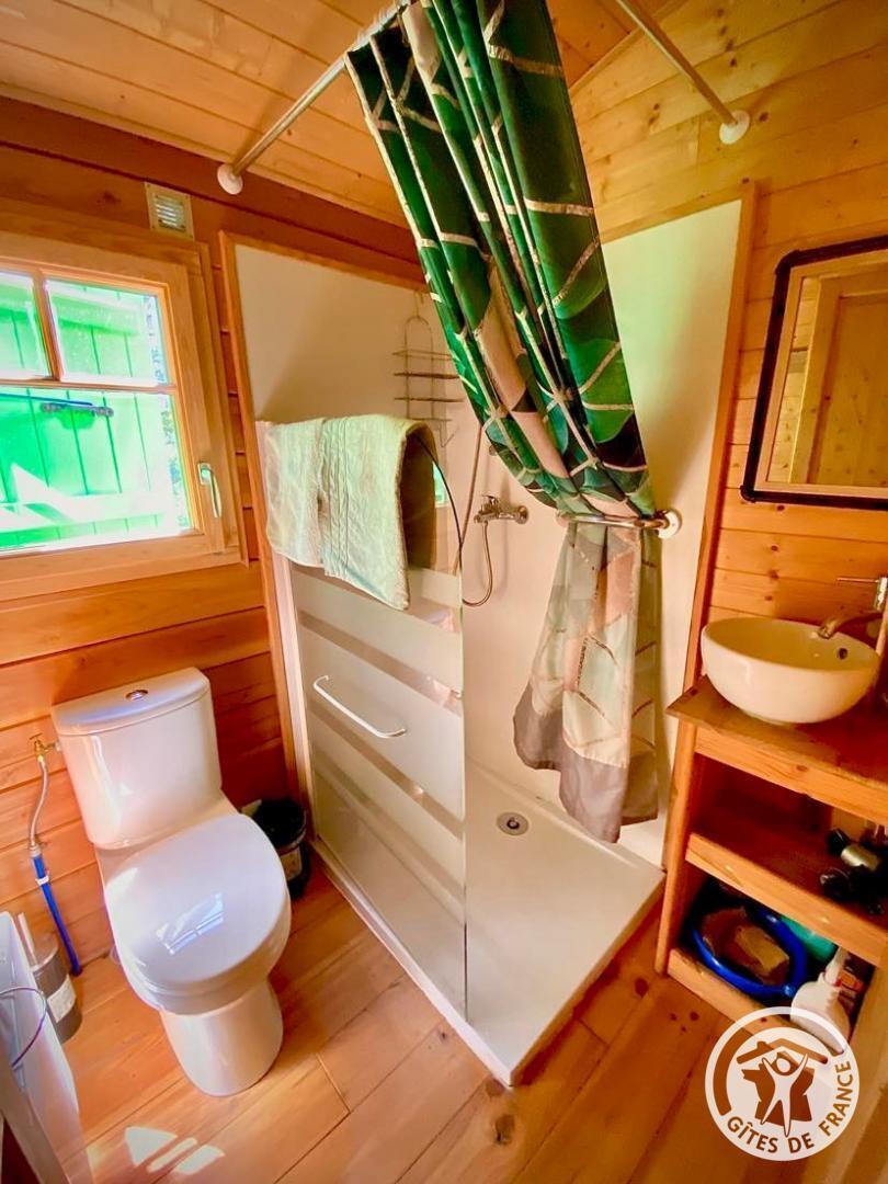 End of stay cleaning package: €50 22m² caravan with its terrace, all in wood, very comfortable: equipped kitchen as well as a bench seat for 2 people (90 cm), corridor serving the bathroom and toilet as well as the bedroom equipped with a 160 cm bed