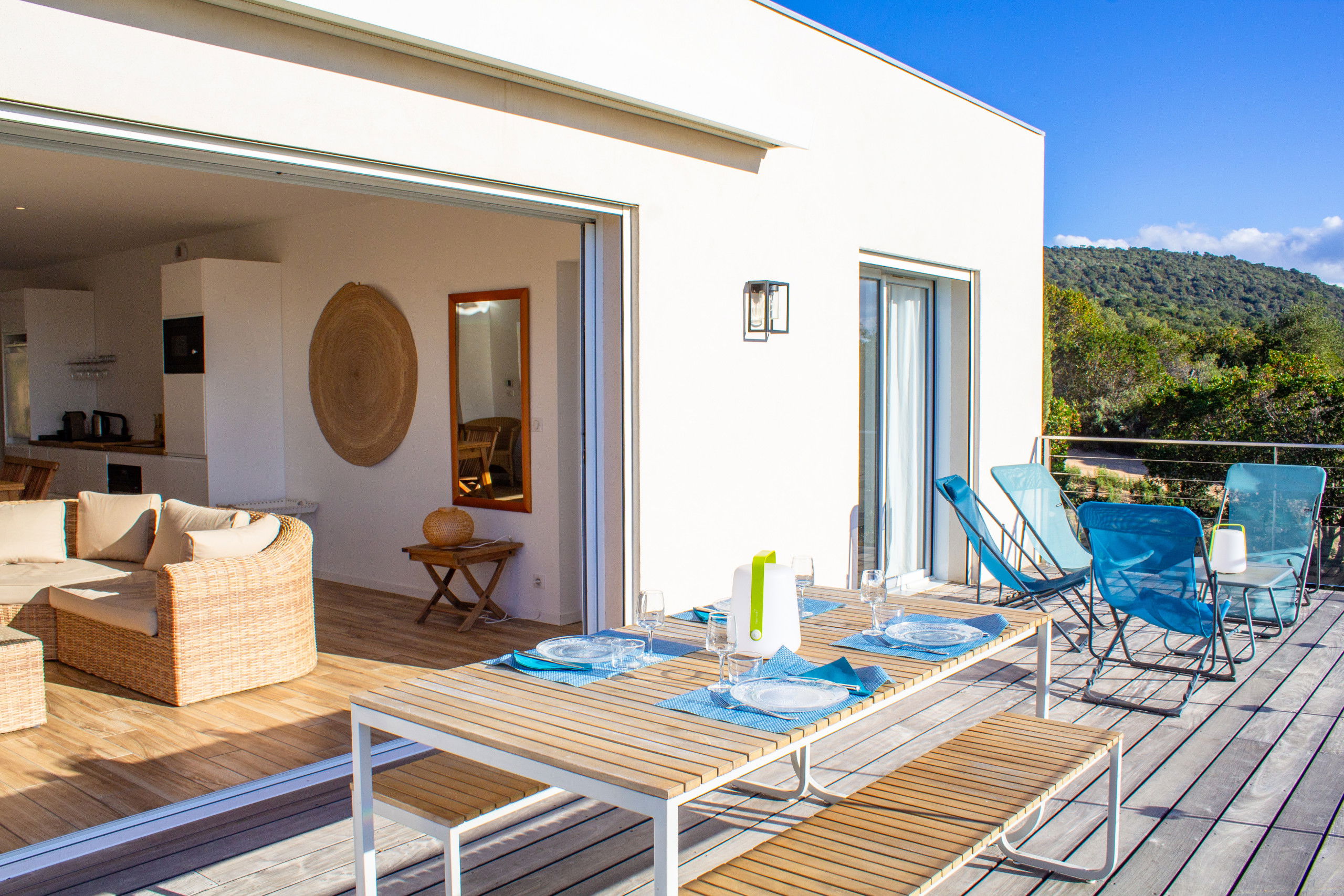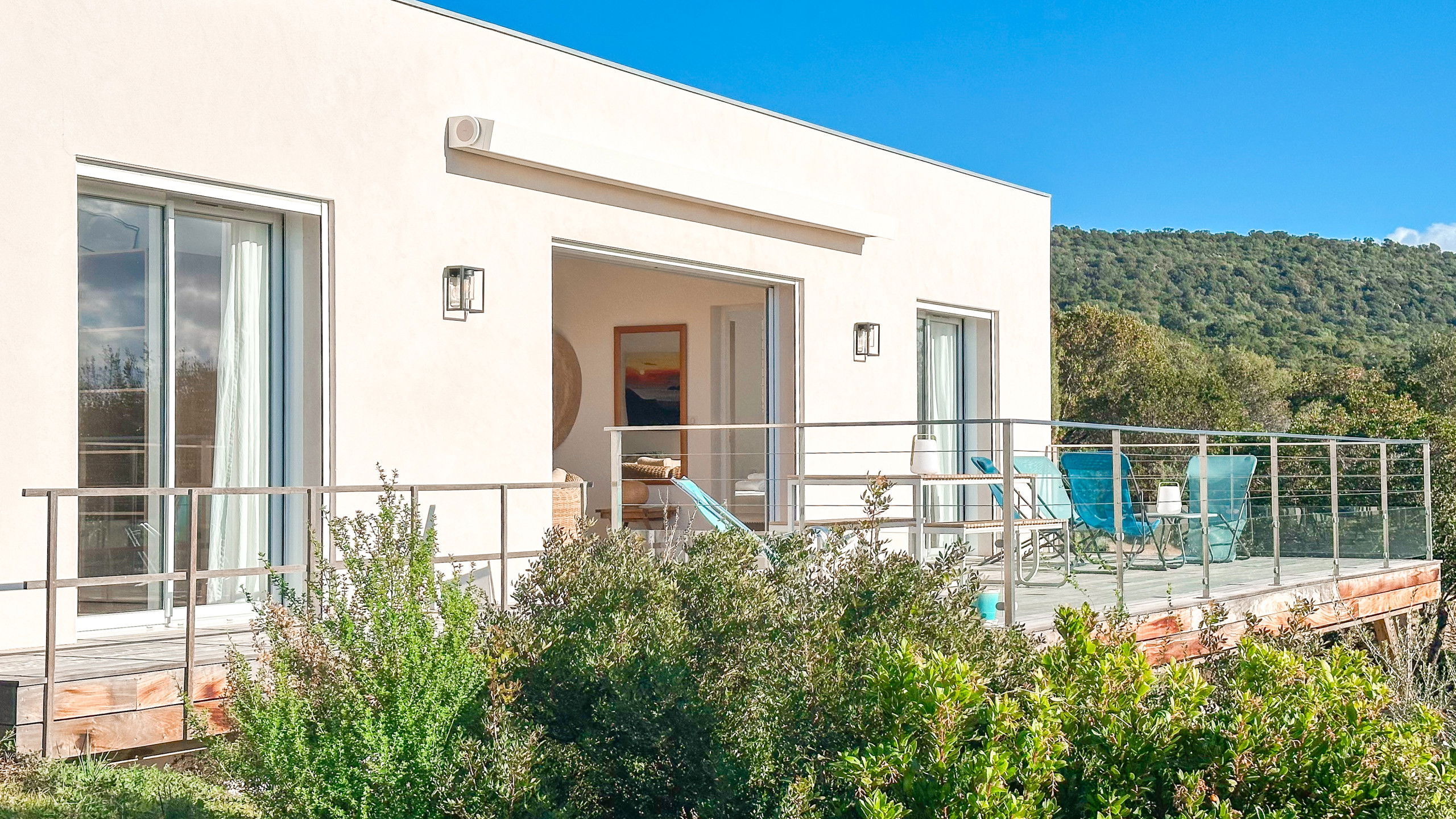 Casa Luna is a bright villa in the heart of the Corsican maquis, perfectly equipped for a convivial stay with family or friends, close to the most beautiful beaches in the region and the natural pools of the Cavu.