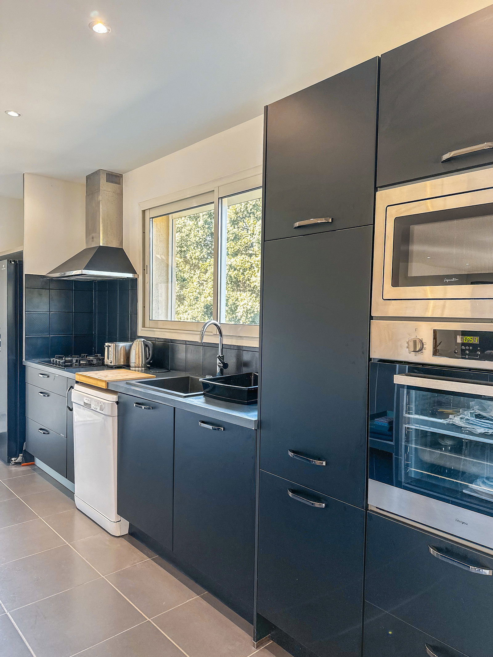 Open kitchen: Modern and fully-equipped, it gives access to two small terraces for outdoor meals. Equipment: dishwasher, microwave, oven, coffee machine, refrigerator.
