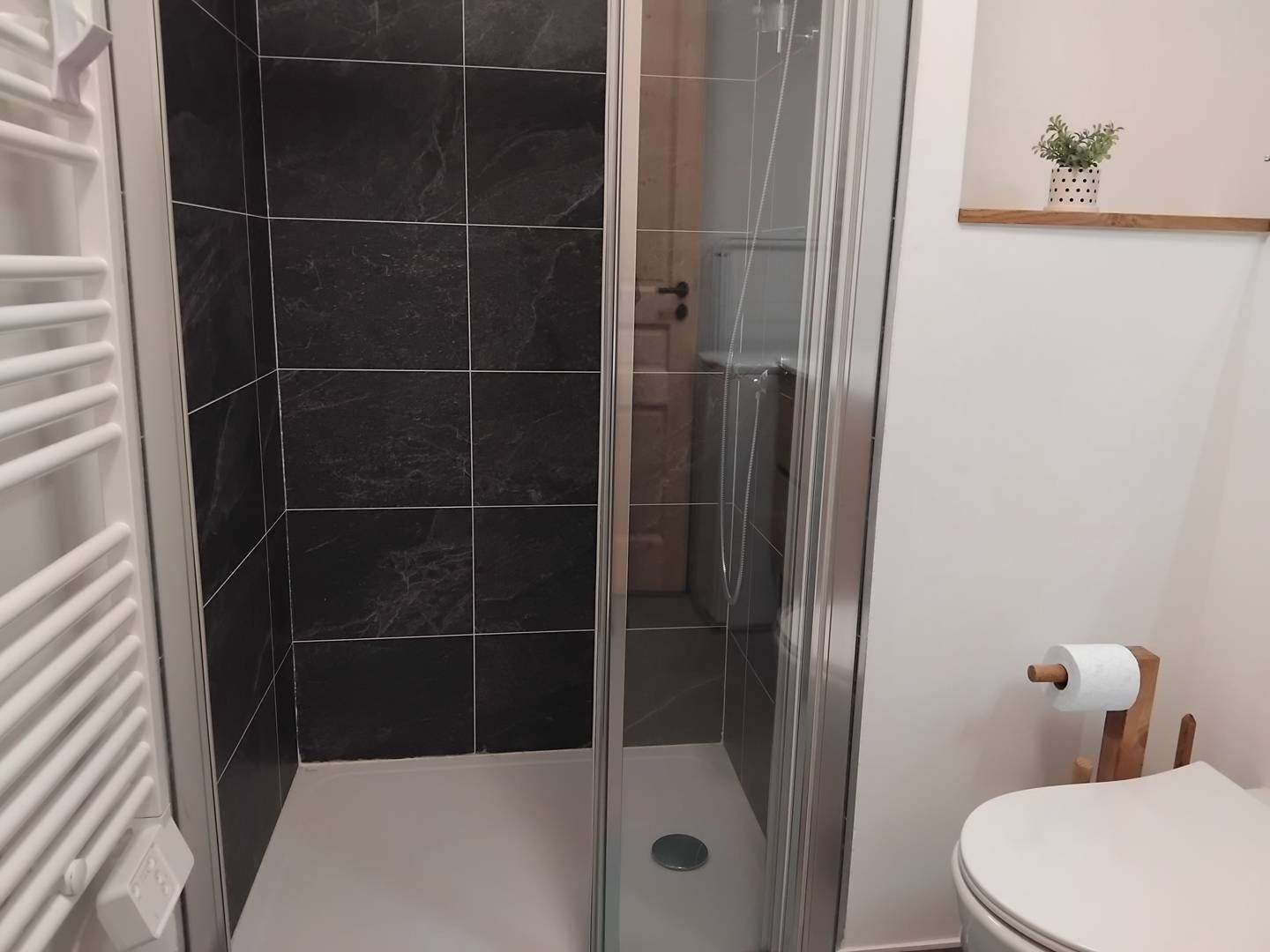 A shower room, and a separate toilet