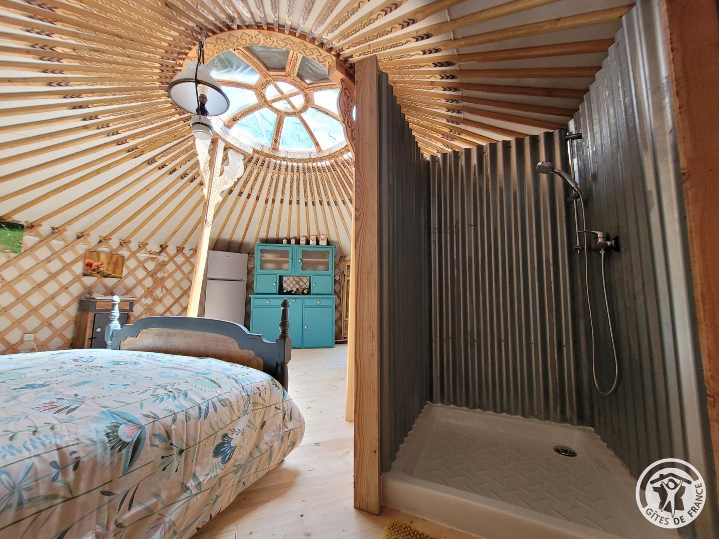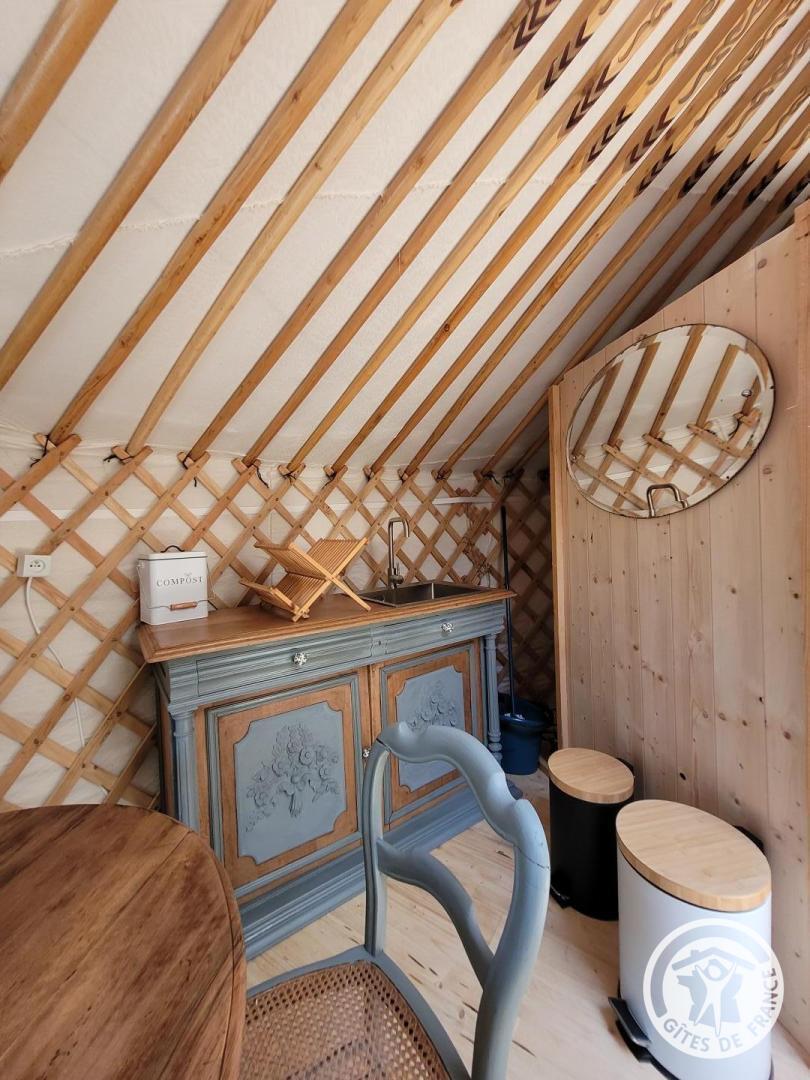 The Joulebois yurt consists of a kitchen and shower area inside. The layout is completed by dry toilets and an outdoor kitchen.
