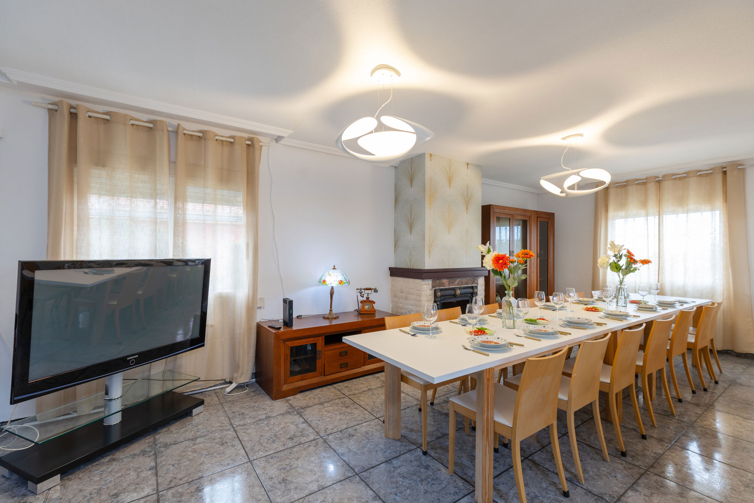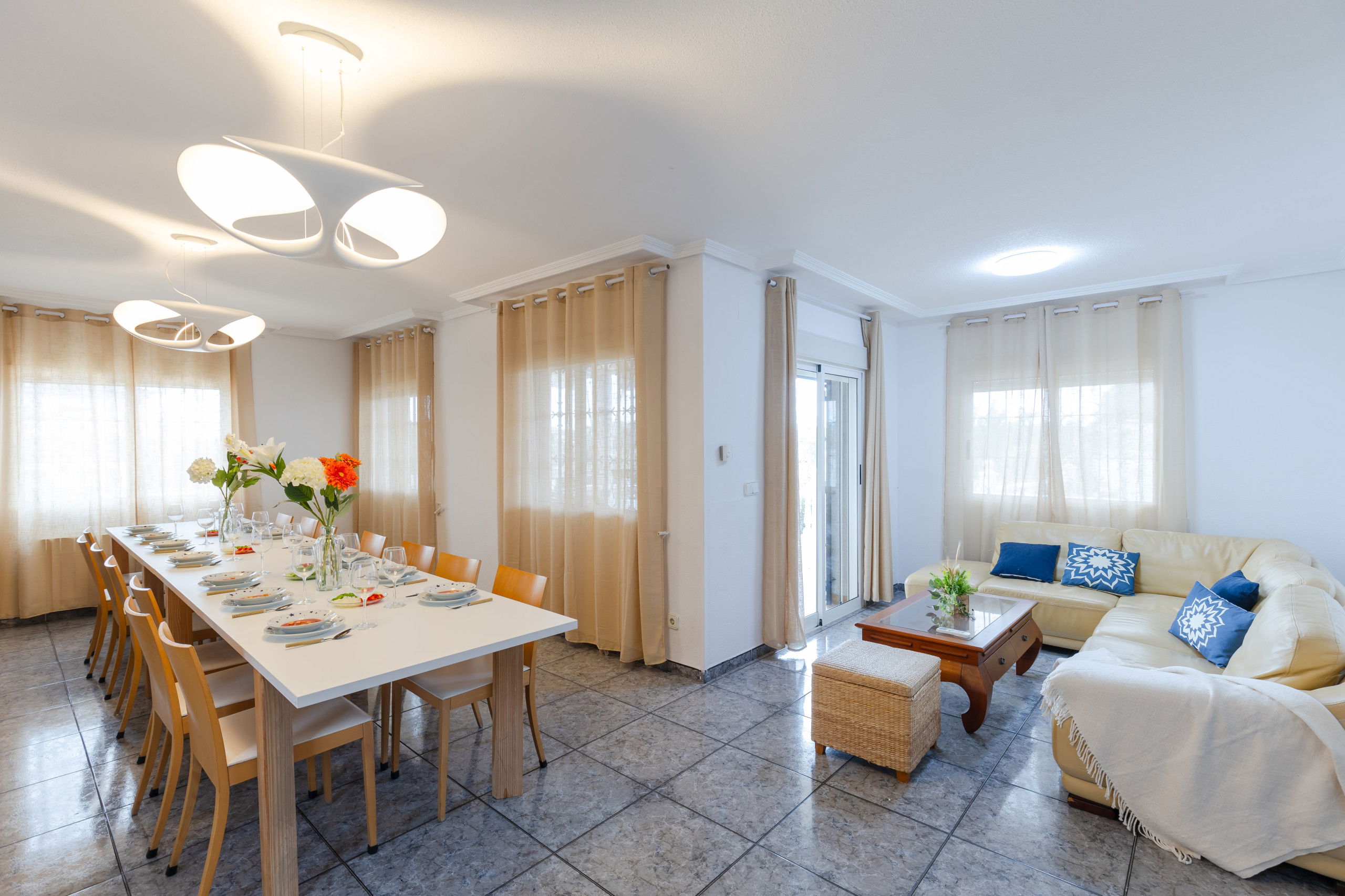 As soon as you set foot in this beautiful three-storey villa, you will be welcomed by the lovely and comfortable living room, elegantly decorated, which complements the picturesque location of Mutxamiel.