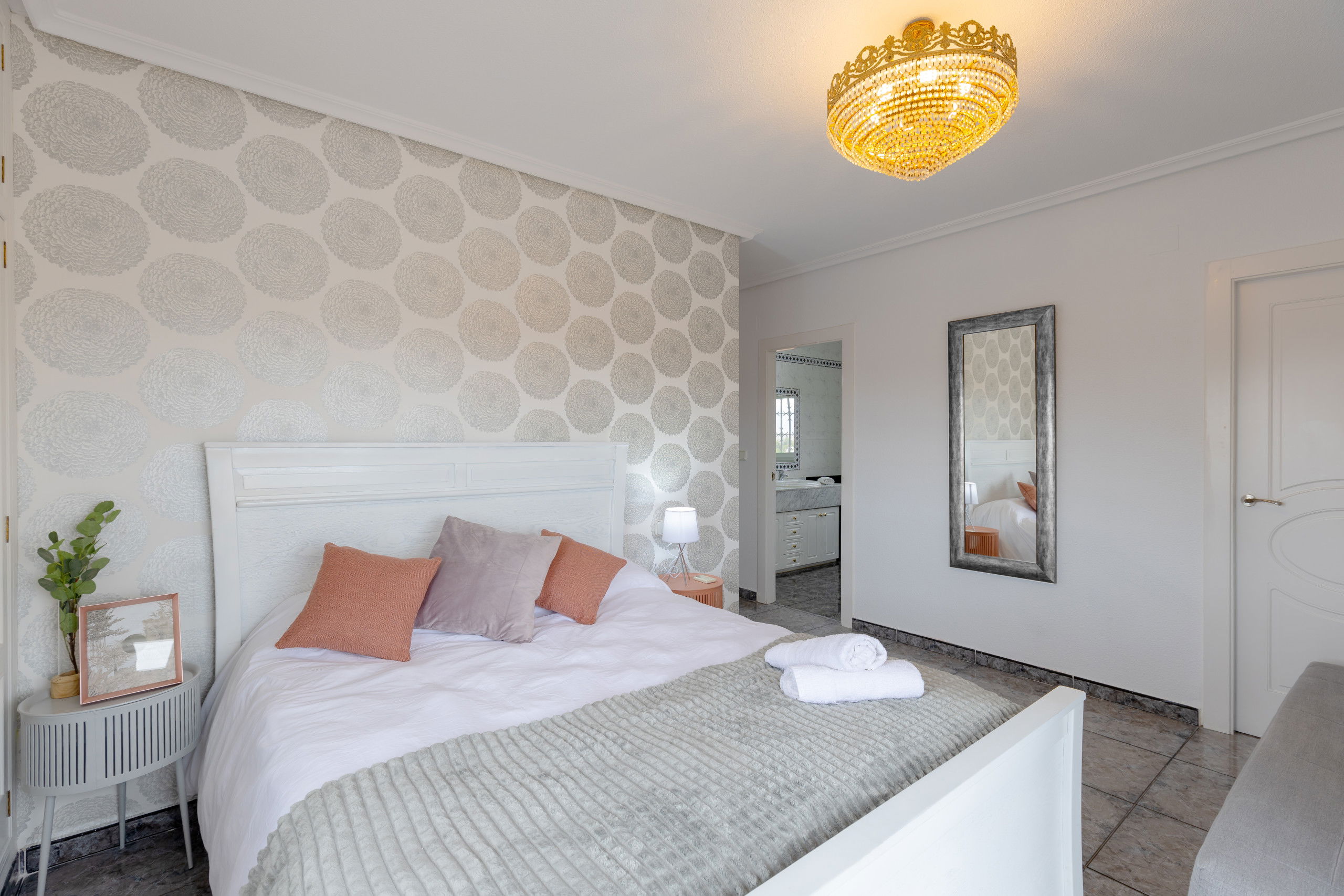 Enter the glorious villa with 6 bedrooms and 4 bathrooms, and a toilet next to the barbecue, with great privacy for guests and capacity for 12 people. The impressive multi-storey villa is inspired by contemporary Californian life and the traditional local style of the white village. It offers a high-level getaway near the sunny beaches of Mutxamiel and San Juan.