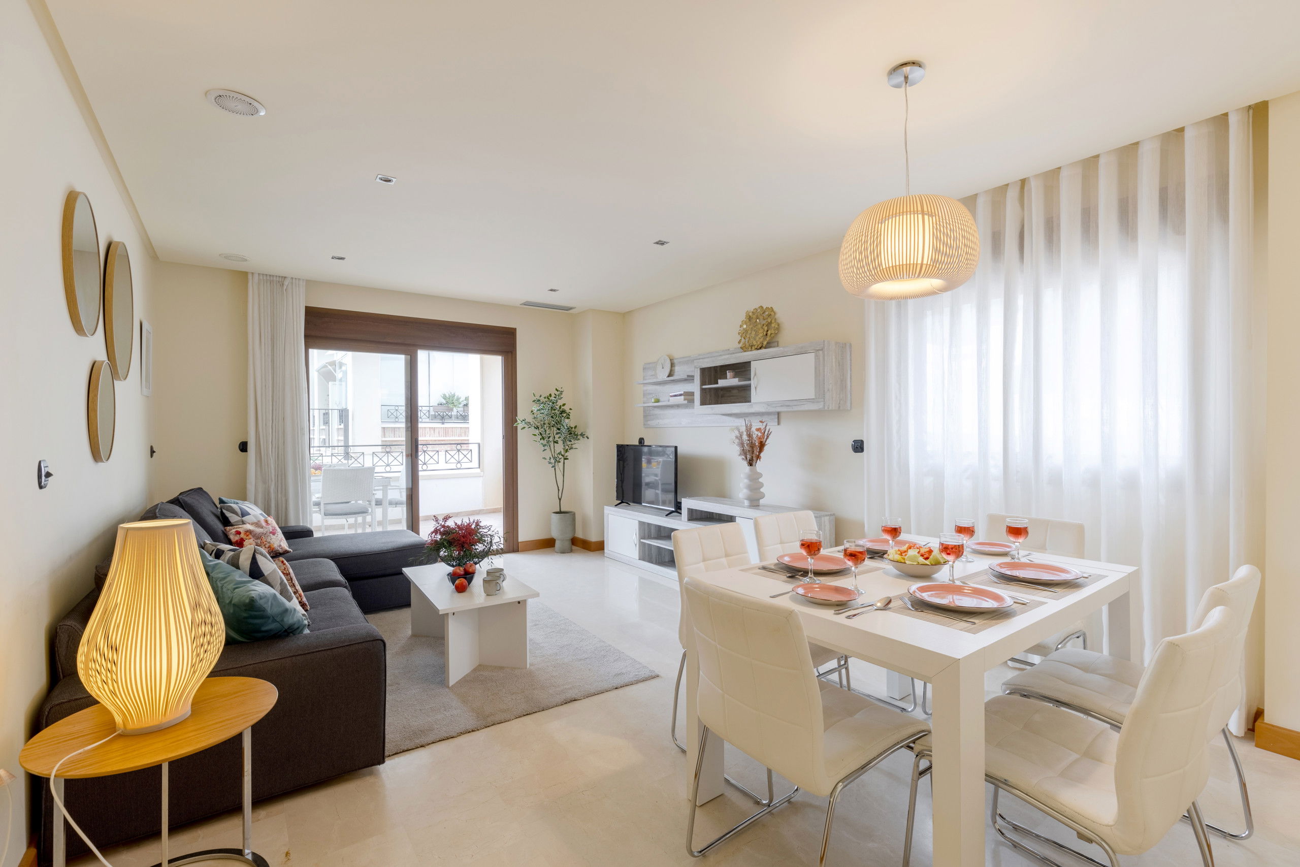 Discover this magnificent 3 bedroom, 2 bathroom apartment, located in one of the best areas of Guardamar del Segura. This bright and spacious home offers a modern and functional design, to enjoy an unforgettable holiday. With a heated pool, sauna, outdoor pool, gym, mini golf, paddle tennis.