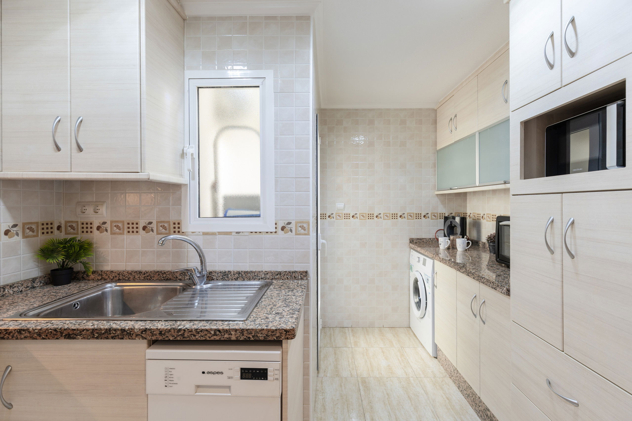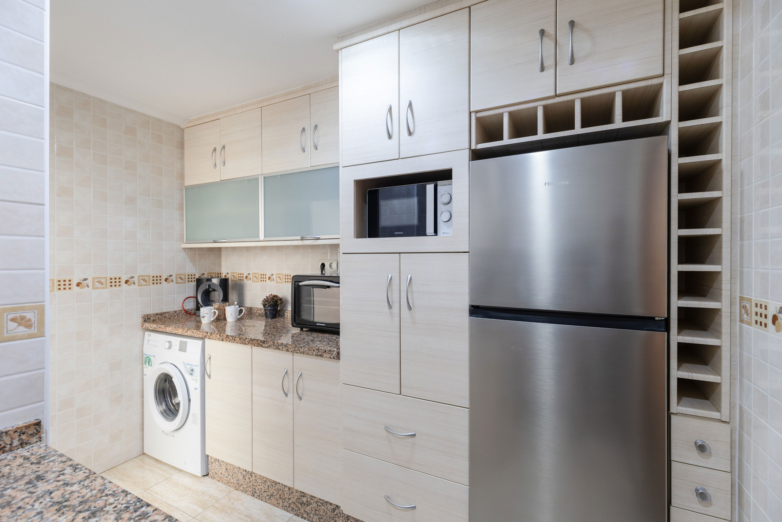 The independent kitchen, with vitroceramic, is equipped with a fridge, microwave, oven, freezer, washing machine, dishwasher, dishes/cutlery, kitchen utensils, coffee maker, toaster, kettle, juicer, and kitchenware.