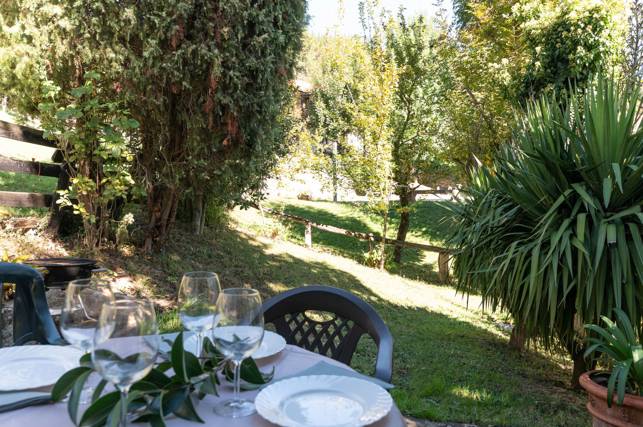 Located in a small village formed by 8 houses and surrounded by natural parks. This is a house with a beautiful mountain facade, typical of the area, well-equipped with 2 bedrooms, 1 bathroom, 1 toilet, living-dining room with fireplace, open-plan kitchen, balcony and small garden to relax. It has a private access to the pool from its garden.