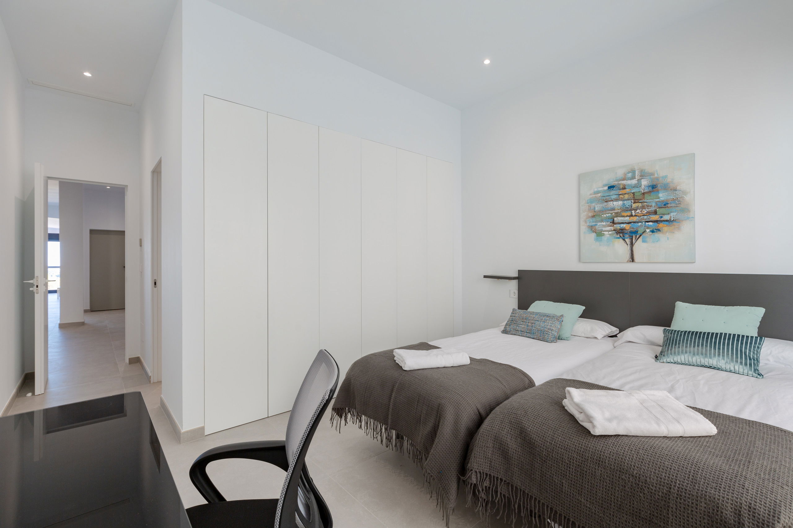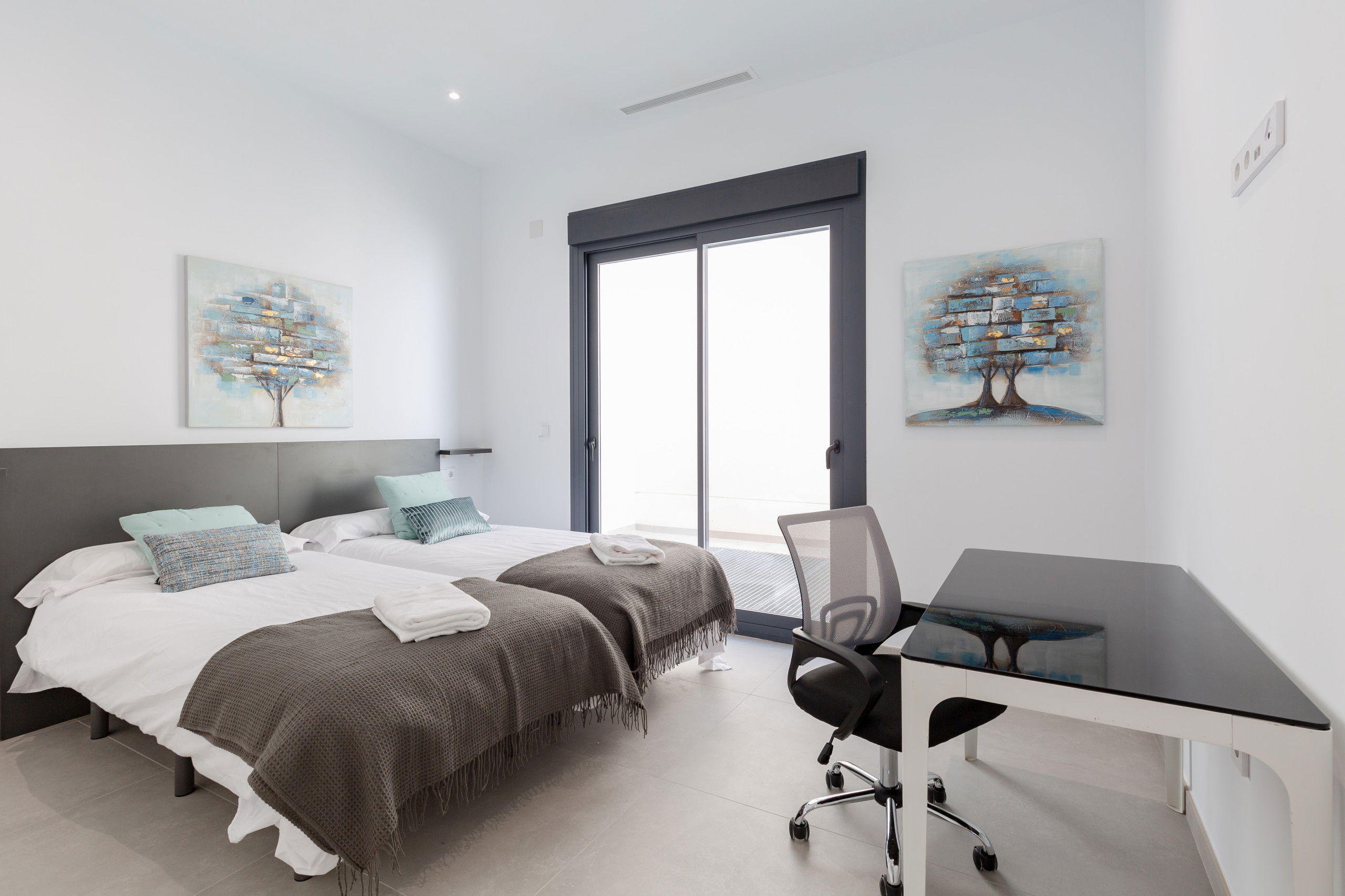 ♛ Bedroom 3: Two Single Beds, Workspace (Desk, Chair)