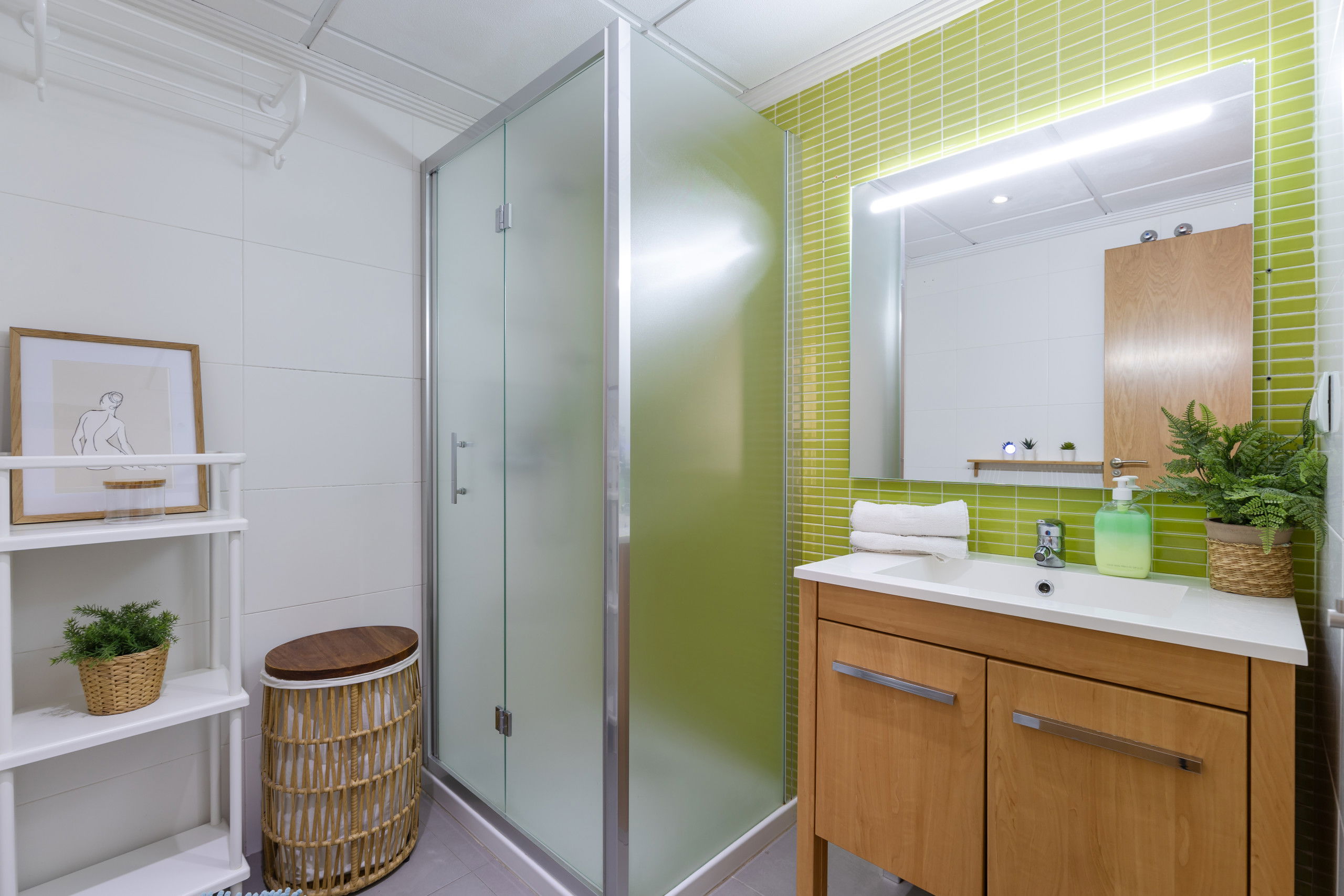 In the vitroceramic open plan kitchen, refrigerator, microwave, oven, freezer, washing machine, dishwasher, dishes/cutlery, kitchen utensils, coffee machine, toaster, kettle, juicer, plates and bowls, kitchenware are provided.
