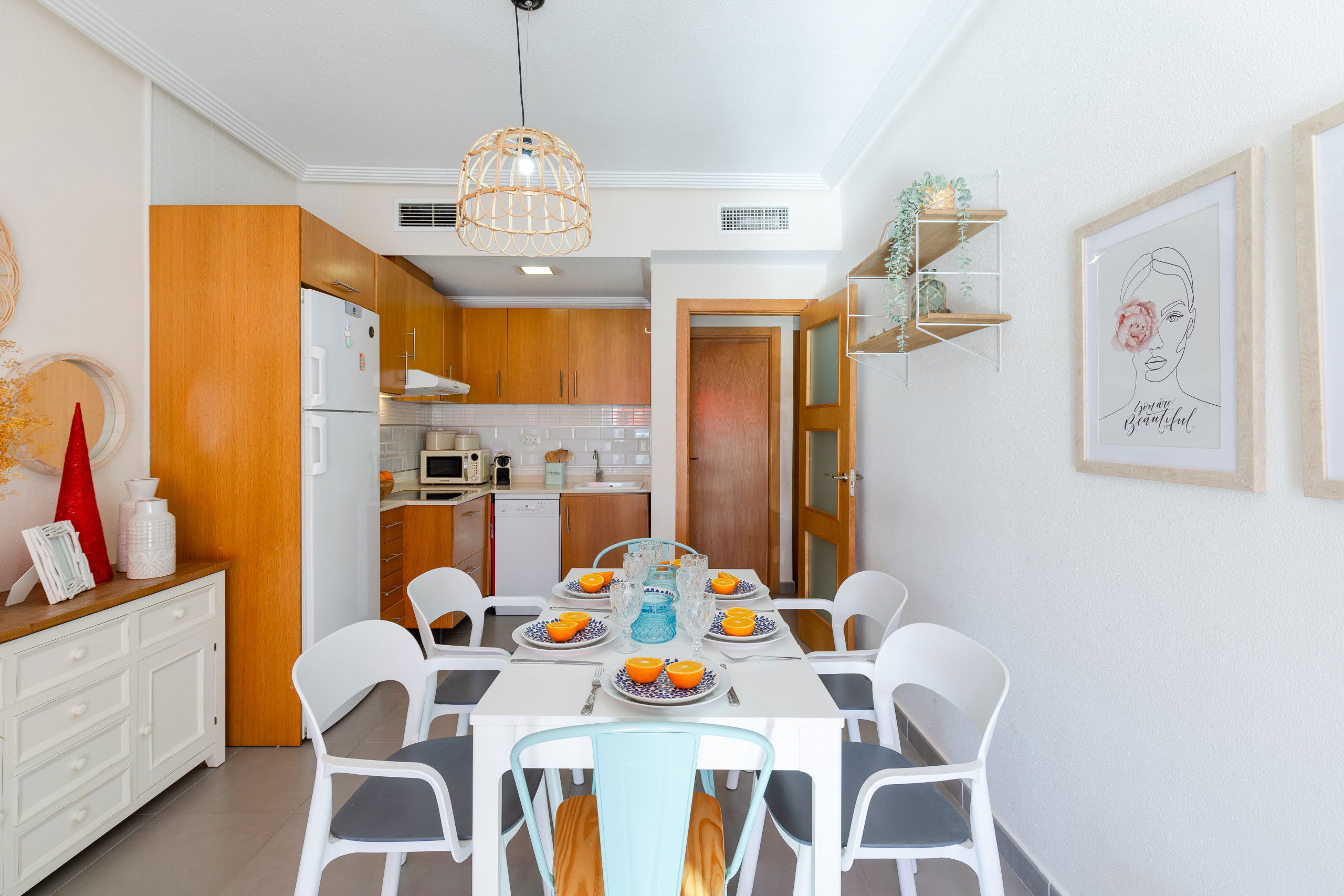 Beautiful apartment 100 meters from the wonderful beach of Guardamar del Segura, next to the promenade, one of the longest sandy beaches on the coast, 15 km of fine sand beach. The interior of the apartment is air-conditioned, with a spacious living room that includes a sitting area, TV and open plan kitchen. The sliding window lets in plenty of natural light and opens up to a lovely terrace with views of the city and waterfront. This incredible apartment in Guardamar is amazingly located in the city centre, next to restaurants, cafeterias, natural parks and a promenade, you it is ideal for families who want to spend a wonderful vacation by the sea.