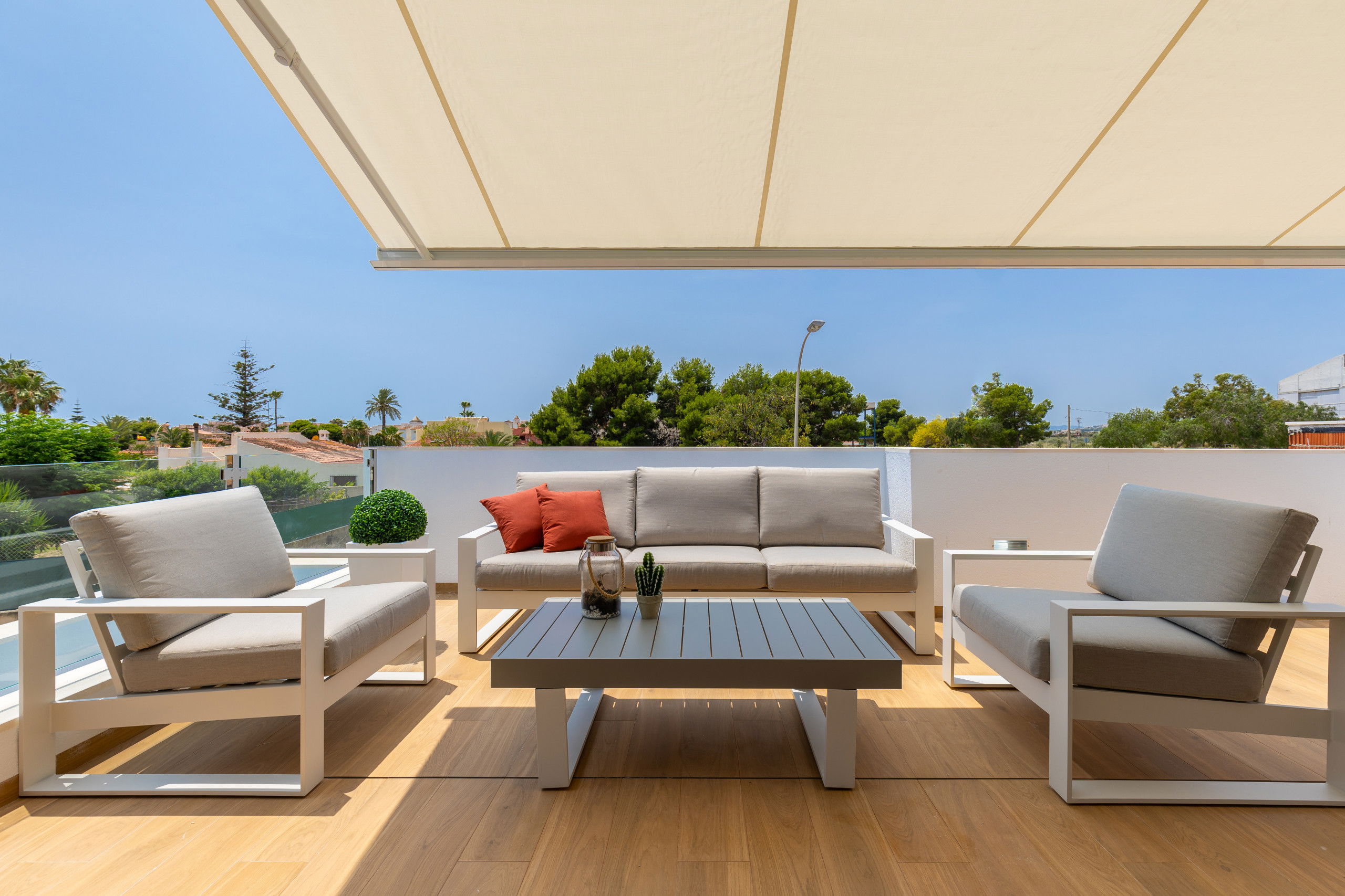 As soon as you step foot in this beautiful three-floor villa, you're greeted by the gorgeous yet highly comfortable living area, decorated elegantly, that complements the picturesque Costa Blanca location.