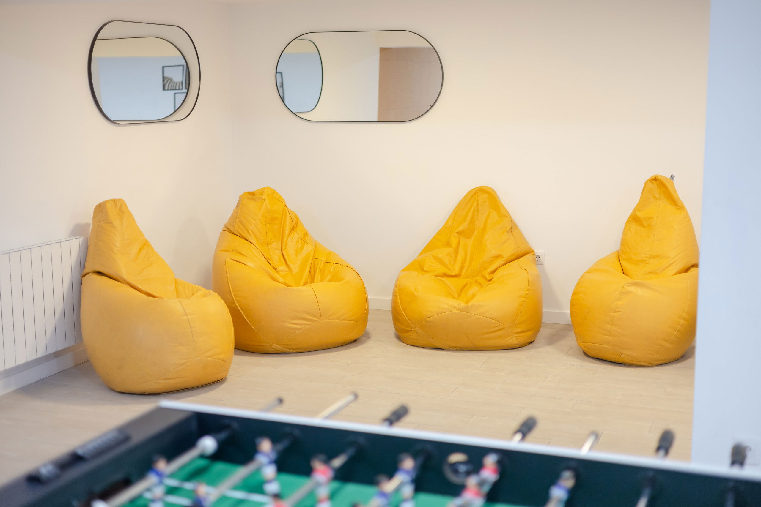 The true great hall with indoor space for 16 people features a cosy fireplace, the interiors include children's playrooms, board games for adults, and a ping pong table. The property offers various outdoor areas for relaxation. A multitude of large windows floods the space with natural light and accompanies a porch that opens to the pool. The garden has a spacious chill-out area, lawn, barbecue, and dining area, all with stunning mountain views.
