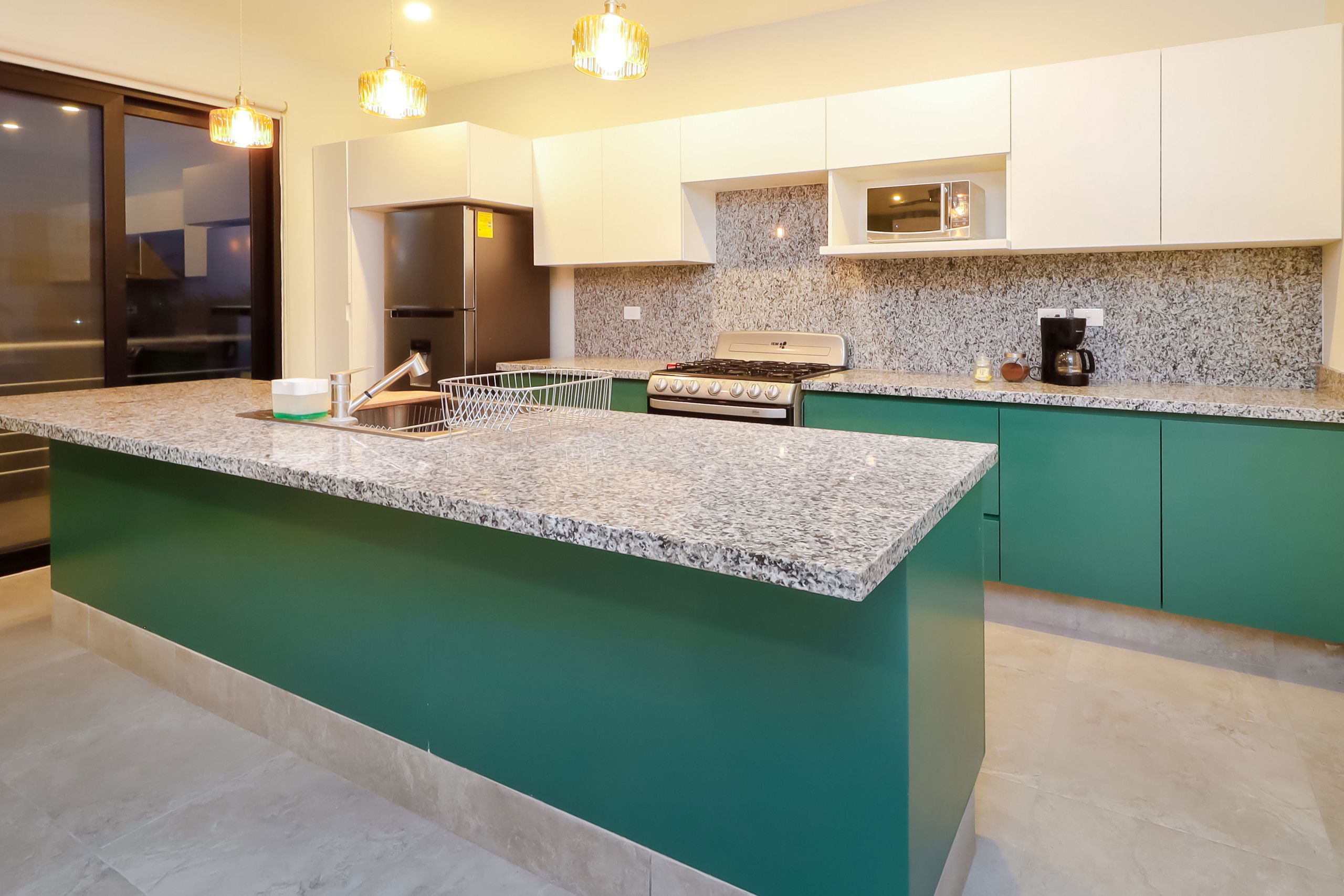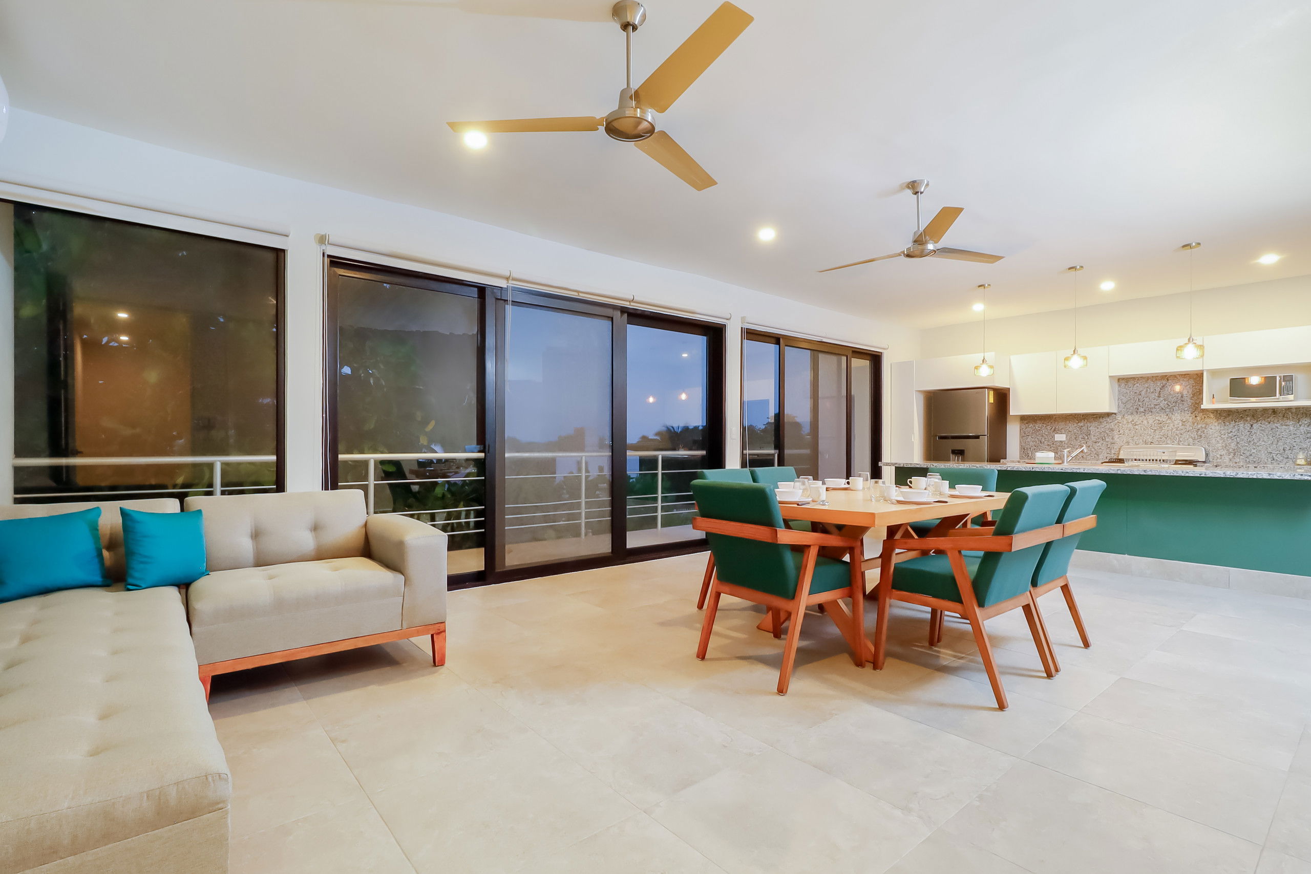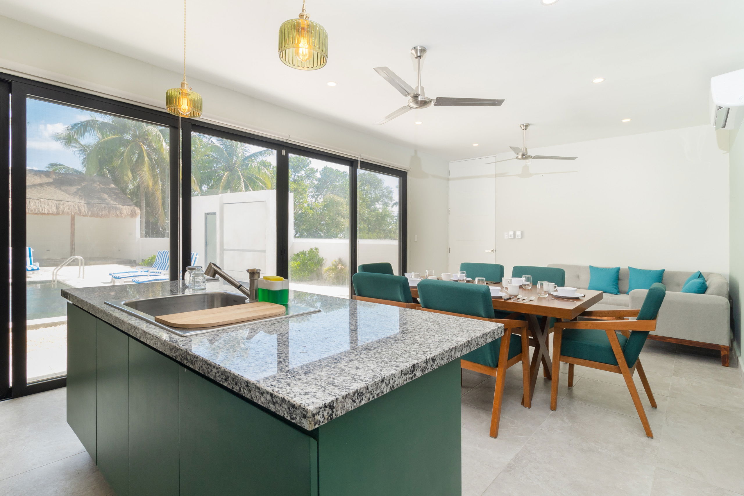 The design is a perfect combination of traditional coastal style and avant-garde modernity, with large windows that allow abundant natural light to enter. The common areas include a plot for family gatherings, ideal for preparing delicious meals while enjoying the view of the pool, and a pleasant sunset with the sea breeze.