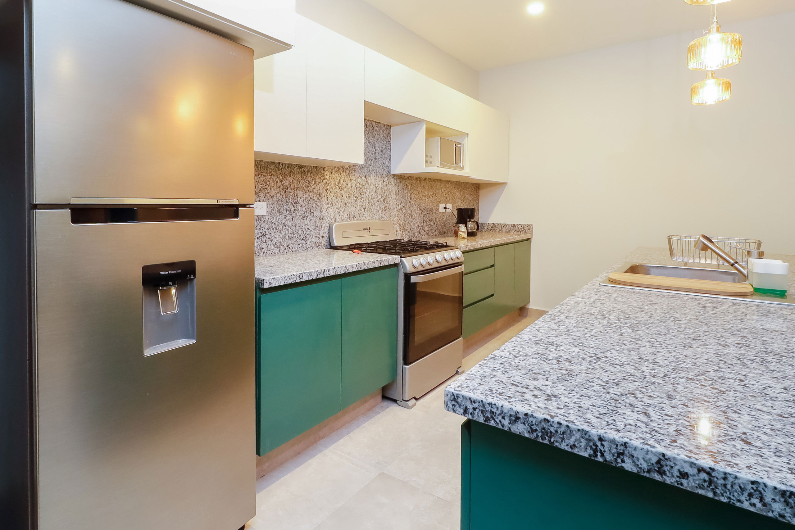 Gorgeous private apartment located on the 3rd floor of a 3-apartment building only, with beautiful views as the name suggests, this is a dream place located in the peaceful and picturesque town of Yucalpeten in the municipality of Puerto Progreso Yucatan, located on the Caribbean Sea. This magnificent property is right next to the sea, allowing you to enjoy the impressive views of the Atlantic Ocean located within the Gulf of Mexico, and you can hear the relaxing sound of the waves from the comfort of your home.
