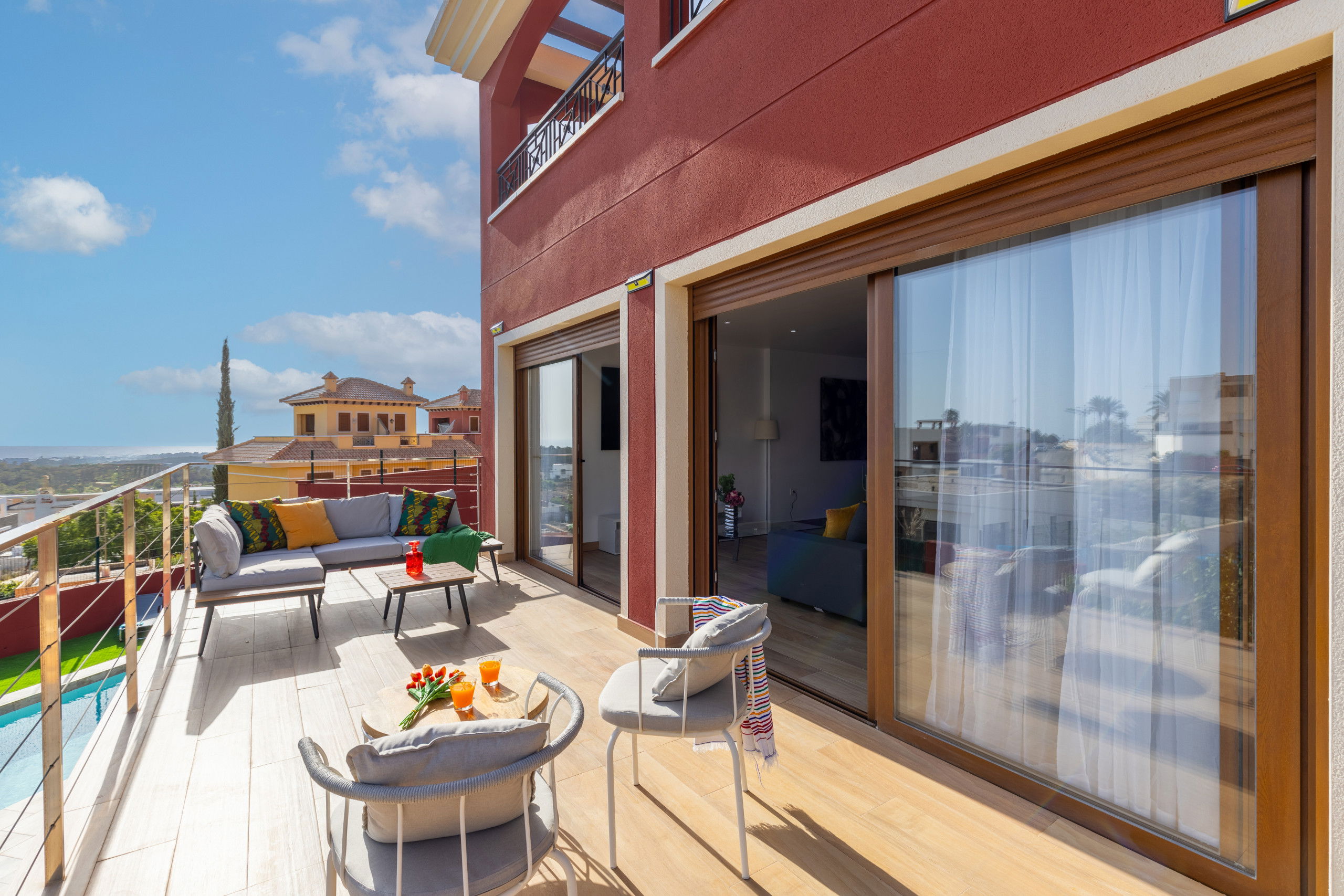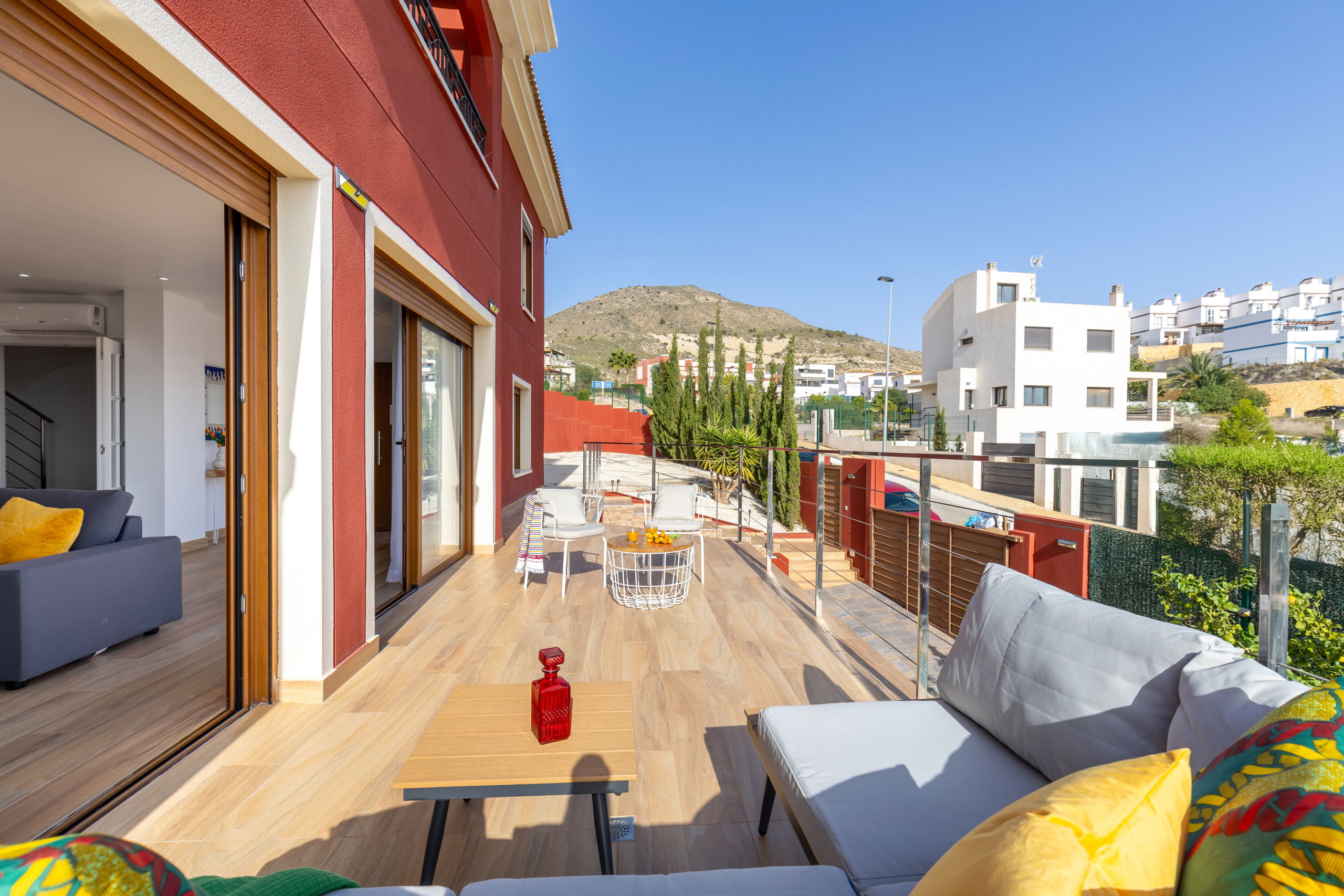 Imagine a spectacular detached villa near Benidorm, with the Poniente or Levante beaches, the beautiful coves of Finestrat, ideal for an unforgettable family holiday. With a modern and cosy design, this villa has 5 spacious bedrooms and 4 bathrooms, ensuring space and comfort for all guests, 2 living rooms, 2 kitchens.