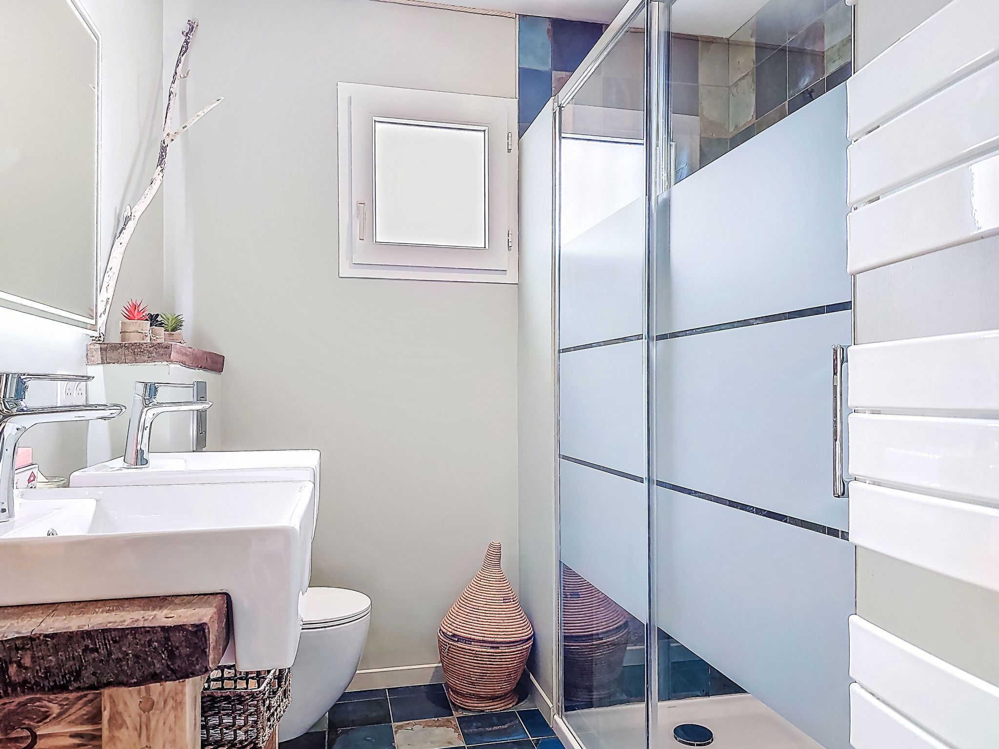 "La Bosse XL ", 6-room house 135 m2. Beautiful furnishings: large living/dining room with open-hearth fireplace and TV (flat screen). Exit to the terrace. Small living/sleeping room, window onto the courtyard with 1 sofabed (140 cm, length 190 cm), kitchen corner and TV (flat screen). Exit to the terrace. 1 room with 1 french bed (160 cm, length 200 cm) with 2 x 2 bunk beds (90 cm, length 190 cm). 1 room, window onto the courtyard with 2 beds (80 cm, length 200 cm). Open kitchen (oven, dishwasher, 4 induction hot plates, toaster, kettle, microwave, electric coffee machine). Shower, shower/WC, 2 sep. WC's. Upper floor: (steep stair), 1 open room with sloping ceilings with 2 beds (90 cm, length 190 cm). Electric heating. Terrace, south facing position terrace, north facing position. Terrace furniture, barbecue. Facilities: washing machine, baby cot for up to 2 year olds. Internet (WiFi, free). Please note: non-smoking house. Maximum 3 pets/ dogs allowed. Smoke alarm. No internal connecting door between the separated properties. Description of outbuilding (rooms overlooking courtyard): living room, kitchen, bedroom, shower, WC. Bed layout is flexible. There are more sleeping options available than the maximum number of people allowed which may, however, not be exceeded. Offer by a private individual according to Art. 155, IV of CGI.