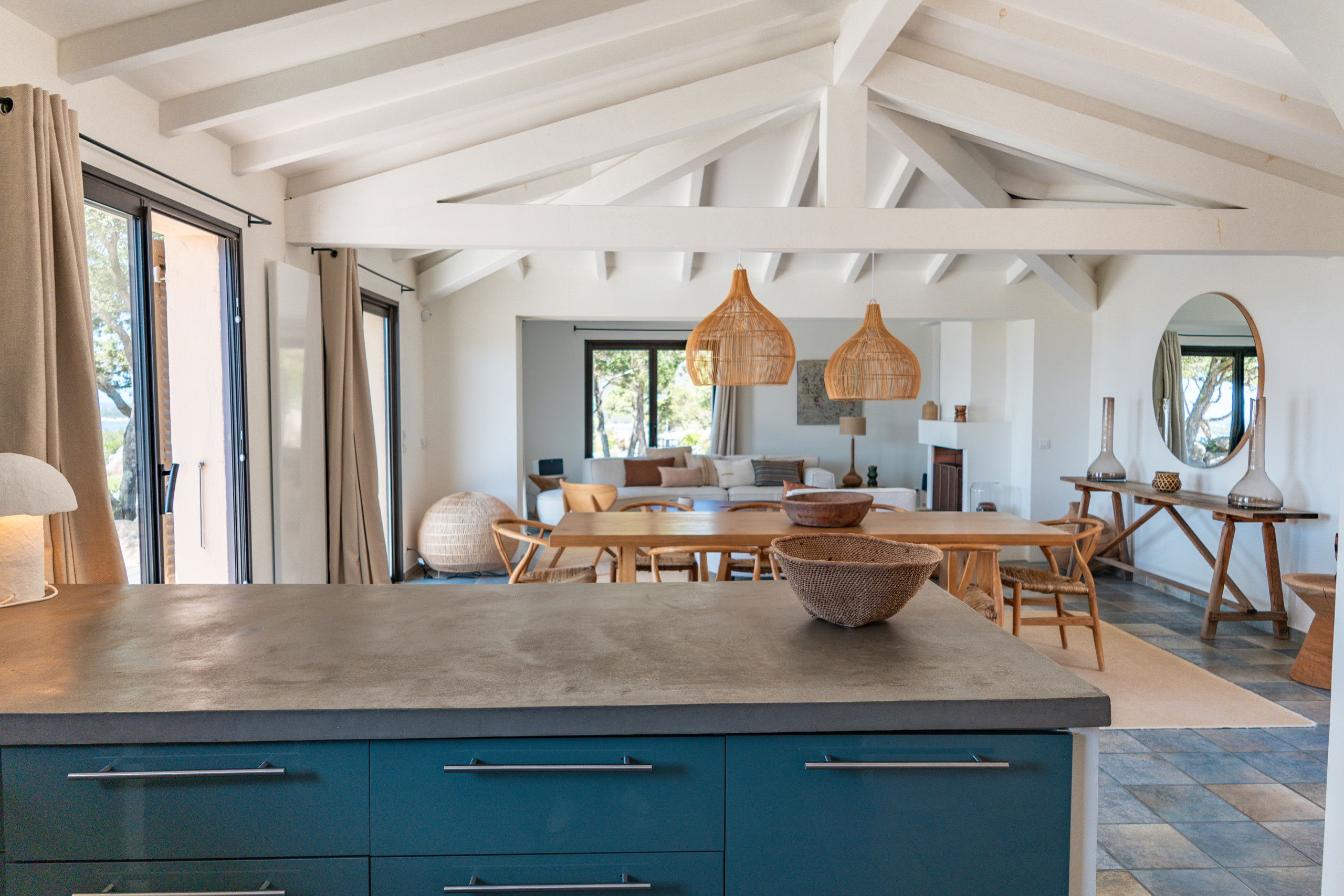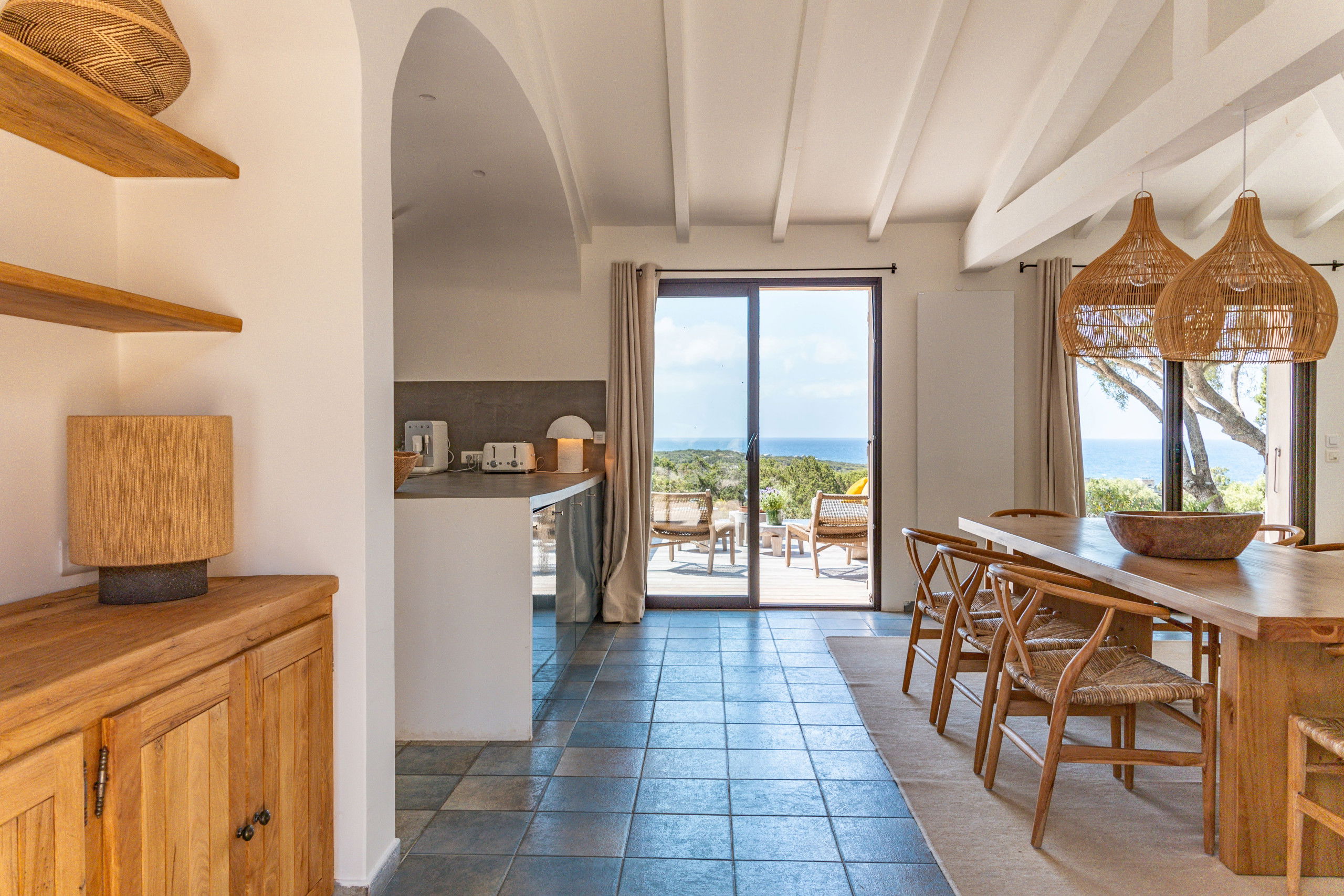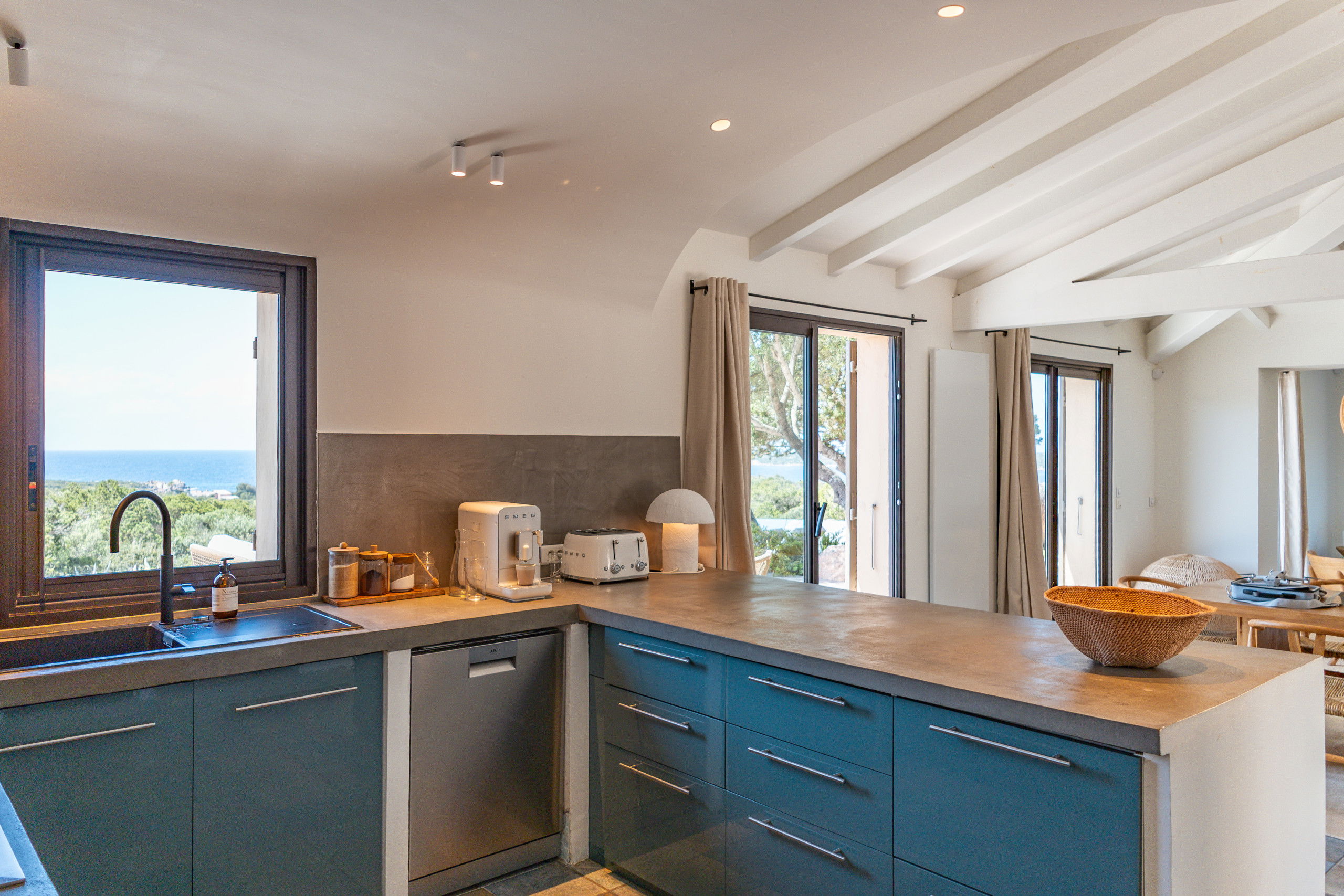 - A fully equipped open kitchen including dishwasher, microwave, coffee machine (capsule and filter), wine cellar and two refrigerators, ideal for convivial meals with family or friends.