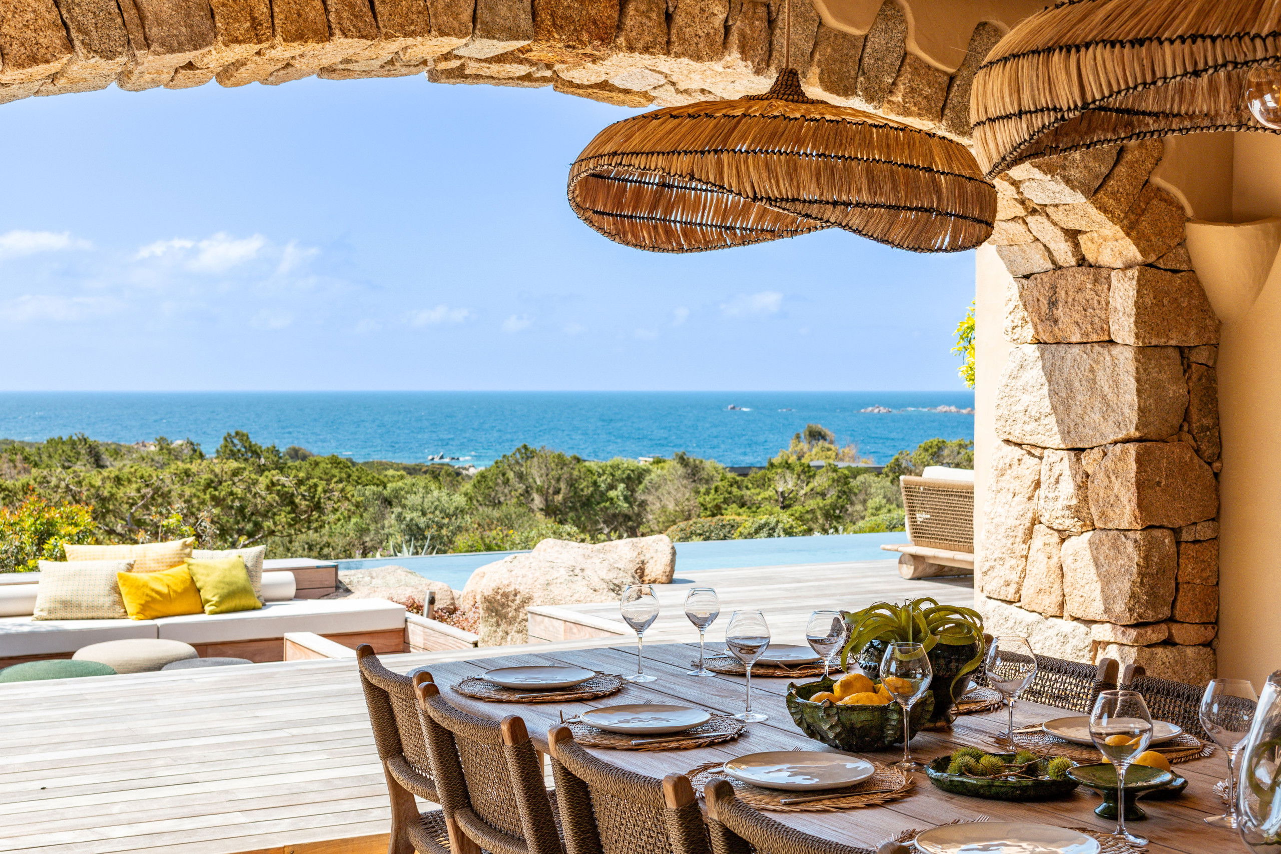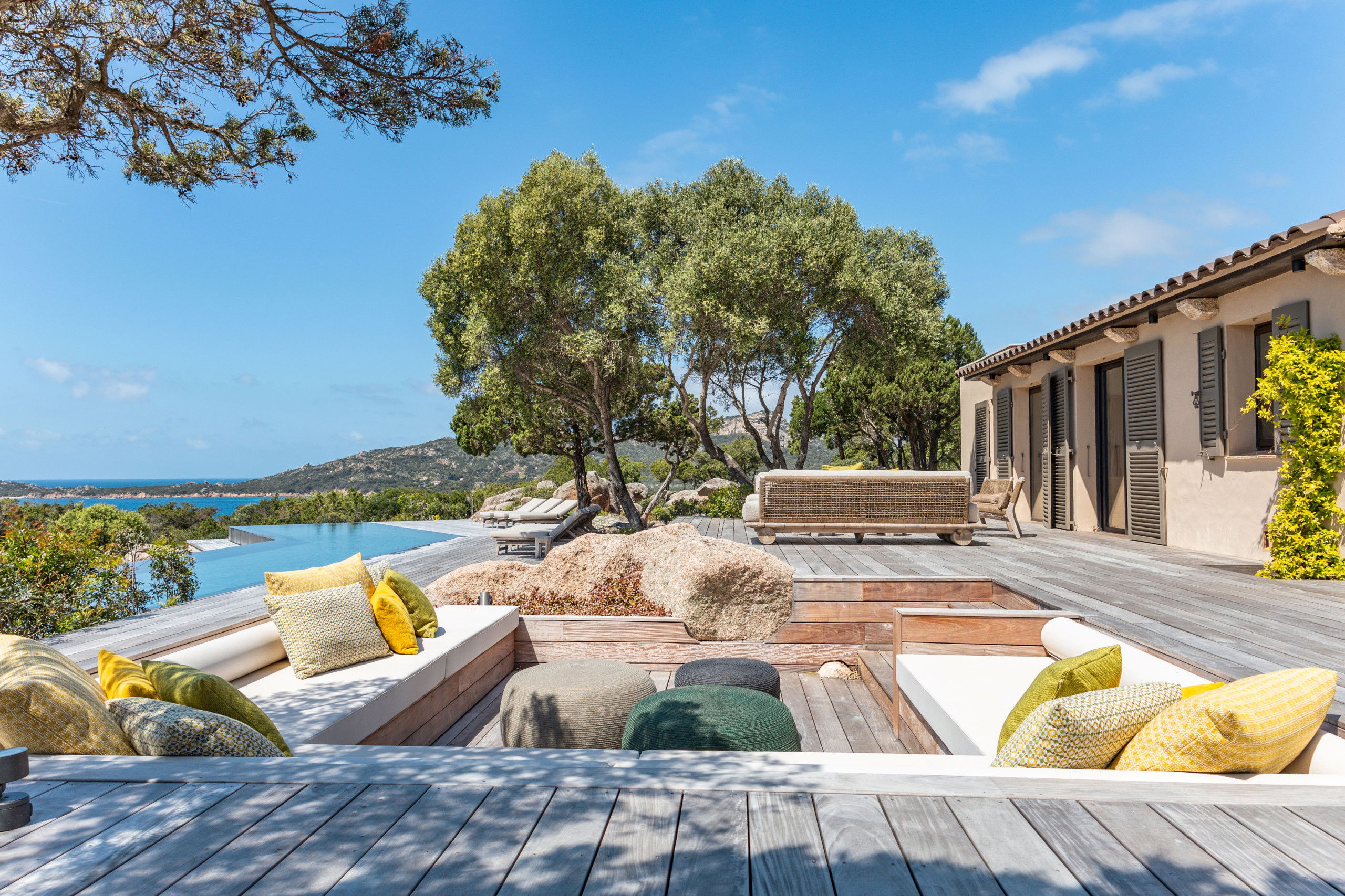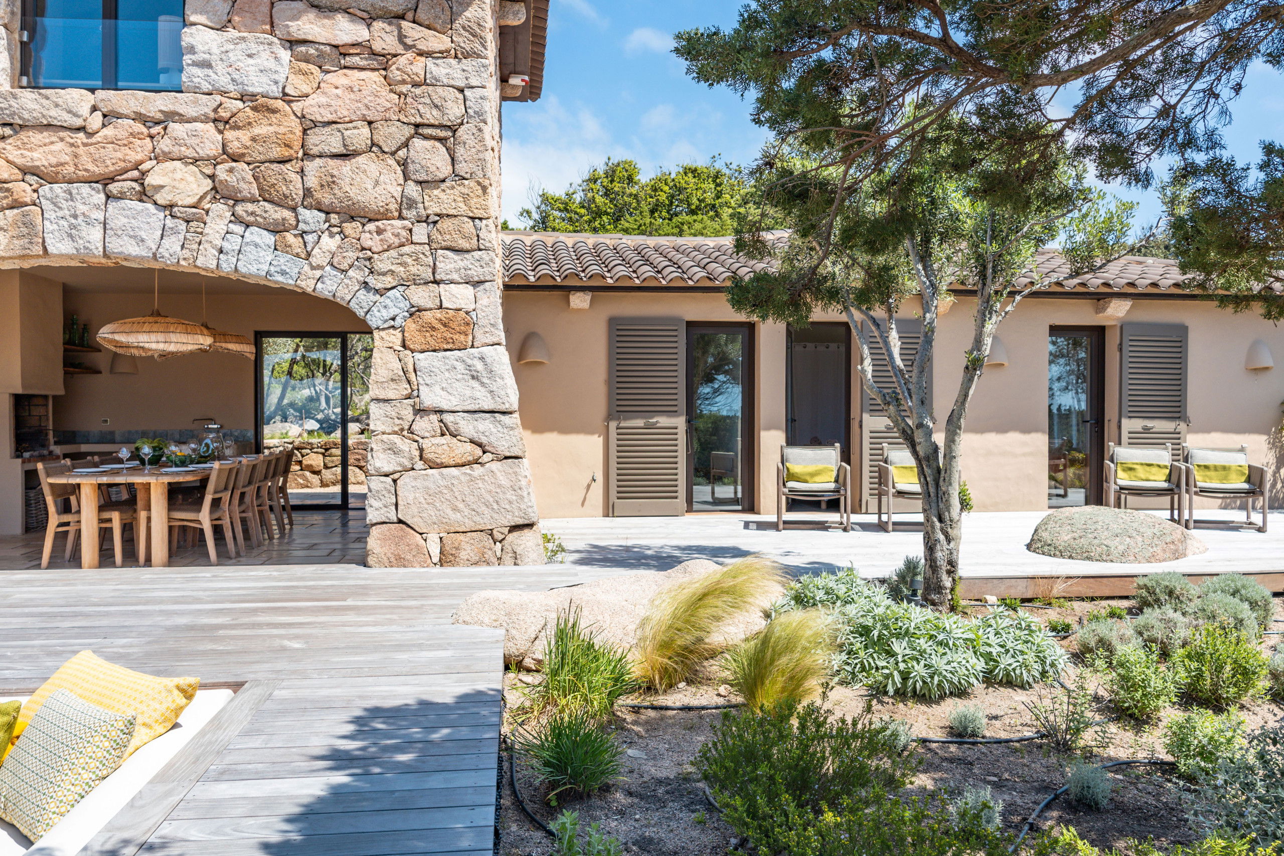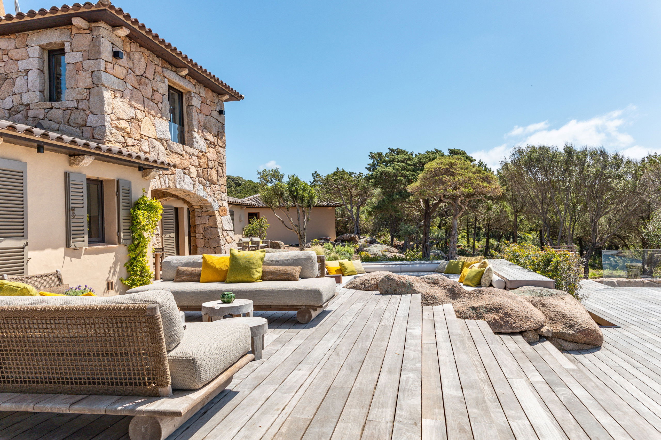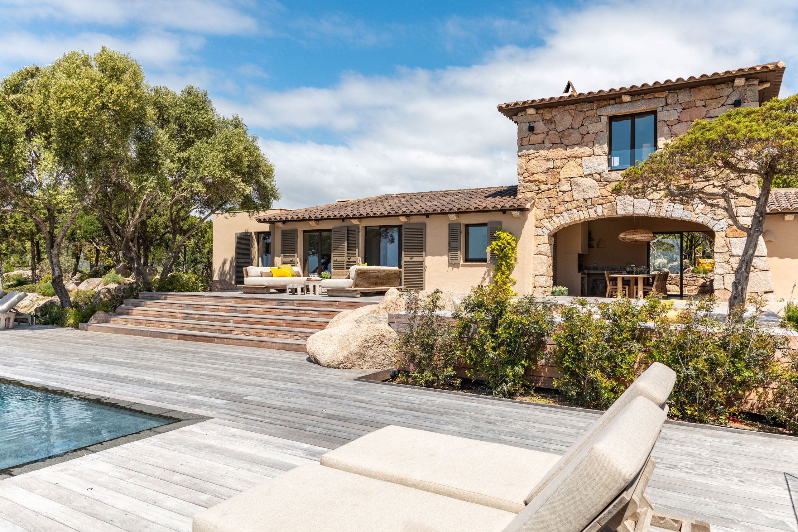 The architecture and decoration of the house blend stone and wood, in natural, soothing tones that reflect the authentic spirit of the region while offering top-of-the-range comfort.