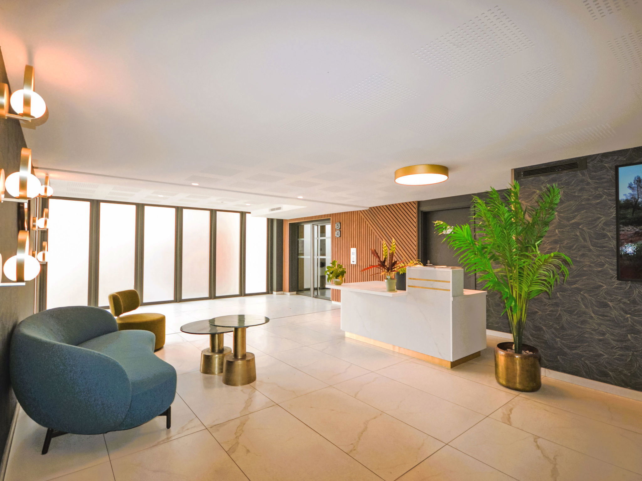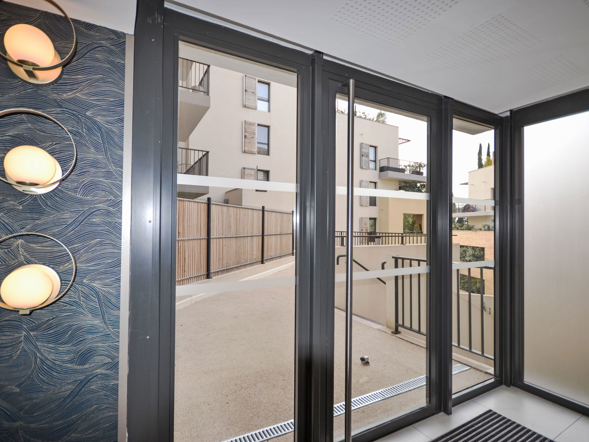 Beautiful residence "Pigonnet", 4 storeys, built in 2021, surrounded by trees. In the resort 2 km from the centre of Aix en Provence, residential area (villas), excellent location: right in the centre but still quiet, 25 km from the sea, south facing position. For shared use: park 3'200 m2 (fenced), lawn and trees, swimming pool angular fenced (10 x 10 m, depth 150 - 170 cm, seasonal availability: 30.May. - 30.Sep. pool opening hours: 09:00-21:00). Pool maintenance by the owner/gardener. In the complex: reception, fitness room. Airport transfer (extra). Single garage. Grocery 900 m, restaurant 450 m, bakery 1 km, café 850 m, bus stop "Le Pigonnet" 300 m, railway station 2.1 km, sandy beach "Plage de l'Estaque" 25 km, diving center 2.6 km, thermal baths "Spa Sextus" 1.7 km, lake de Bimont 11 km. Sports harbour 32 km, golf course (18 hole) 3.5 km, tennis 2.6 km, riding stable 1.8 km, walking paths from the house 4.3 km, children's playground 2.4 km. Nearby attractions: Fontaine de la Rotonde 1.1 km, Casino 650 m, Parc Saint Mitre 2.2 km, Cours Mirabeau 2.2 km, Parc Animalier de la Barben 26 km, Musée du Pavillon Vendôme 2.2 km. Well-known lakes can easily be reached: Lac Zola 7.4 km. Hiking paths: Montagne Sainte Victoire 20 km, Massif du Luberon 40 km, Calanques de Cassis 40 km. Residence with electric gates.