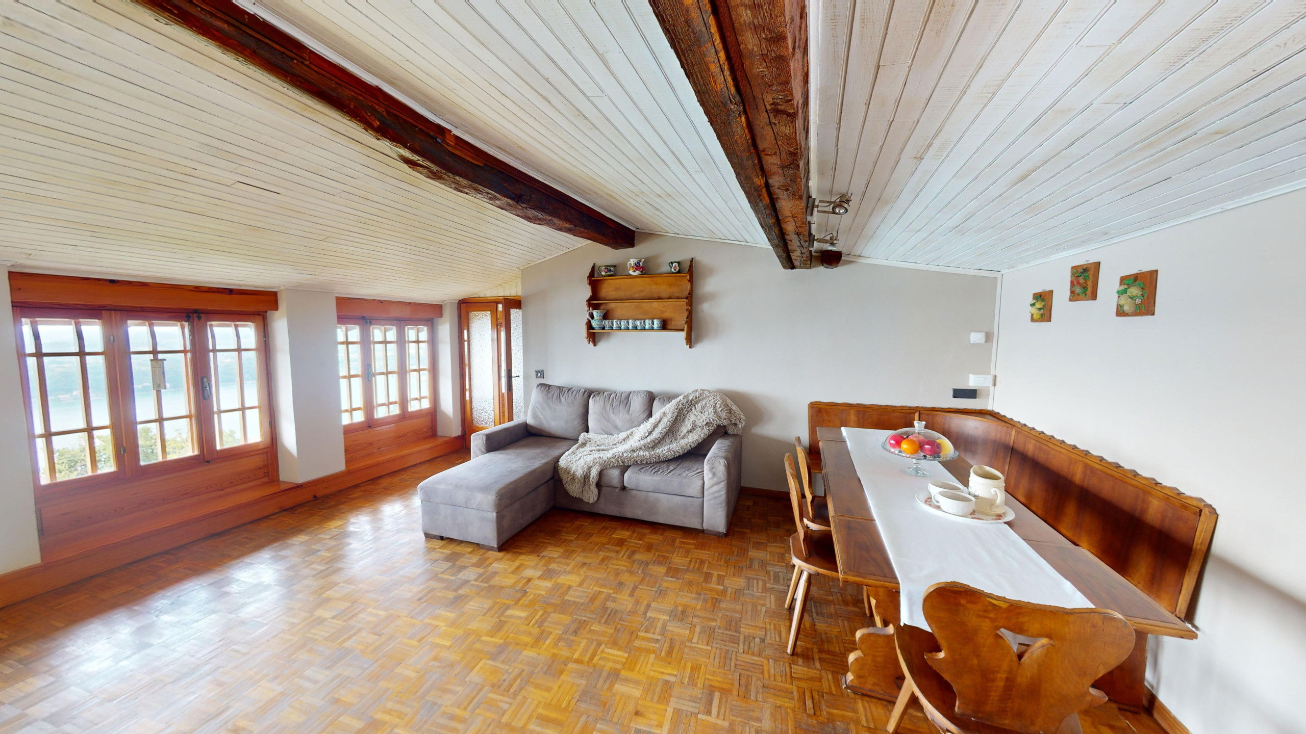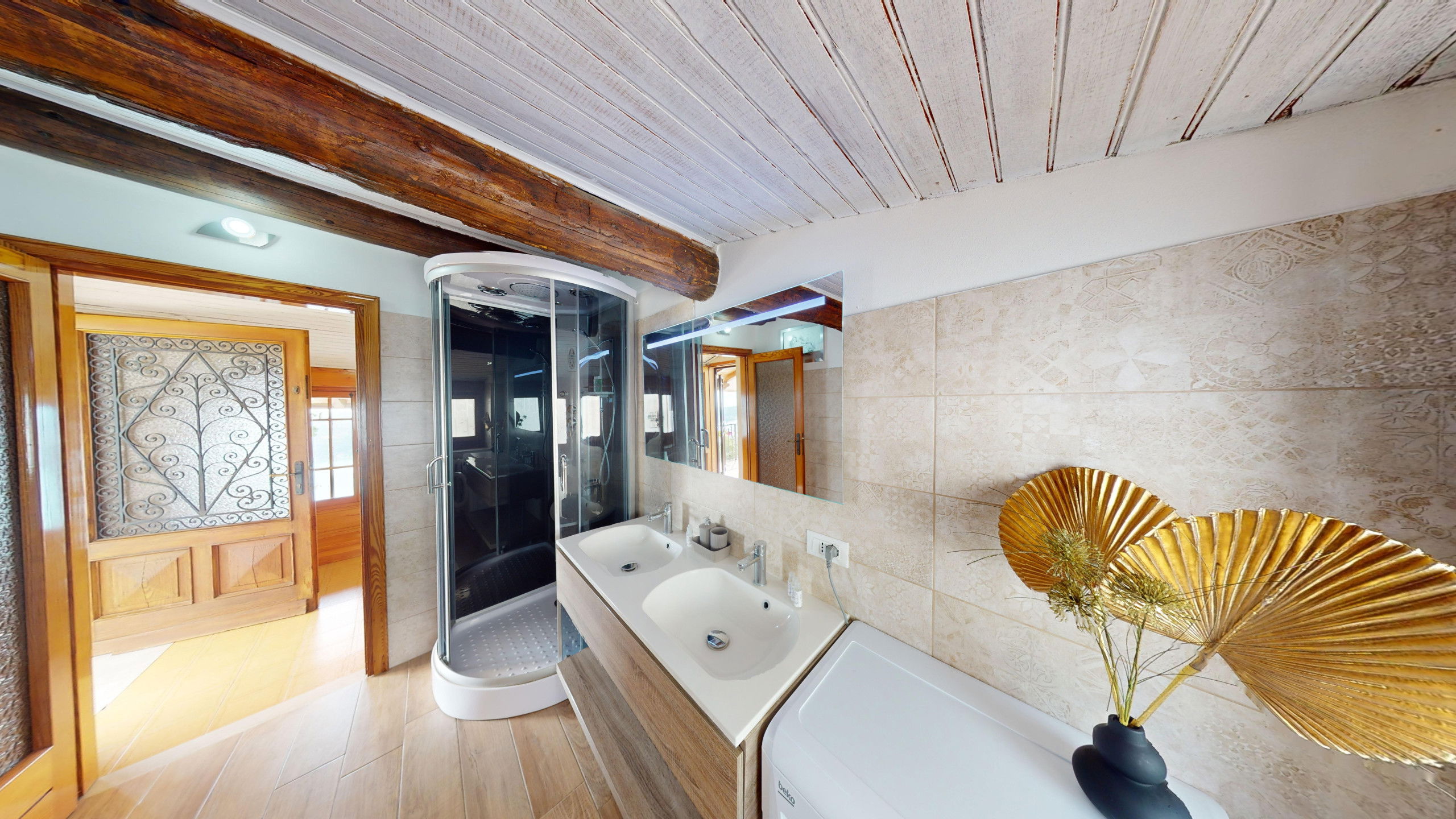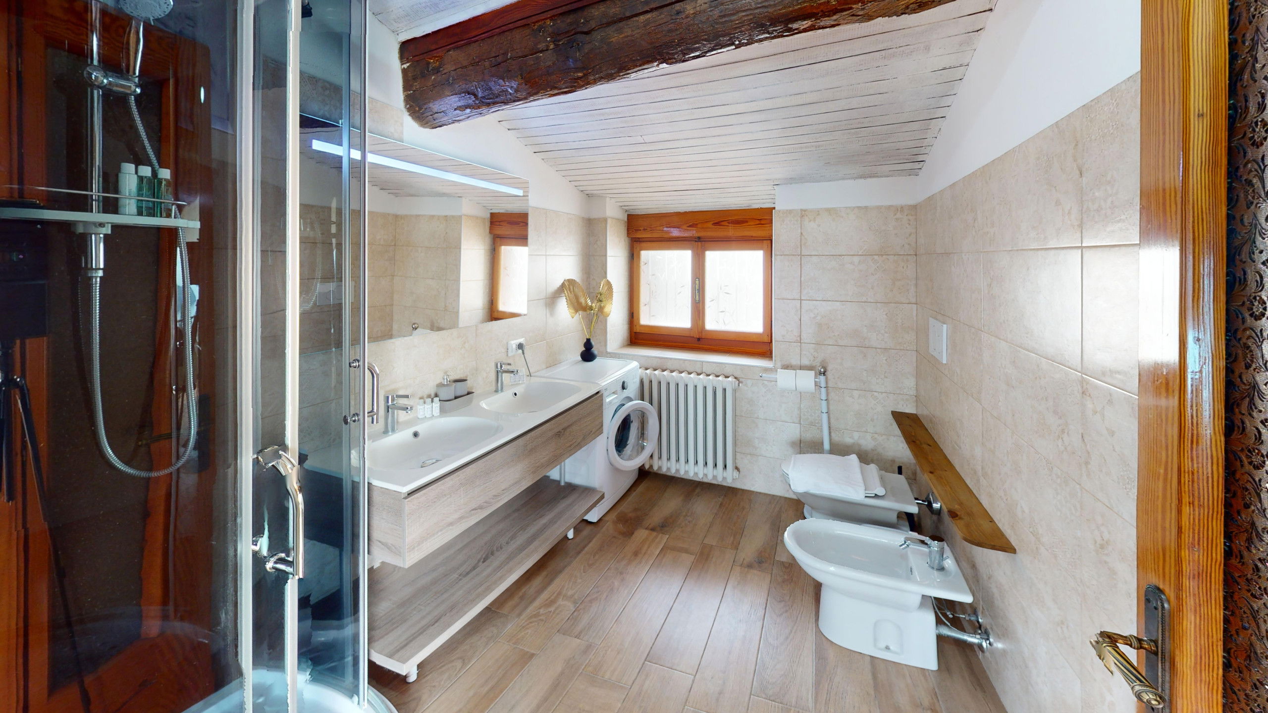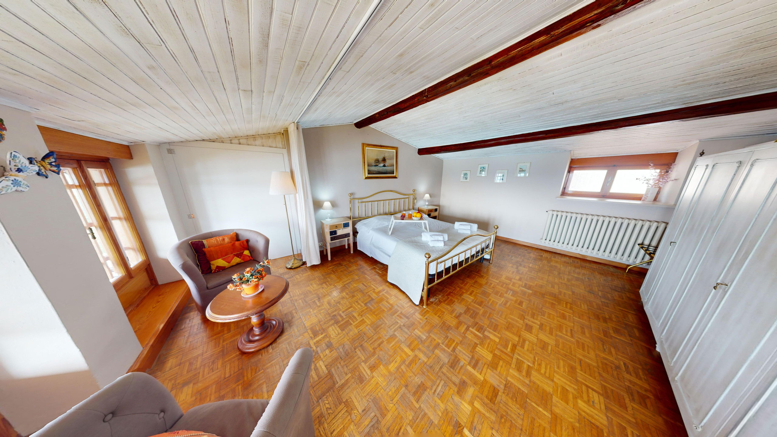 The penthouse is located within a farmhouse with a large common green area, barbecue, swimming pool and WiFi connection.