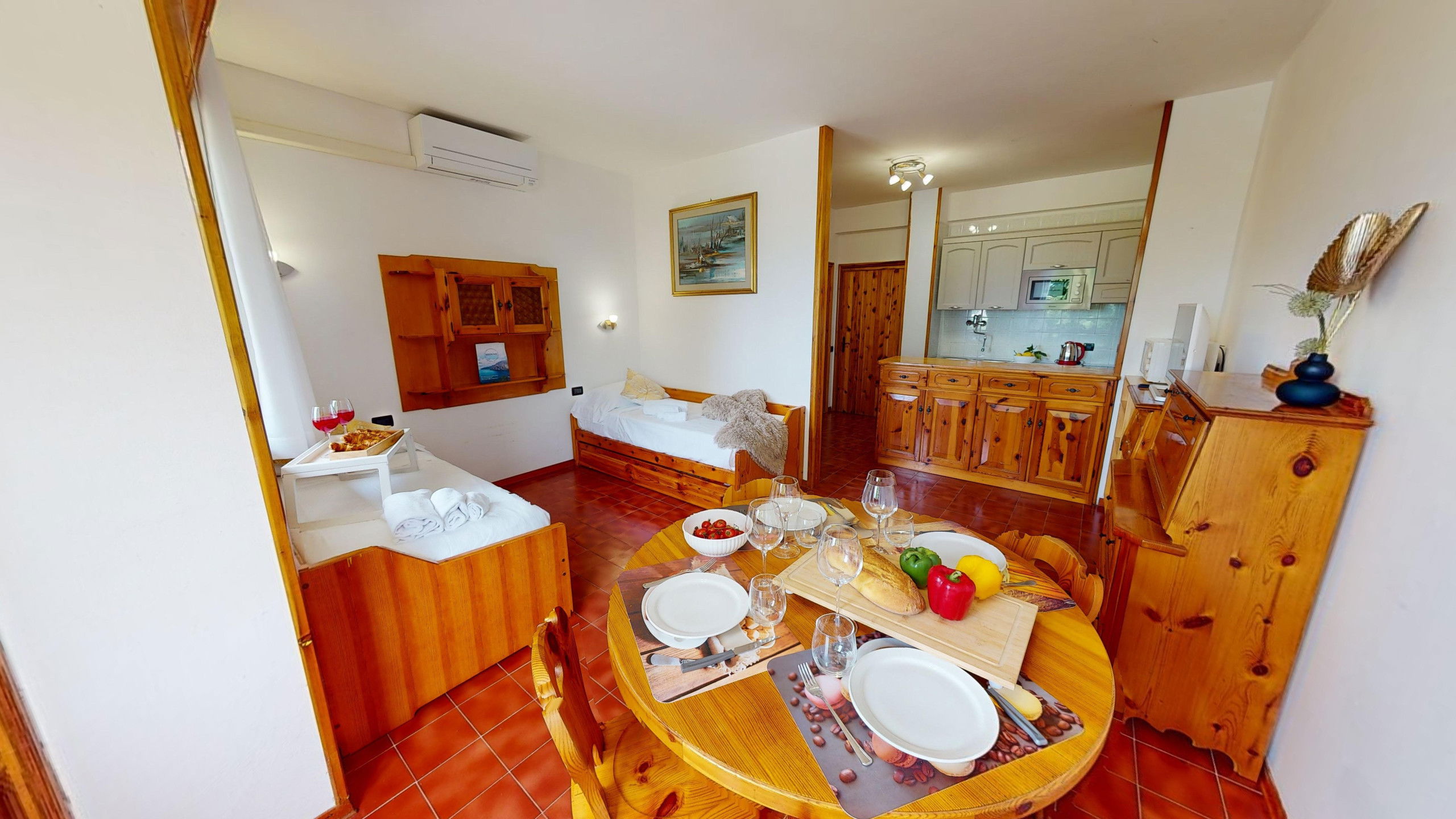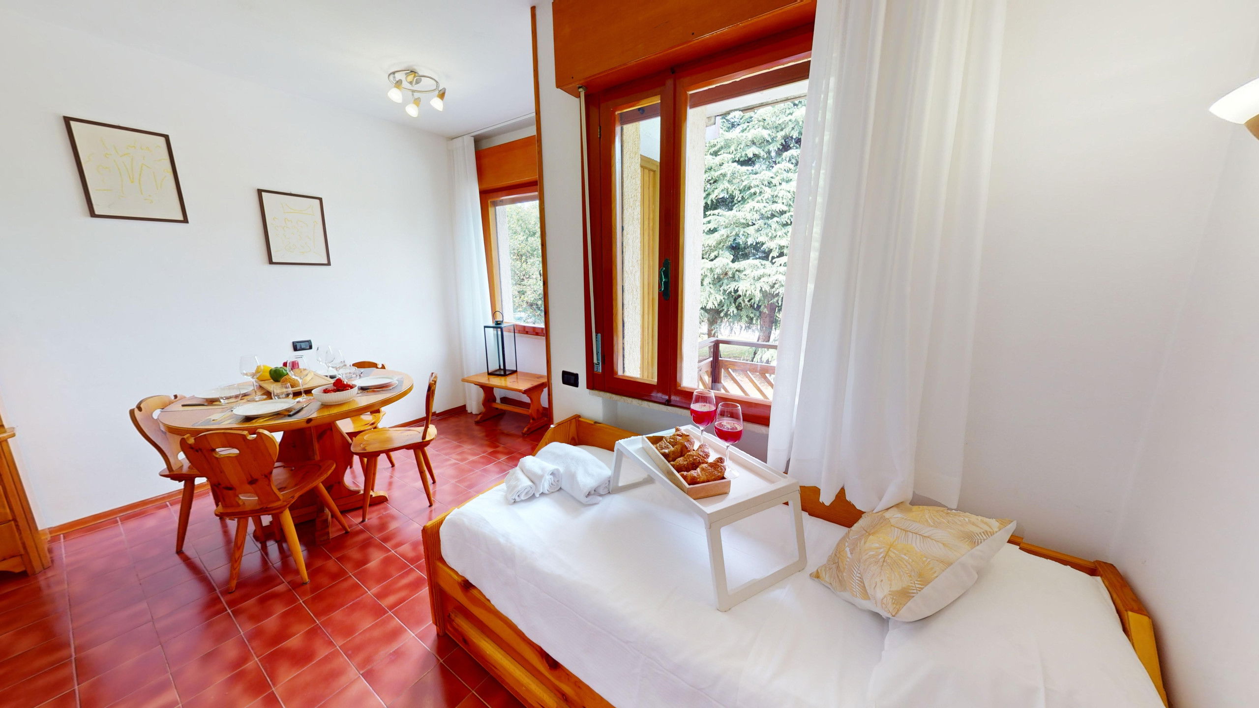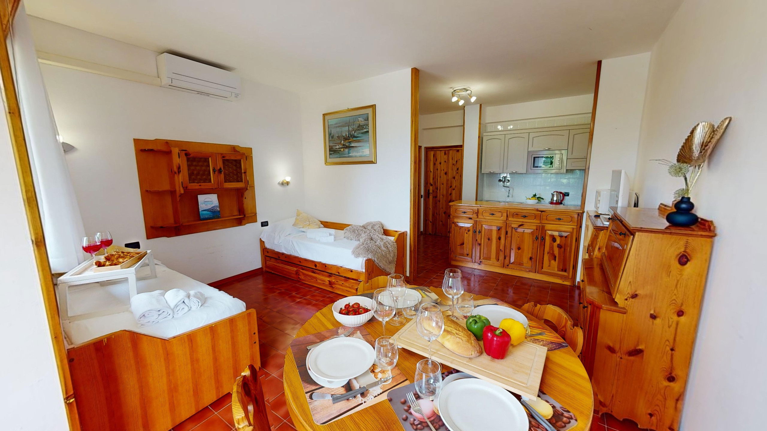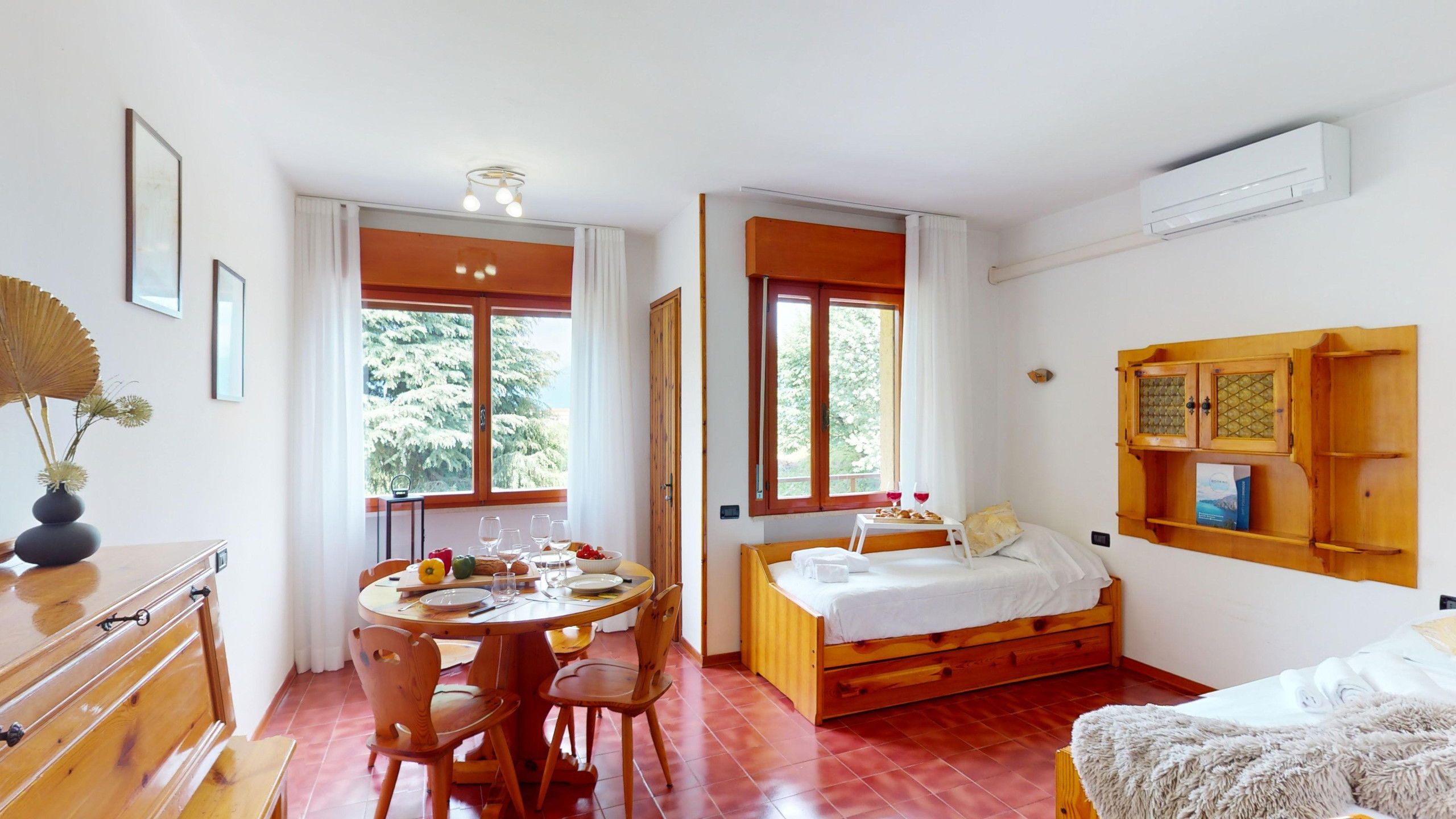 The apartment consists of a fully equipped kitchen, a living room with two single beds, a bedroom with two single beds, and a bathroom with a shower and washing machine. From the cosy living area, it is possible to access the lake-view balcony, ideal for relaxation and meals with company. The accommodation has an external parking space in the structure.