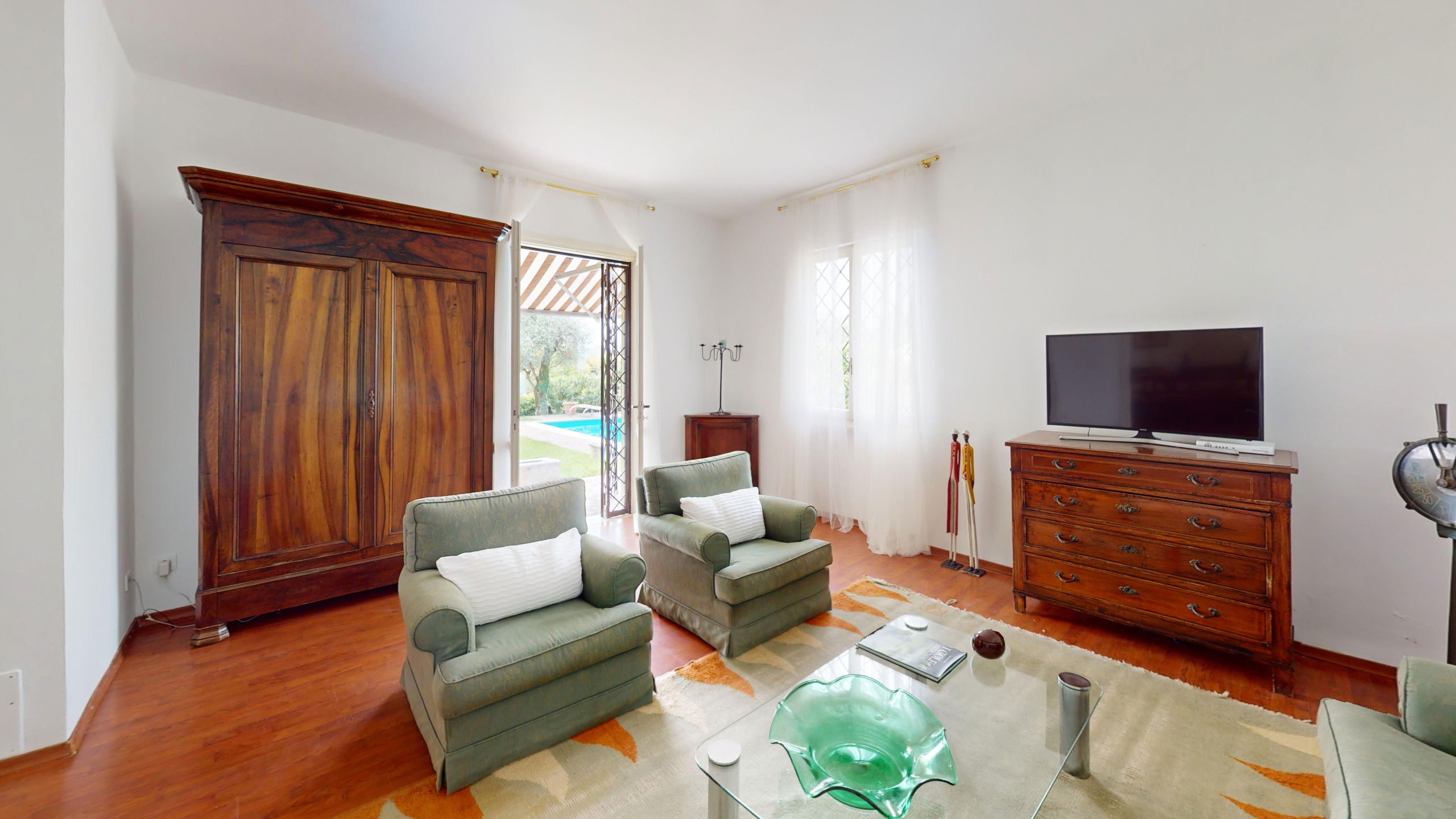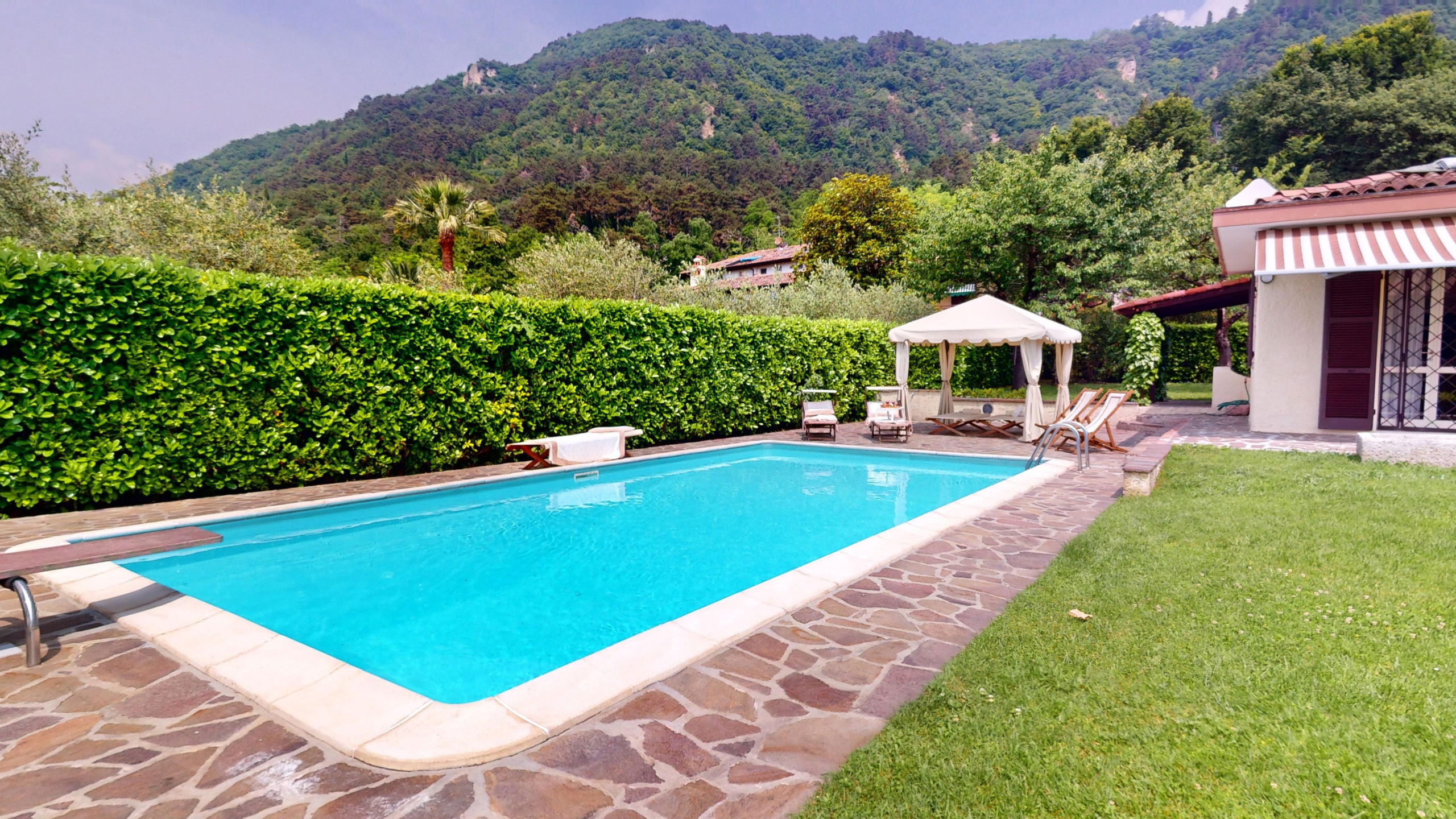 The vast outdoor spaces offer a unique experience: the patio with its charming outdoor living area and two tables with barbecue invite celebrating life in the company of friends and family. Immersed in the green garden is the private pool with a total lake view.