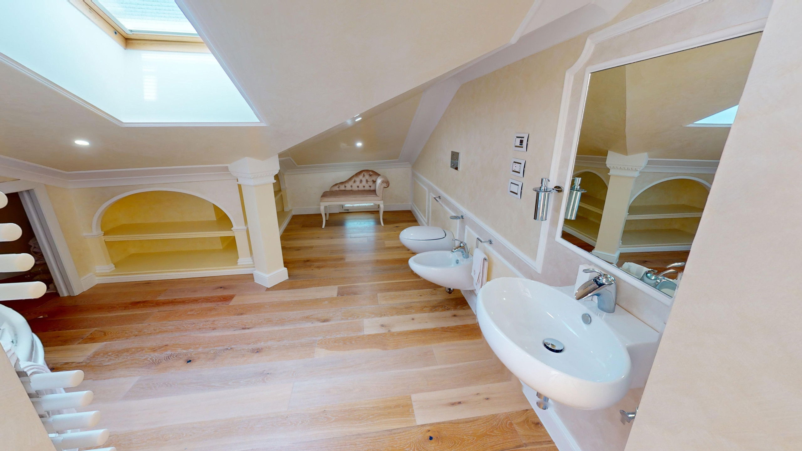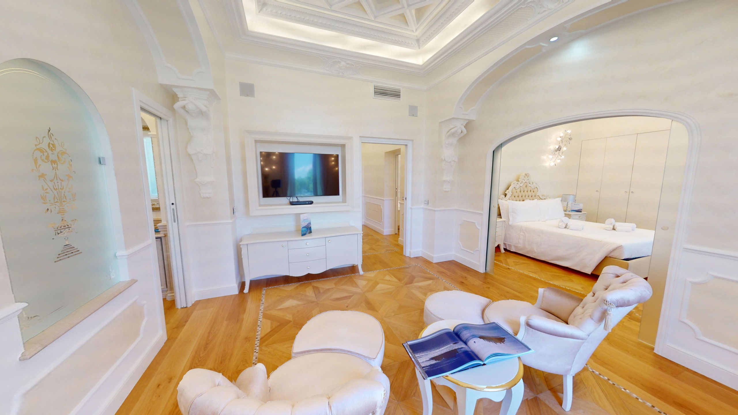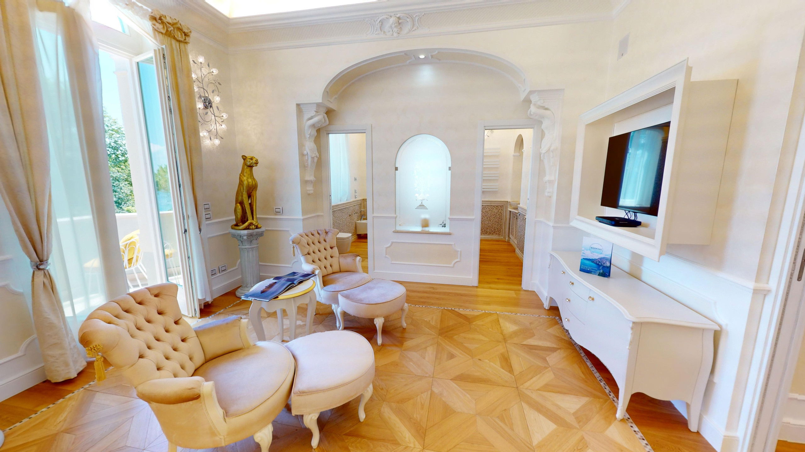 The interiors of the villa have been renovated with meticulous attention to detail, preserving the original character of the structure.