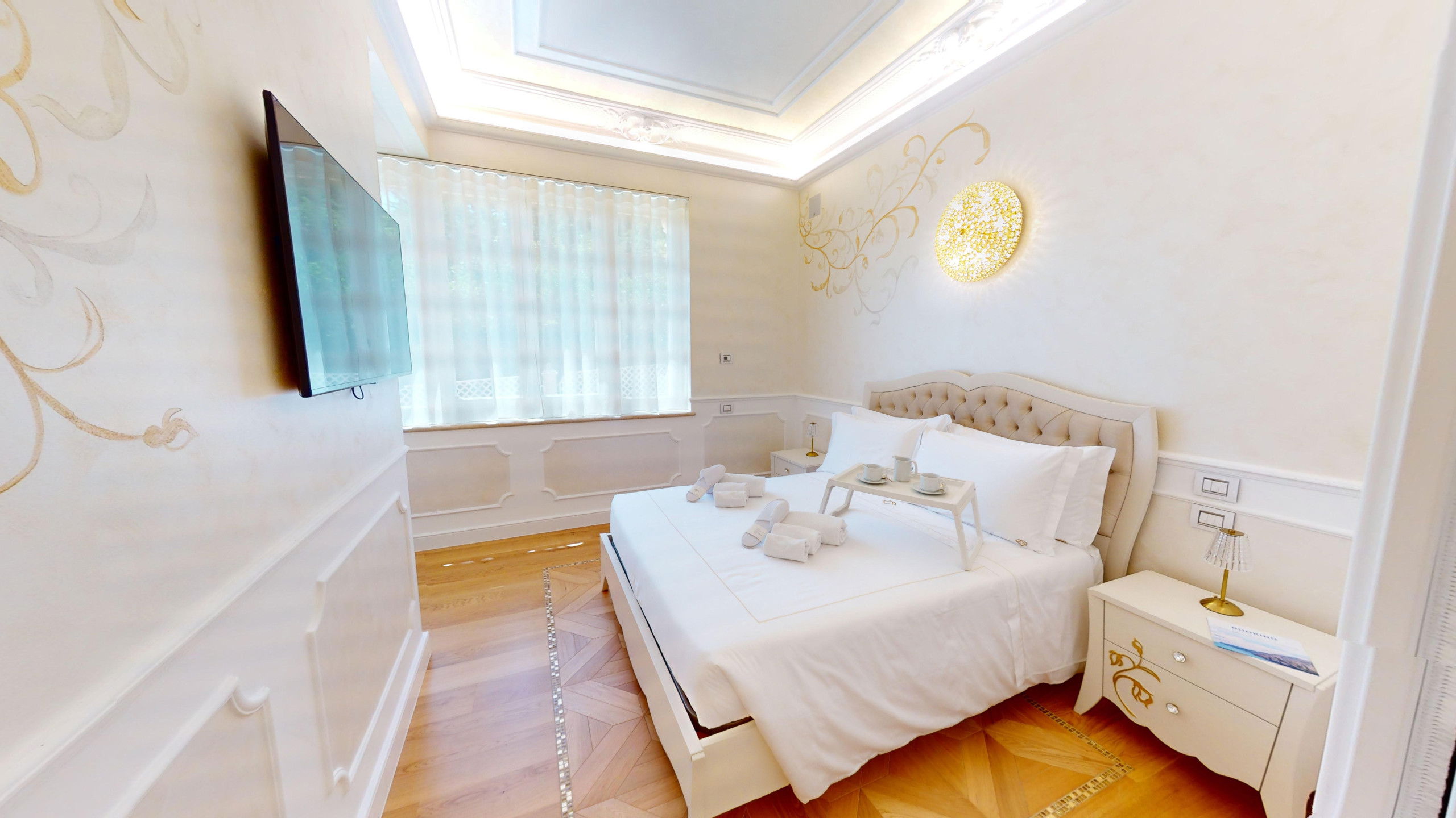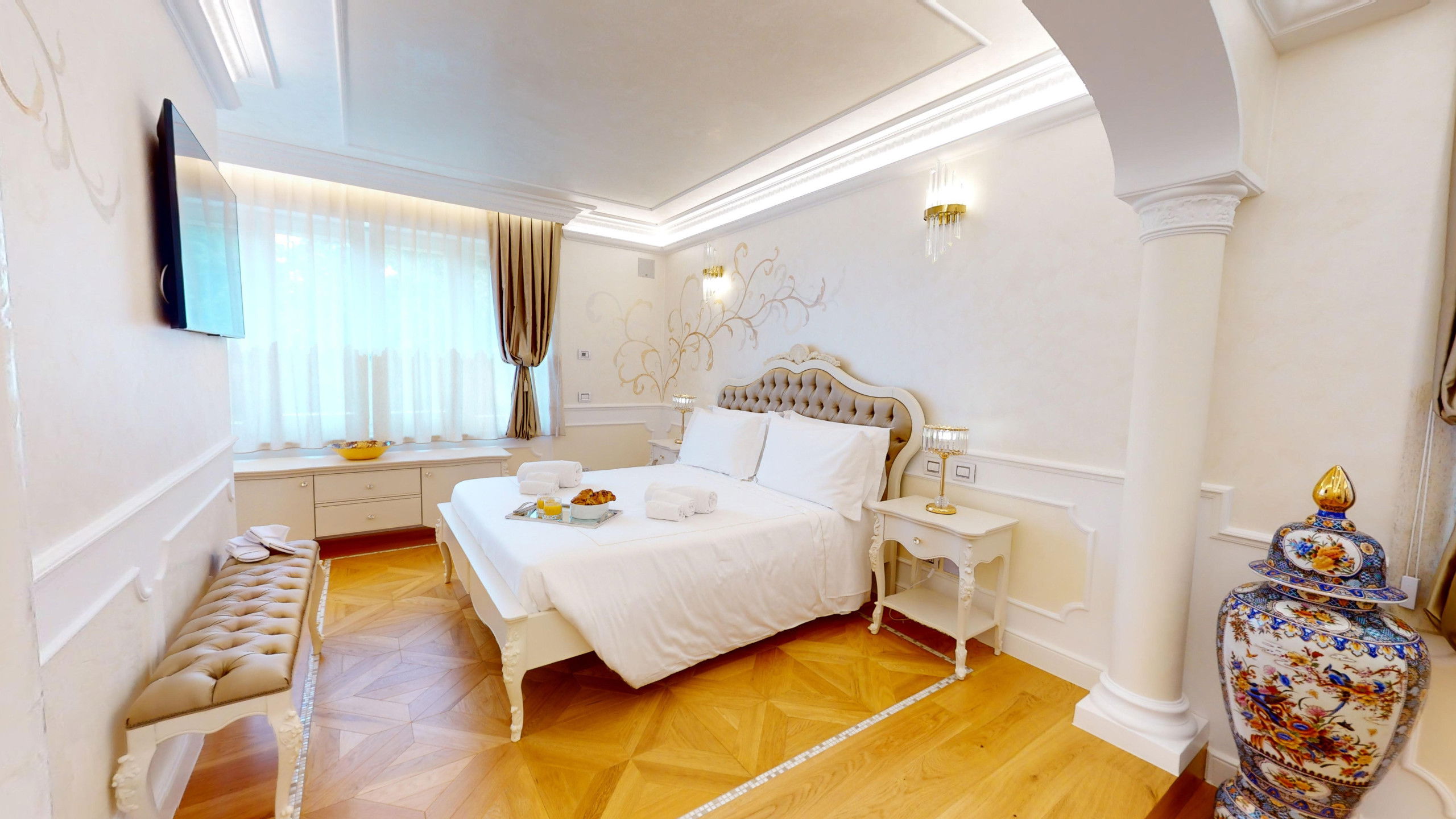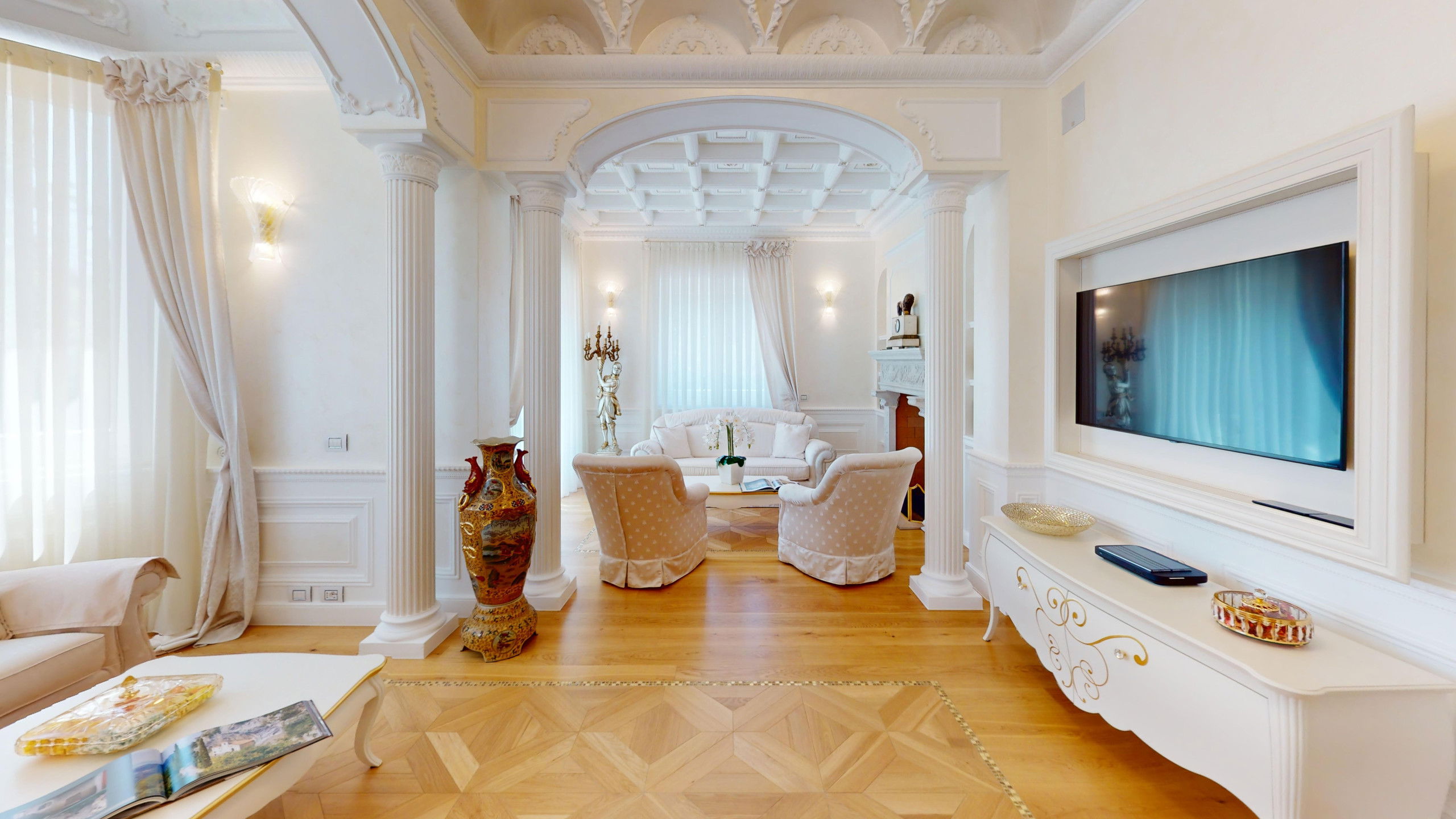 The interiors of the villa have been renovated with meticulous attention to detail, preserving the original character of the structure.