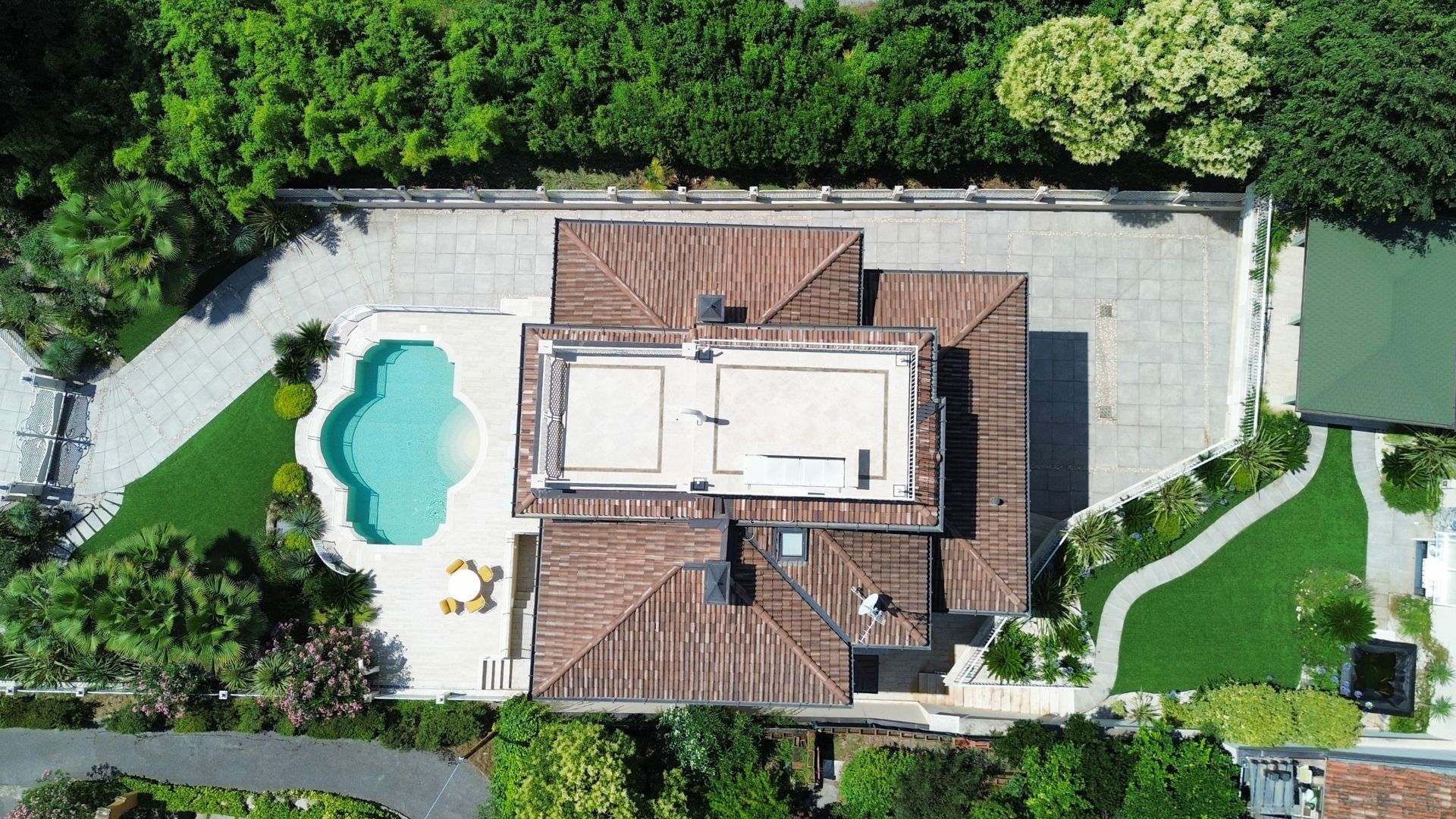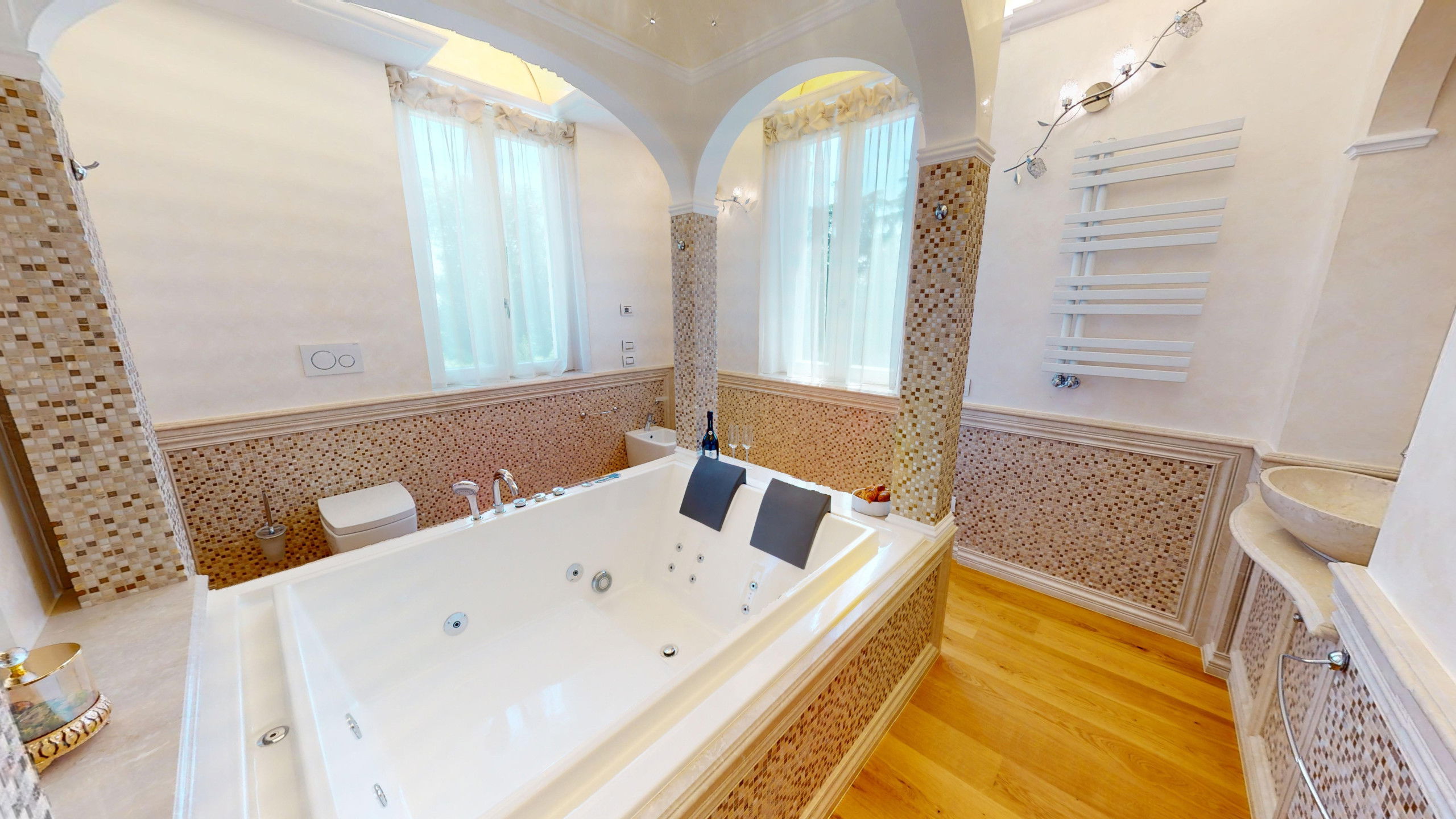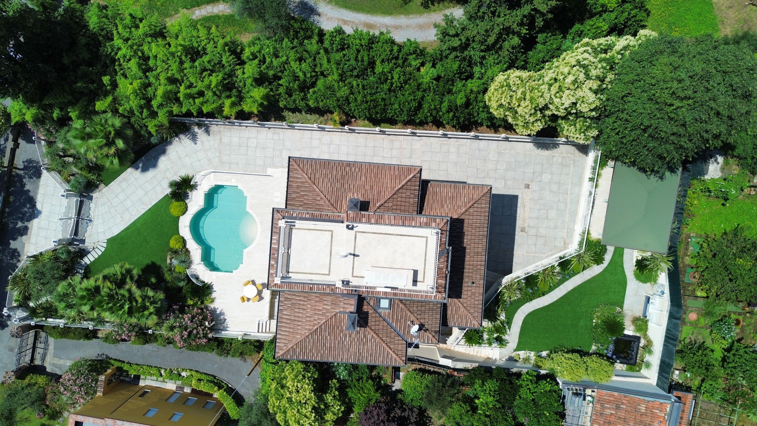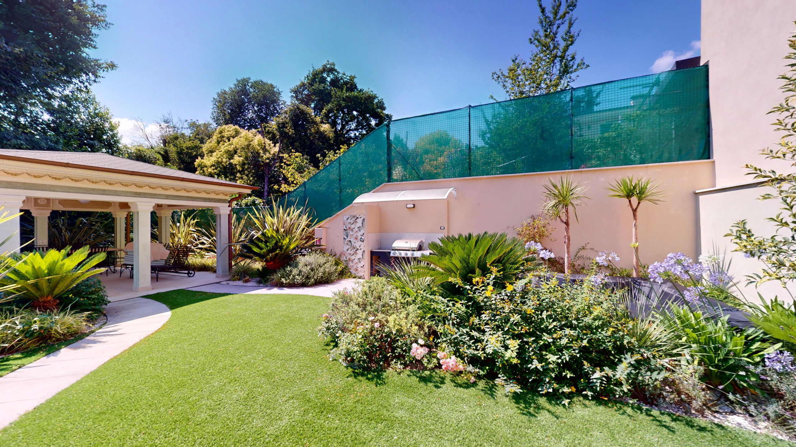 The villa is arranged over four levels and is equipped with an internal lift. On the floor is the bright living area which includes a large lounge with fireplace, a dining room with Lake view and a modern kitchen equipped with all comforts and a bedroom with private bathroom. On the second floor are the three bedrooms, all with bath and balcony. On the third floor, finally, the attic with bathroom which houses a double bedroom and a living area. From here it is possible to access the panoramic solarium terrace with the splendid Lake view. In the basement, it is possible to access the laundry, bathroom and Spa and wellness centre, equipped with sauna, Turkish bath and hydromassage tub. On the same level, you can also find a fully equipped gym and the recreation area with mini bar and billiard table from which you can directly access the swimming pool. From the finely maintained garden, it is possible to access the outdoor dining area with gazebo, table, barbecue and outdoor kitchen with hydromassage tub.