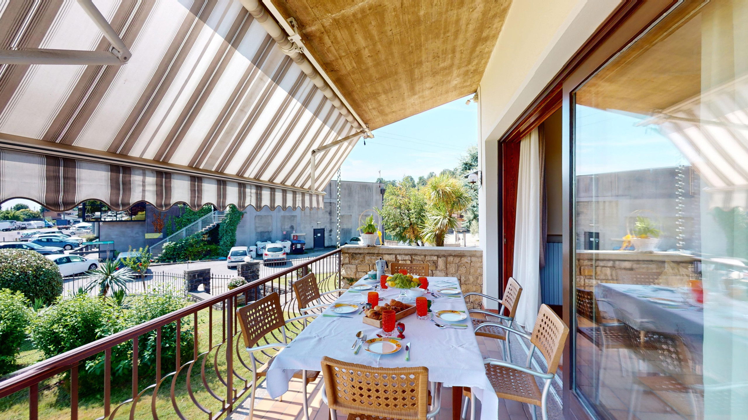 It can accommodate up to 8 people: three spacious double bedrooms, one with an en-suite bathroom and a French sofa bed. Bright living area with a wood-burning fireplace, fully equipped separate kitchen and habitable terrace. The property is equipped with screens.