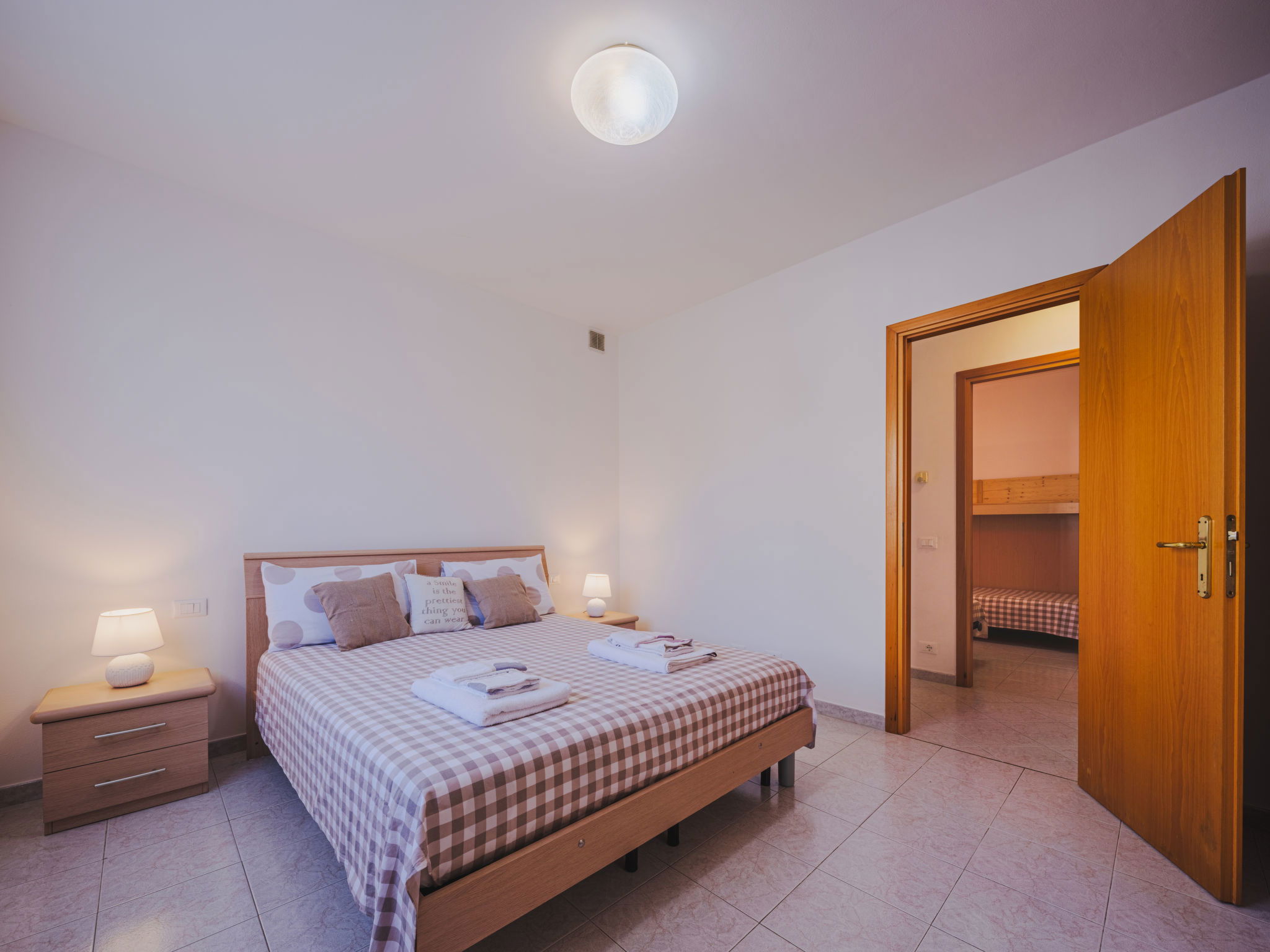 "La Palma", 3-room apartment 80 m2, on the ground floor. Object suitable for 2 adults + 2 children. Beautiful and cosy furnishings: open living/dining room. Exit to the garden. 1 double bedroom. 1 room with 1 fold-away bed and 1 pull-out bed. Kitchenette (oven, dishwasher, 5 gas rings, toaster, kettle, microwave, electric coffee machine). Shower/bidet/WC. Gas heating (extra). Heating available only from 01.11. to 15.04. Terrace furniture, barbecue (portable), deck chairs (2). Facilities: washing machine, iron, mosquito net, hair dryer. Internet (WiFi). Parking (1 car). Please note: non-smokers only. Maximum 1 pet/ dog allowed. Private entrance, smoke alarm, fire extinguisher. IT011001C2AURXU6D2