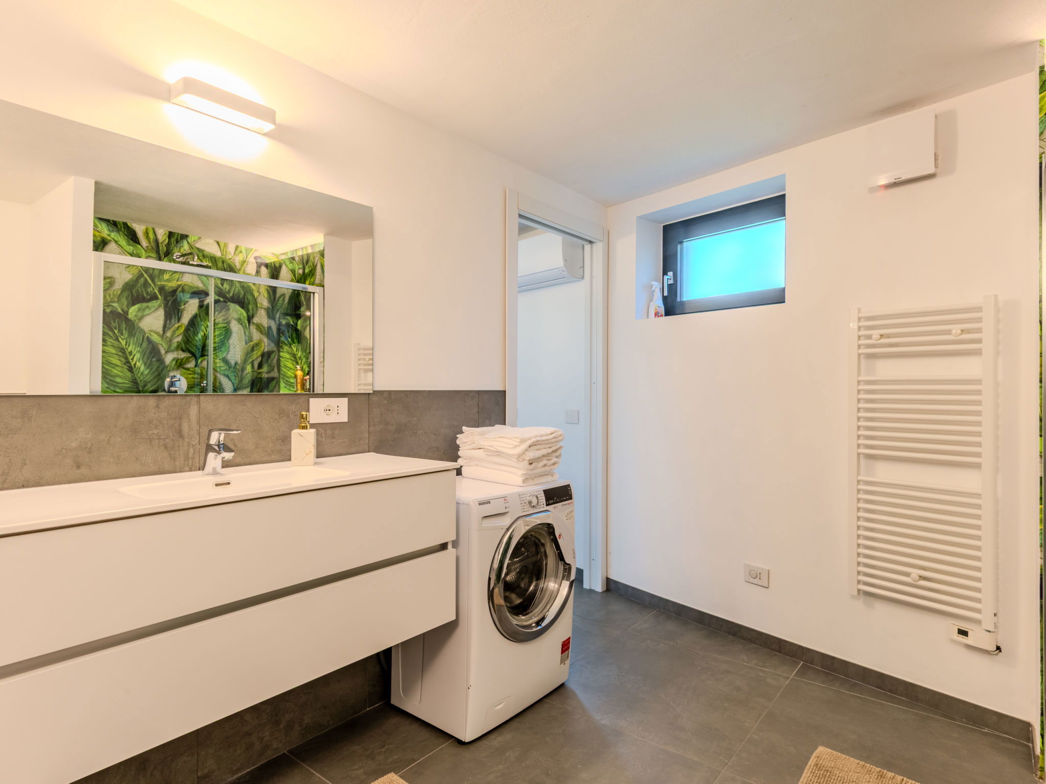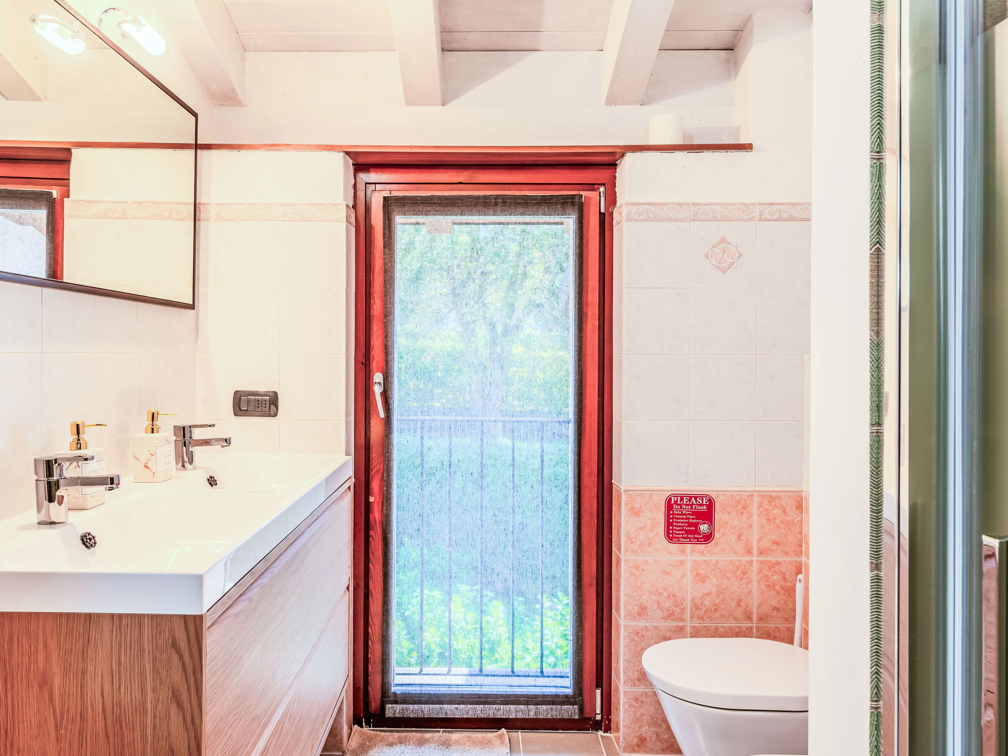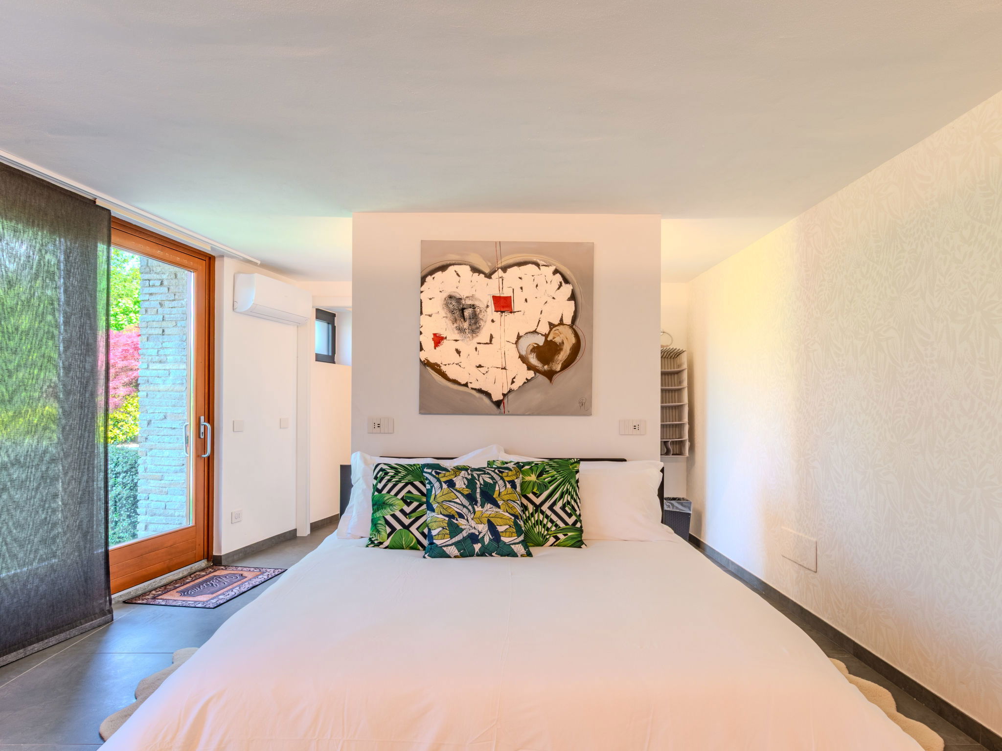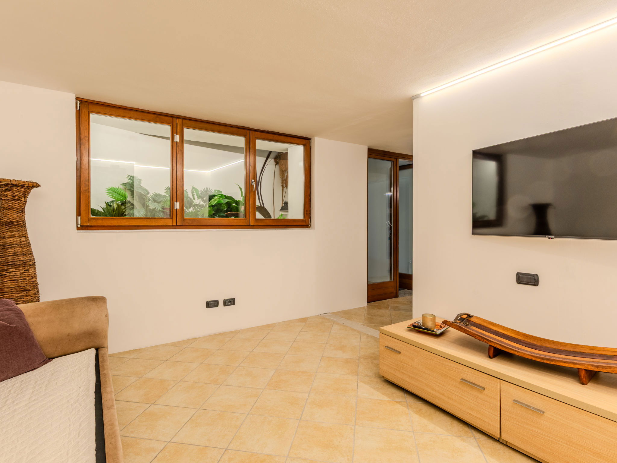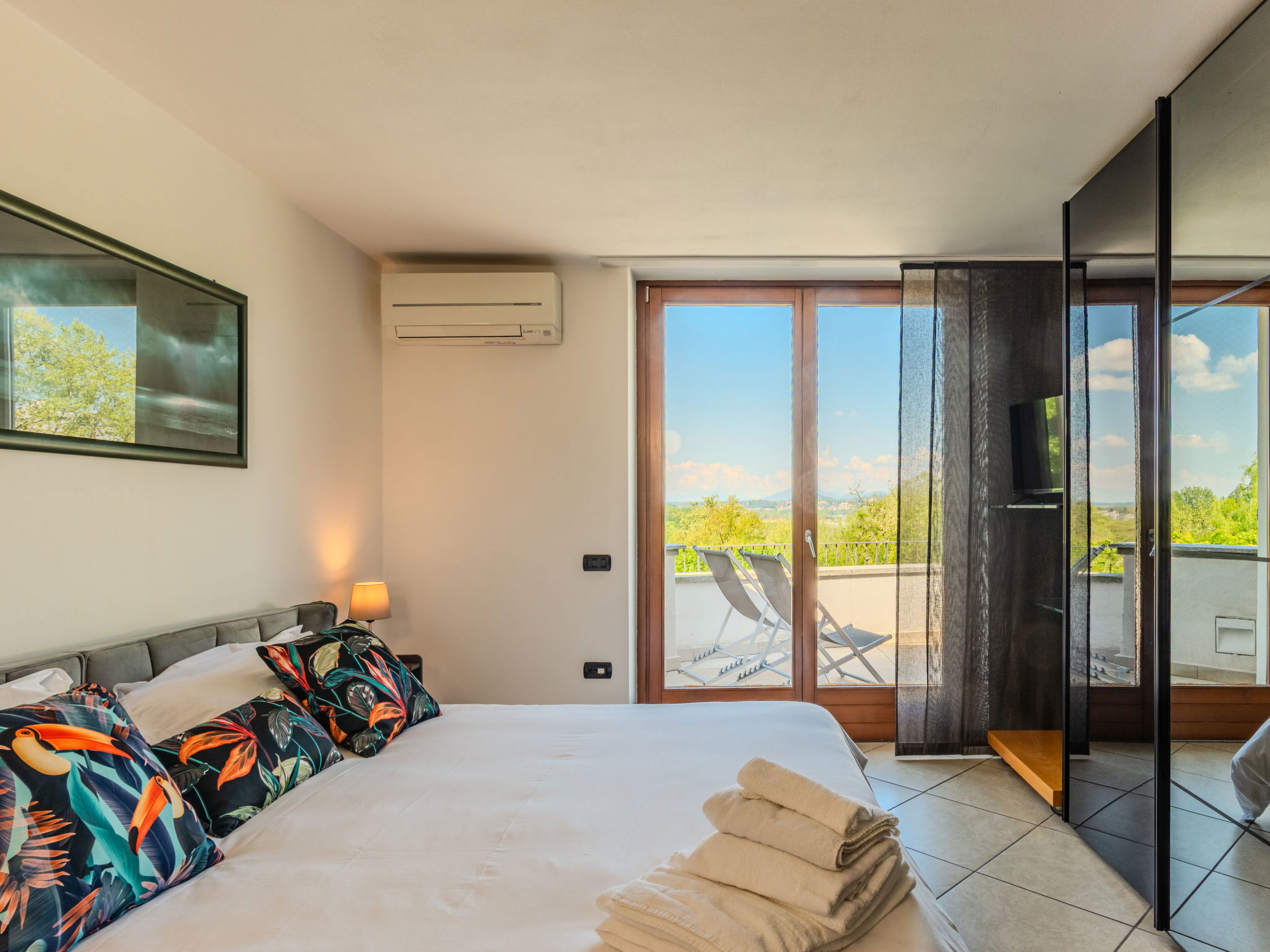 4-room apartment 120 m2 on 2 levels on 1st floor. Tasteful and cosy furnishings: living/dining room with dining table and TV. Exit to the terrace. 1 room with 1 bed and 1 double bed (180 cm, length 200 cm). 1 room with 1 double bed (160 cm, length 200 cm). Open kitchen (oven, dishwasher, 4 induction hot plates, toaster, kettle, microwave). Shower/bidet/WC. Gas heating, air-conditioning. On the lower ground floor: (exterior staircase), 1 large room with 1 bed, 1 double bed, shower/bidet/WC and TV. Exit to the garden, to the swimming pool. Terrace, large patio. Terrace furniture, deck chairs (6). Marvellous view of the mountains and the countryside. Facilities: washing machine, children's high chair, baby cot for up to 2 year olds, hair dryer. Internet (WiFi, free). Parking (2 cars). Please note: non-smokers only. Maximum 1 pet/ dog allowed. Private entrance, fire extinguisher, no lift. No internal connecting door between the floors. The pool mentioned in the description is for private use. IT013053C2DRN5KZV5