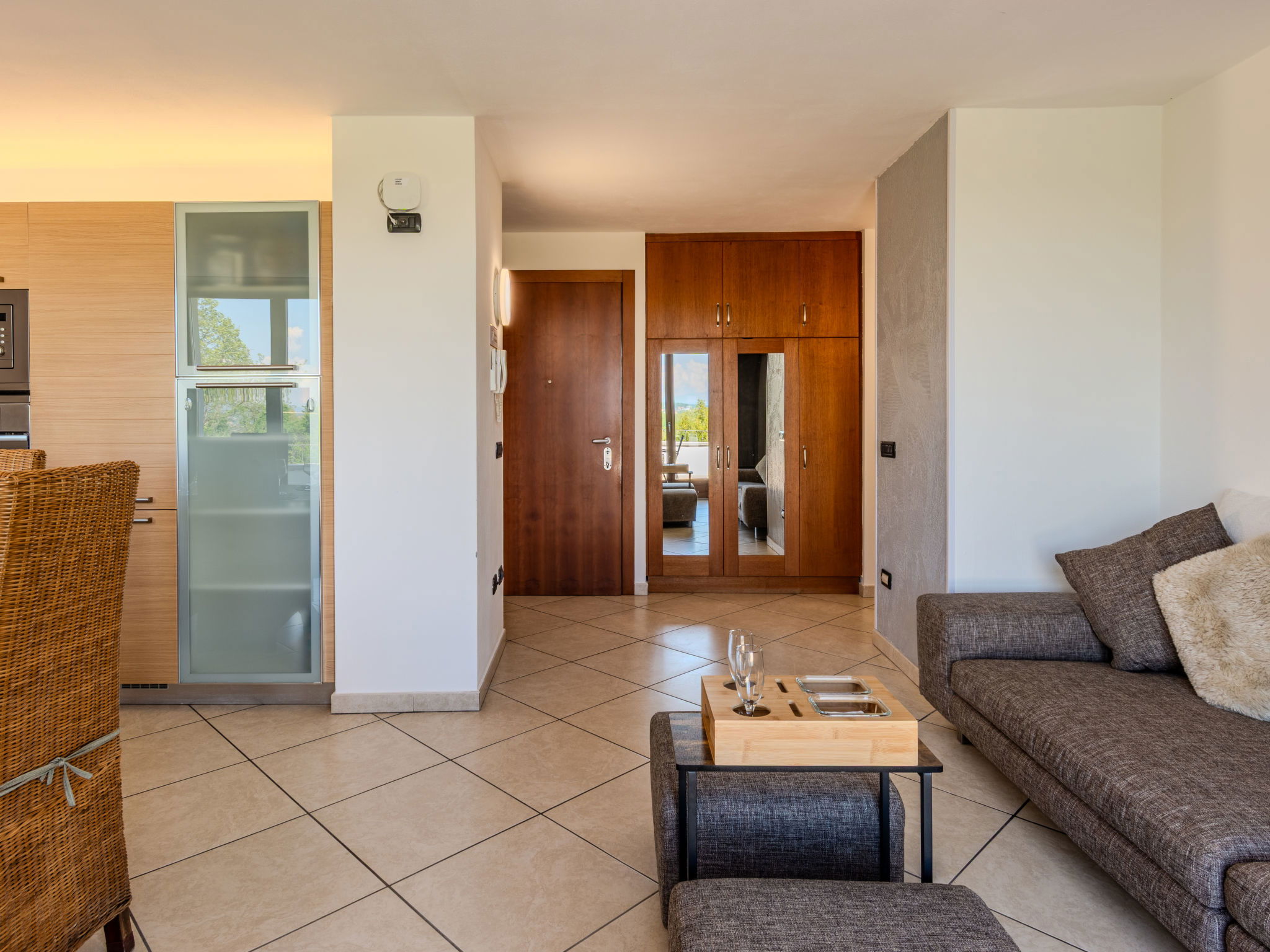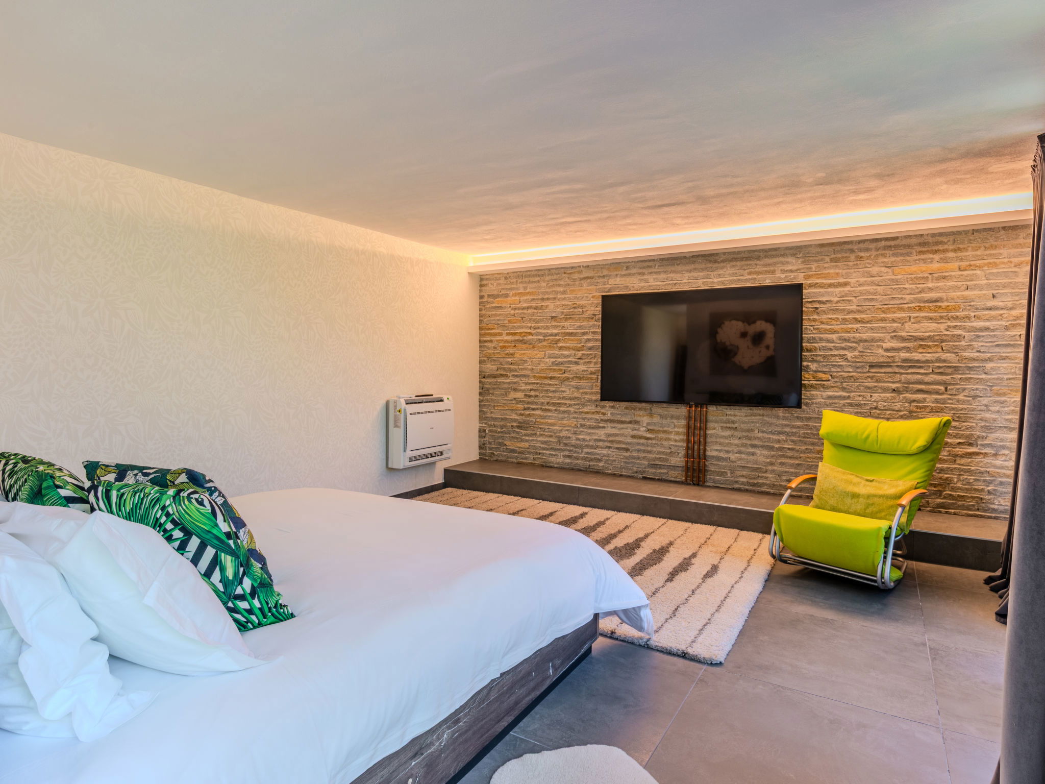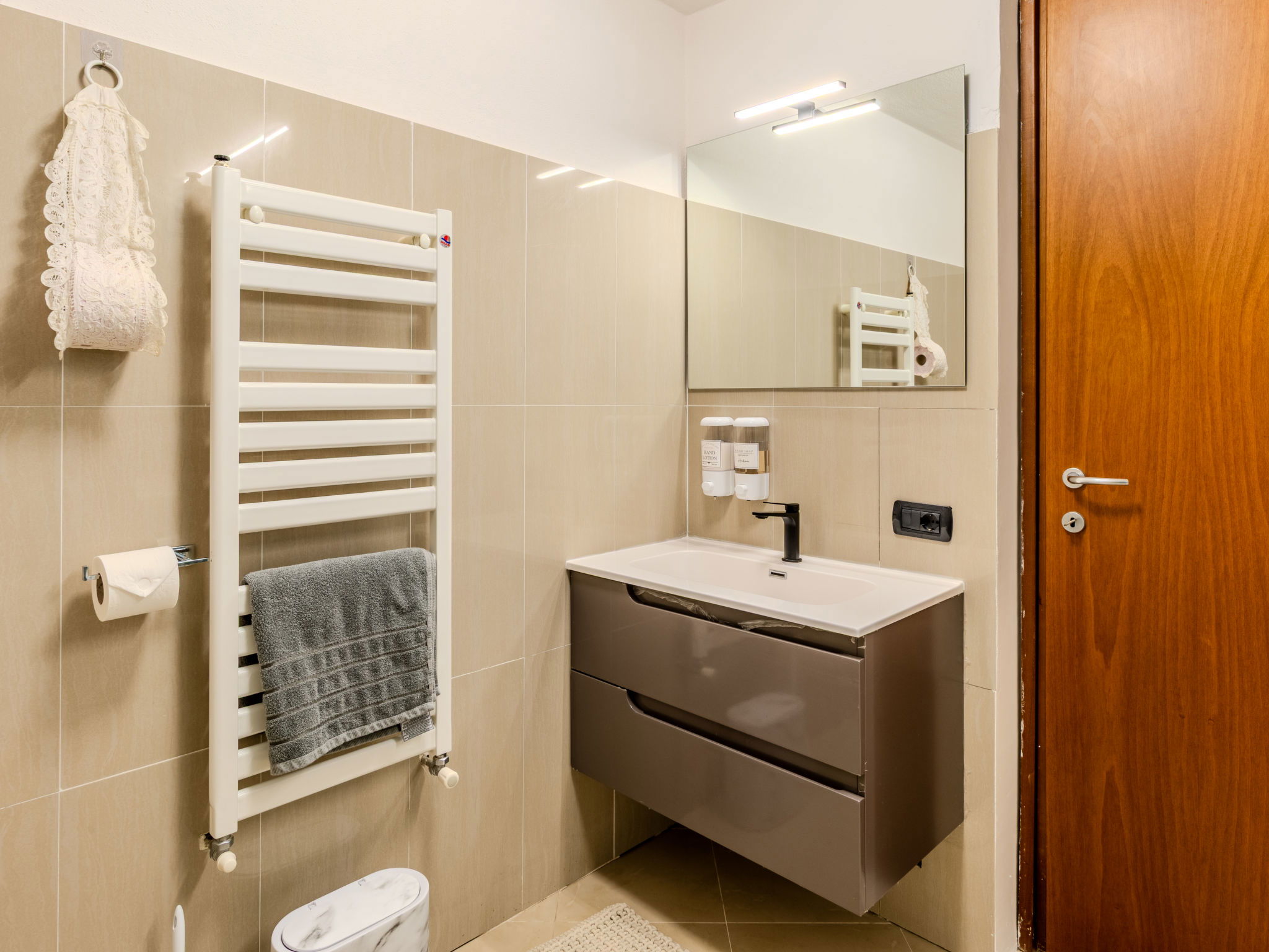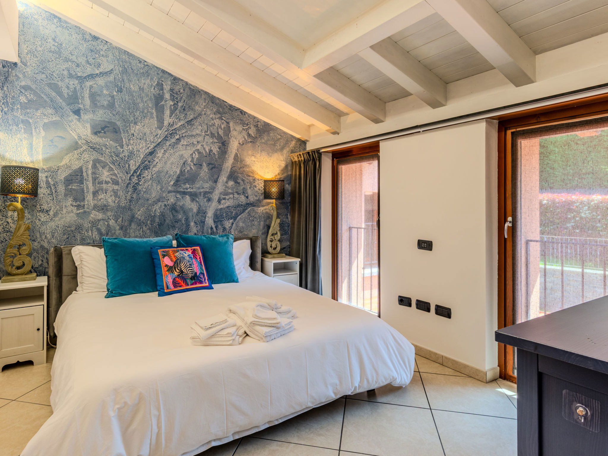 4-room apartment 120 m2 on 2 levels on 1st floor. Tasteful and cosy furnishings: living/dining room with dining table and TV. Exit to the terrace. 1 room with 1 bed and 1 double bed (180 cm, length 200 cm). 1 room with 1 double bed (160 cm, length 200 cm). Open kitchen (oven, dishwasher, 4 induction hot plates, toaster, kettle, microwave). Shower/bidet/WC. Gas heating, air-conditioning. On the lower ground floor: (exterior staircase), 1 large room with 1 bed, 1 double bed, shower/bidet/WC and TV. Exit to the garden, to the swimming pool. Terrace, large patio. Terrace furniture, deck chairs (6). Marvellous view of the mountains and the countryside. Facilities: washing machine, children's high chair, baby cot for up to 2 year olds, hair dryer. Internet (WiFi, free). Parking (2 cars). Please note: non-smokers only. Maximum 1 pet/ dog allowed. Private entrance, fire extinguisher, no lift. No internal connecting door between the floors. The pool mentioned in the description is for private use. IT013053C2DRN5KZV5