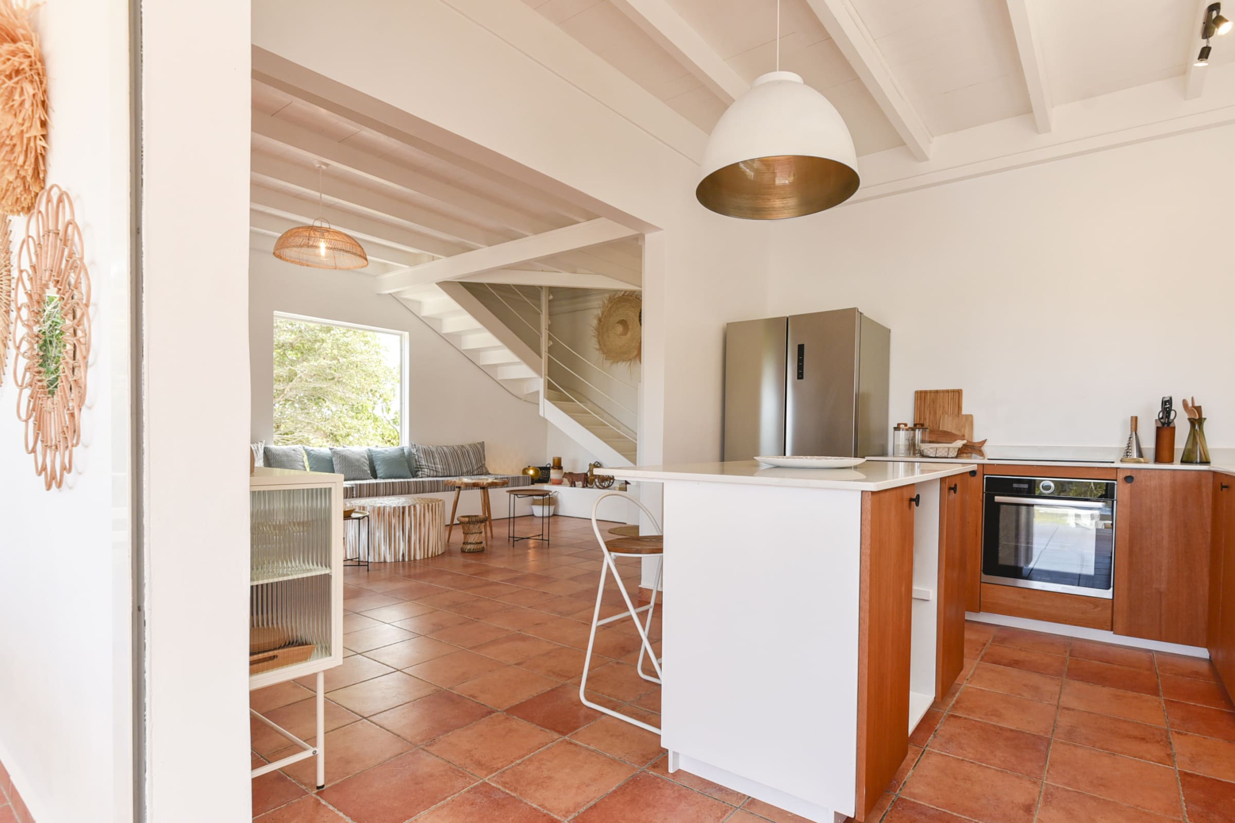 Recently built, the Creole style building offers a fully equipped kitchen opening onto the terrace, designed to accommodate large tables. The four air-conditioned bedrooms, equipped with quality equipment, ensure peaceful nights.