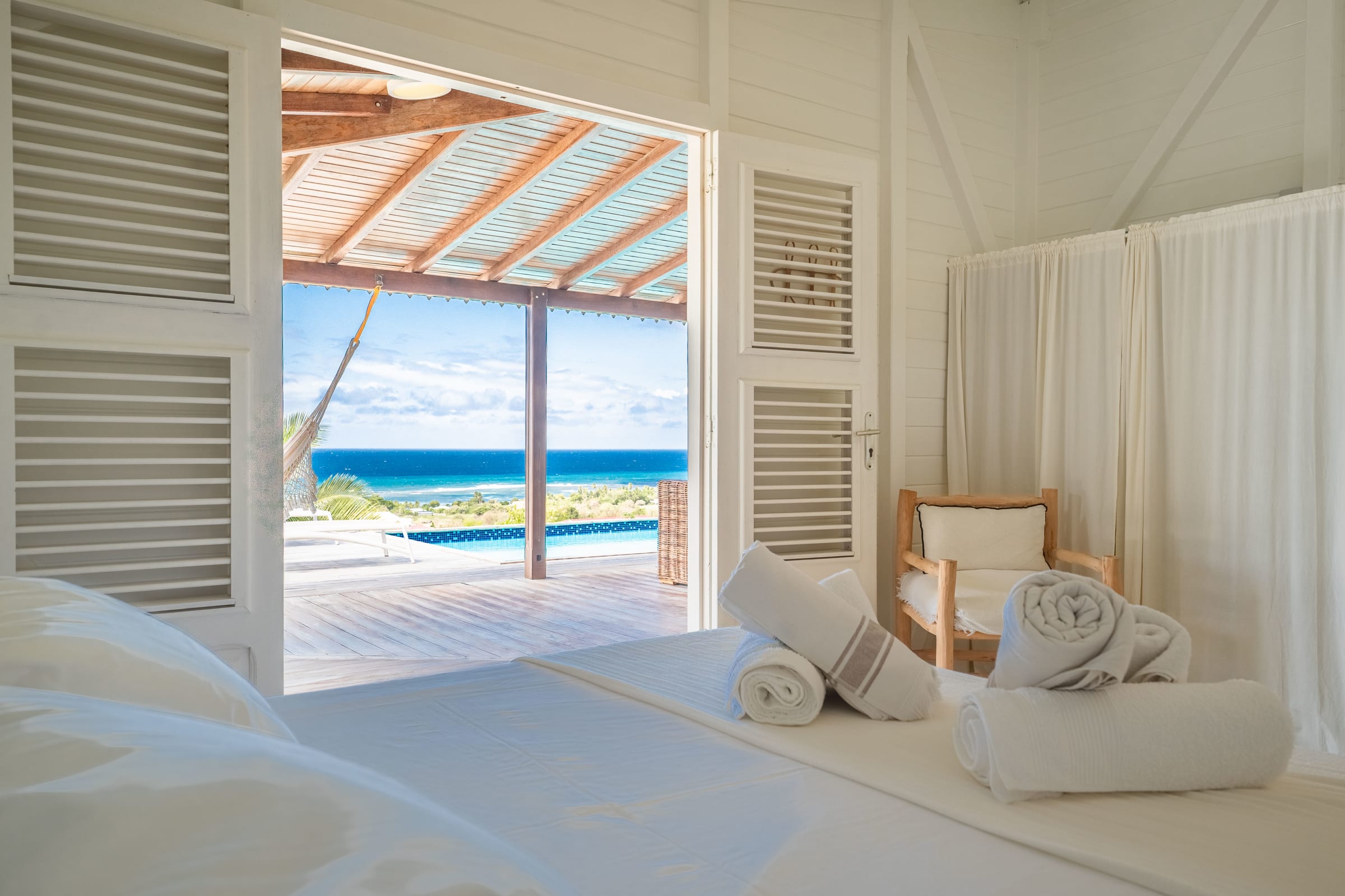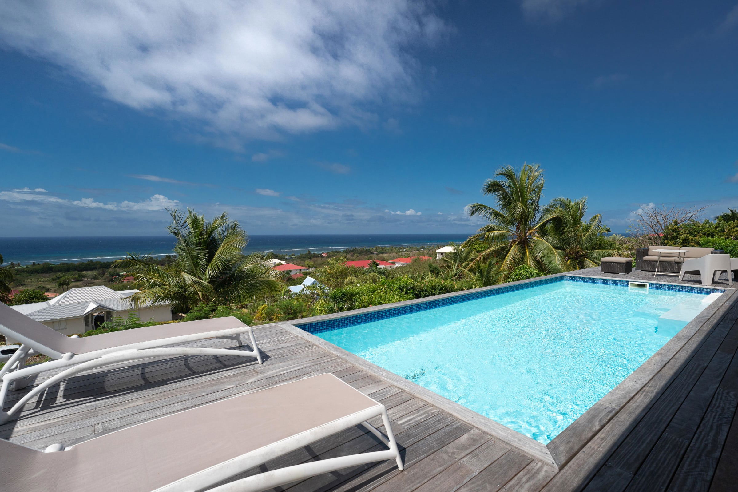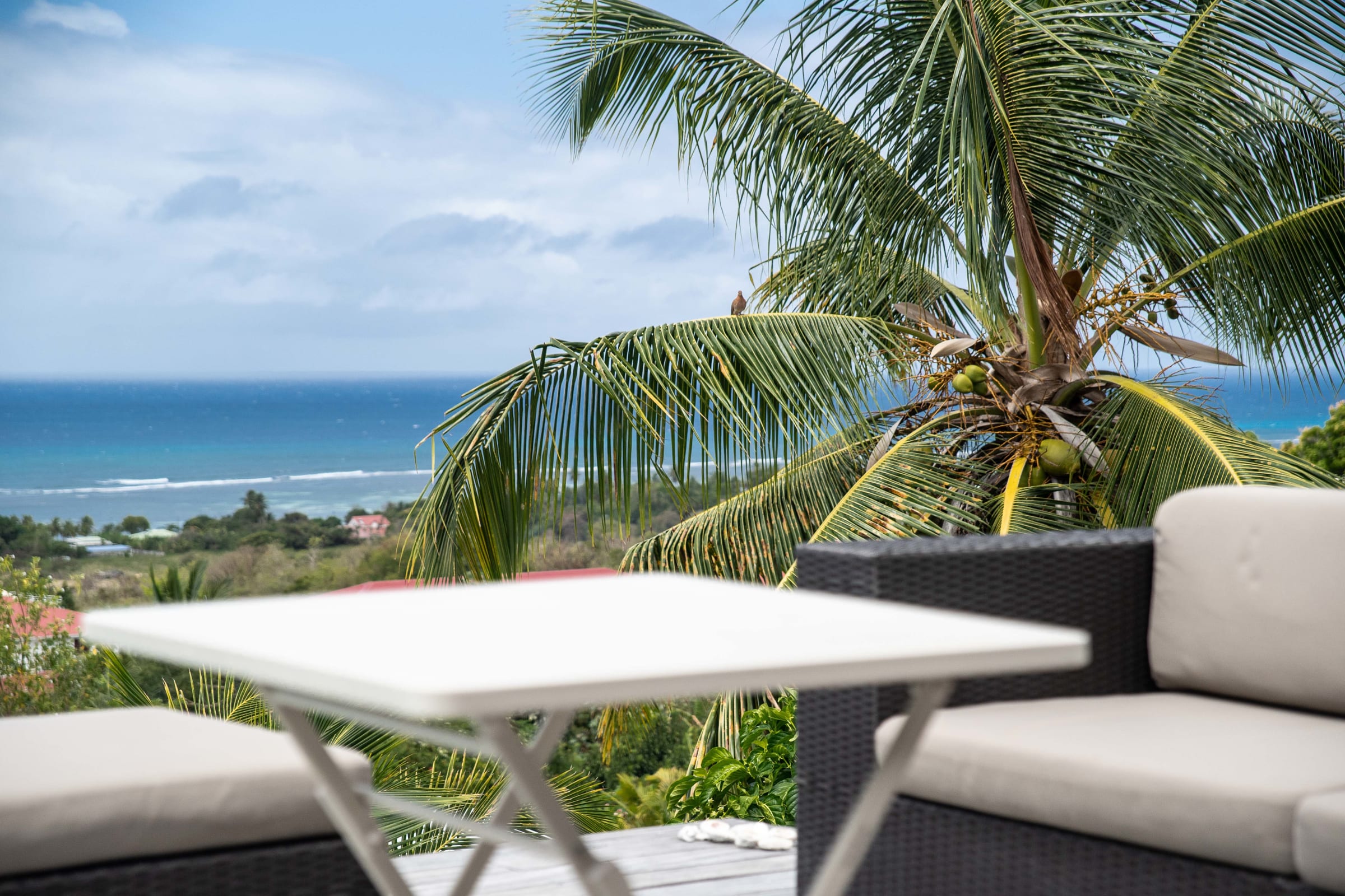 Nestled on the heights of Grand Bourg, Villa Capi offers an idyllic refuge with its three bedrooms, one with a kingsize bed (180 cm) and two with Queensize beds (160 cm) and a private bathroom, ensuring privacy and comfort for its guests.