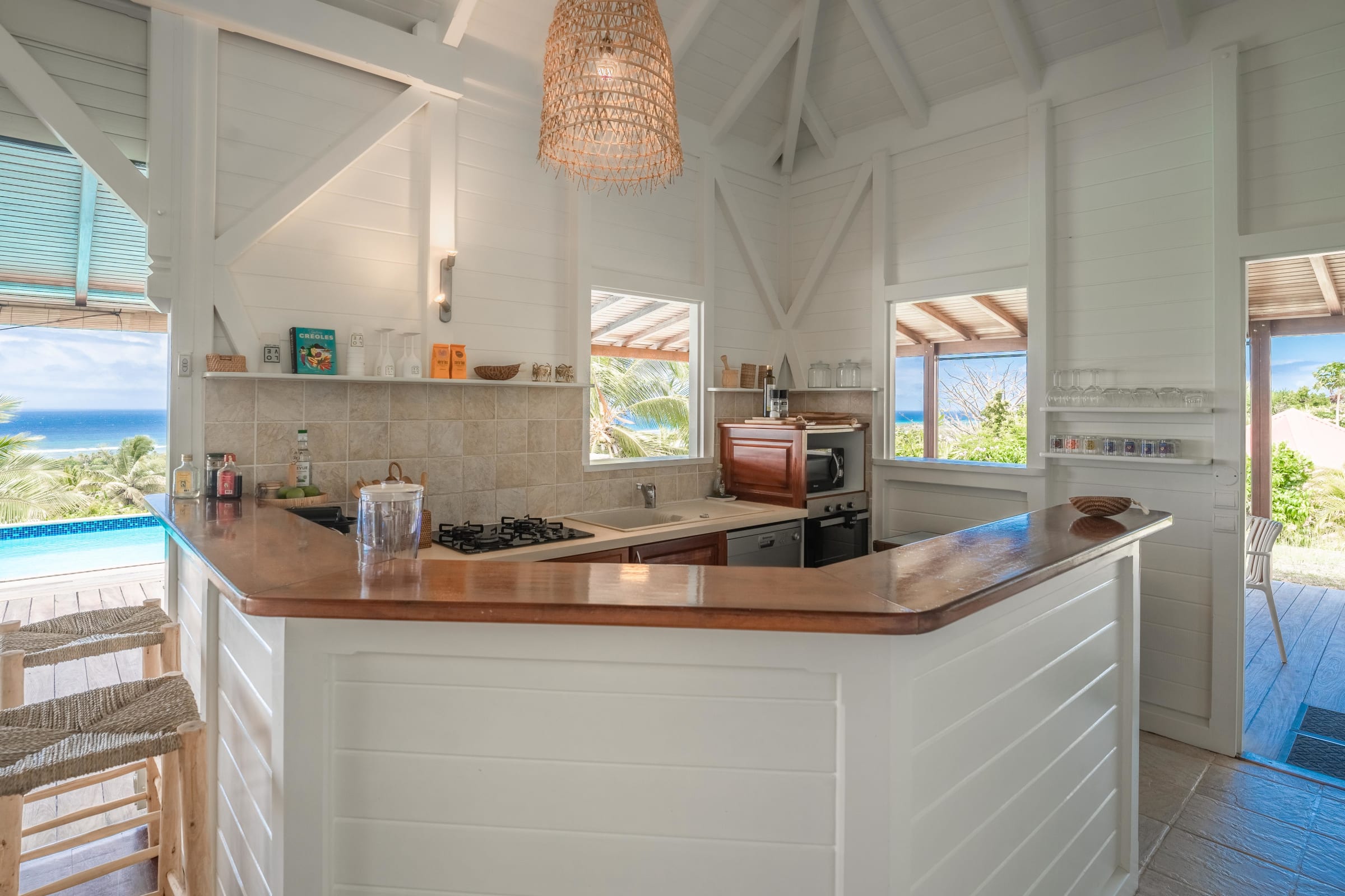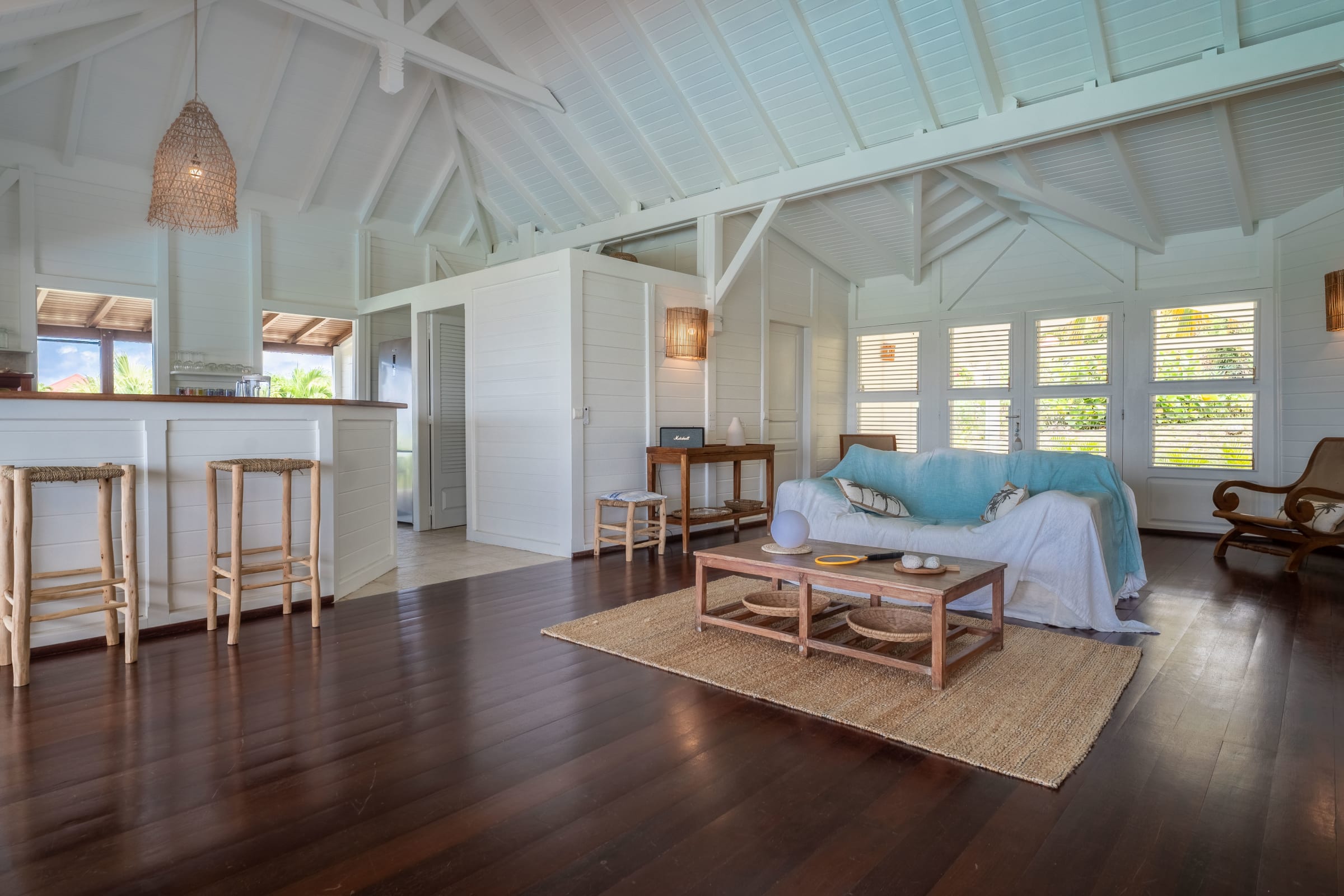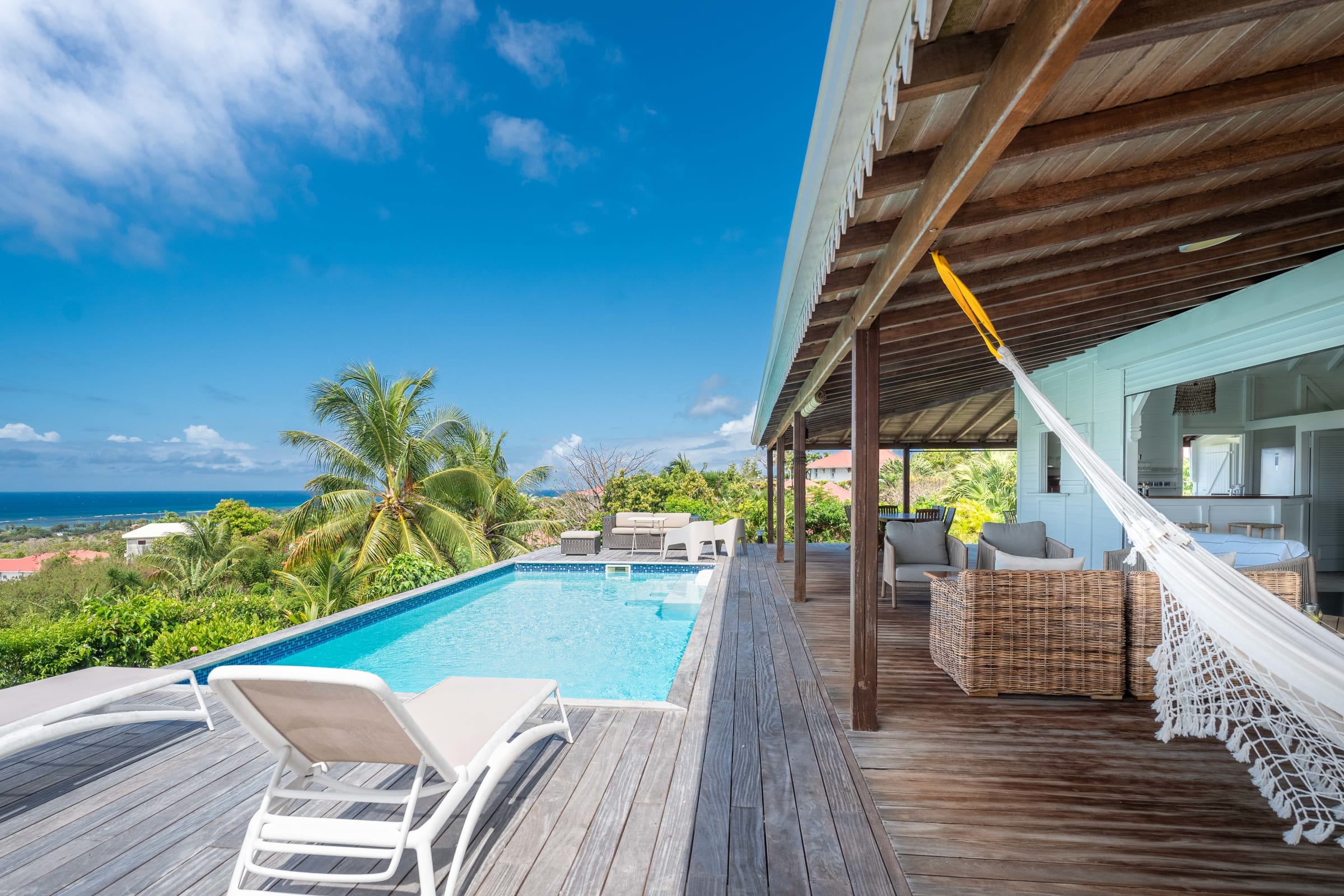 The villa is located in Grand-Bourg, one of the jewels of Marie-Galante, renowned for its white sand beaches and its authenticity. About 5 minutes from the town, you will find all amenities: supermarkets, bakeries, local markets and Creole restaurants. The beaches of Feuillère and Anse Canot are unmissable, ideal for swimming or relaxing. Nature lovers will appreciate the hiking trails and sugar cane fields which give the island its unique charm.