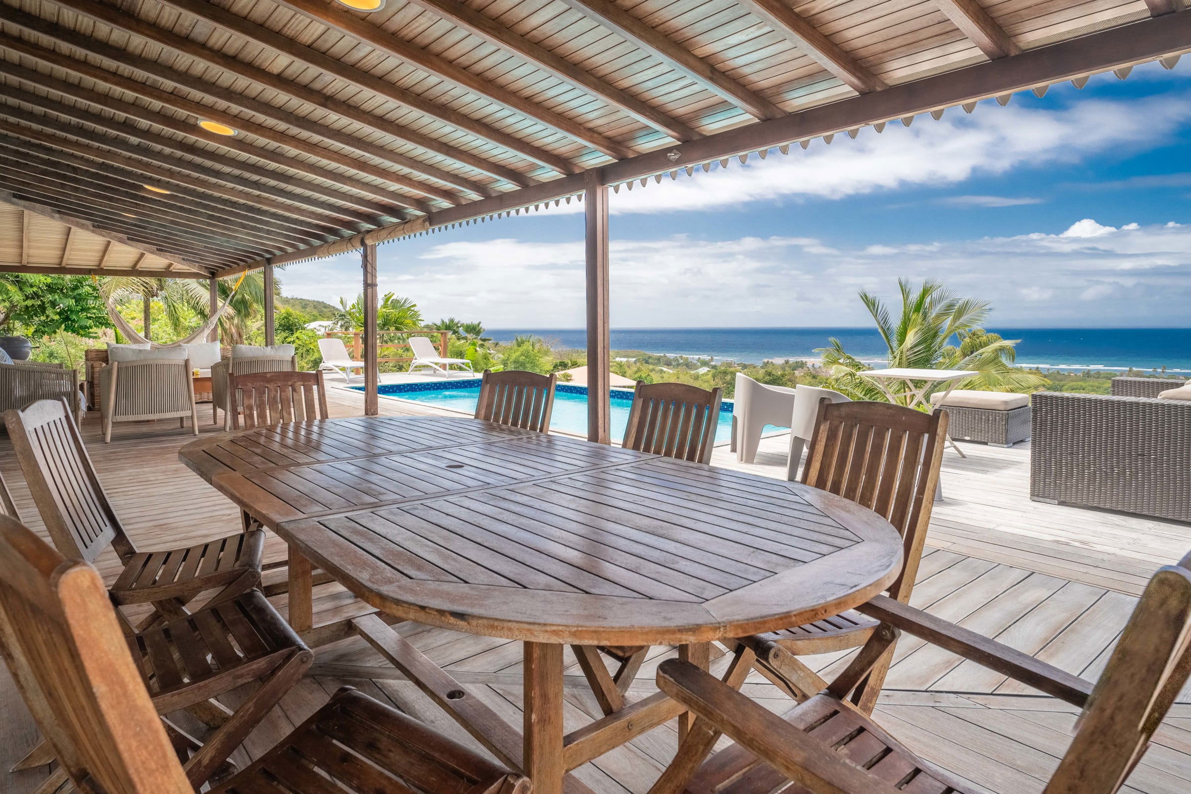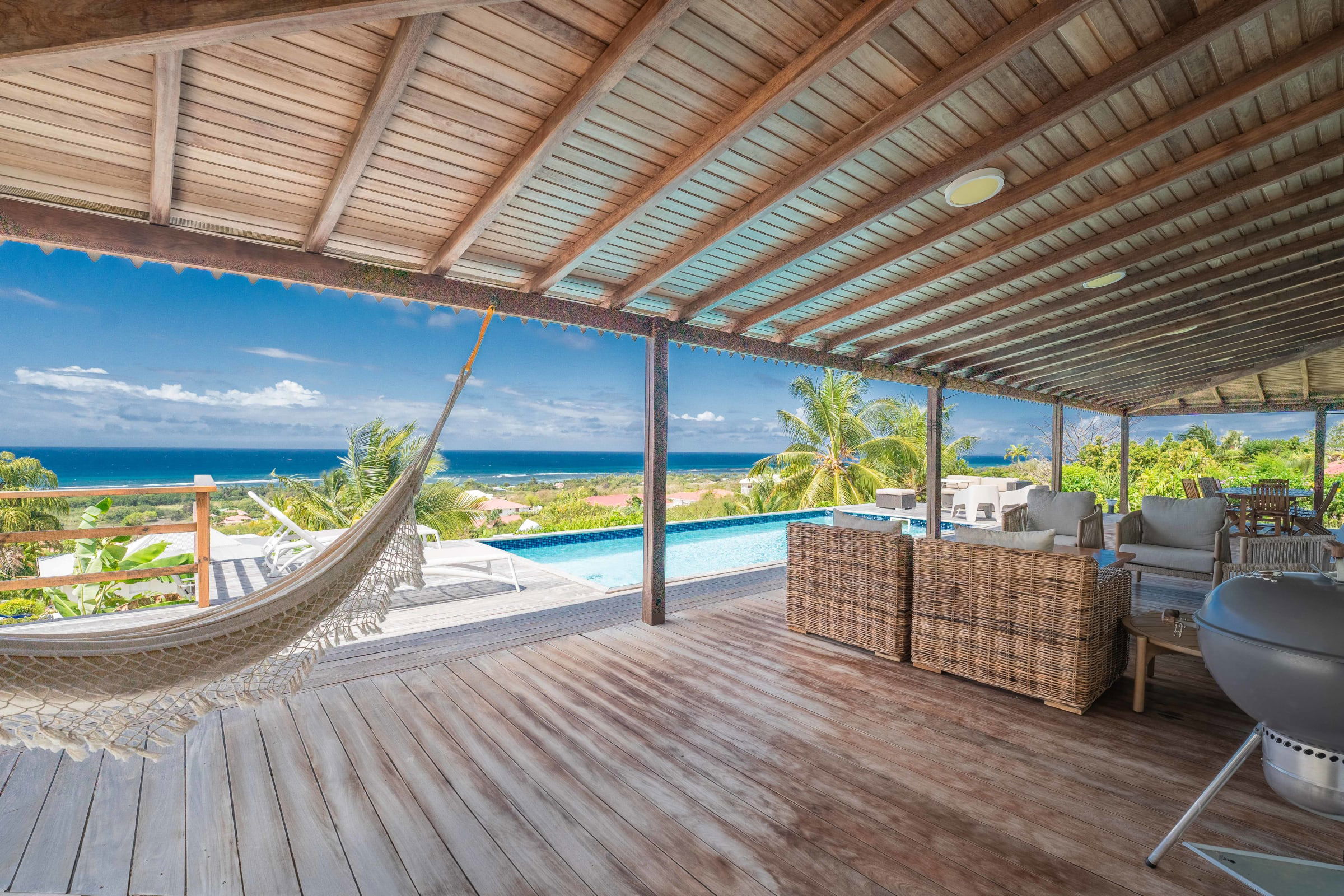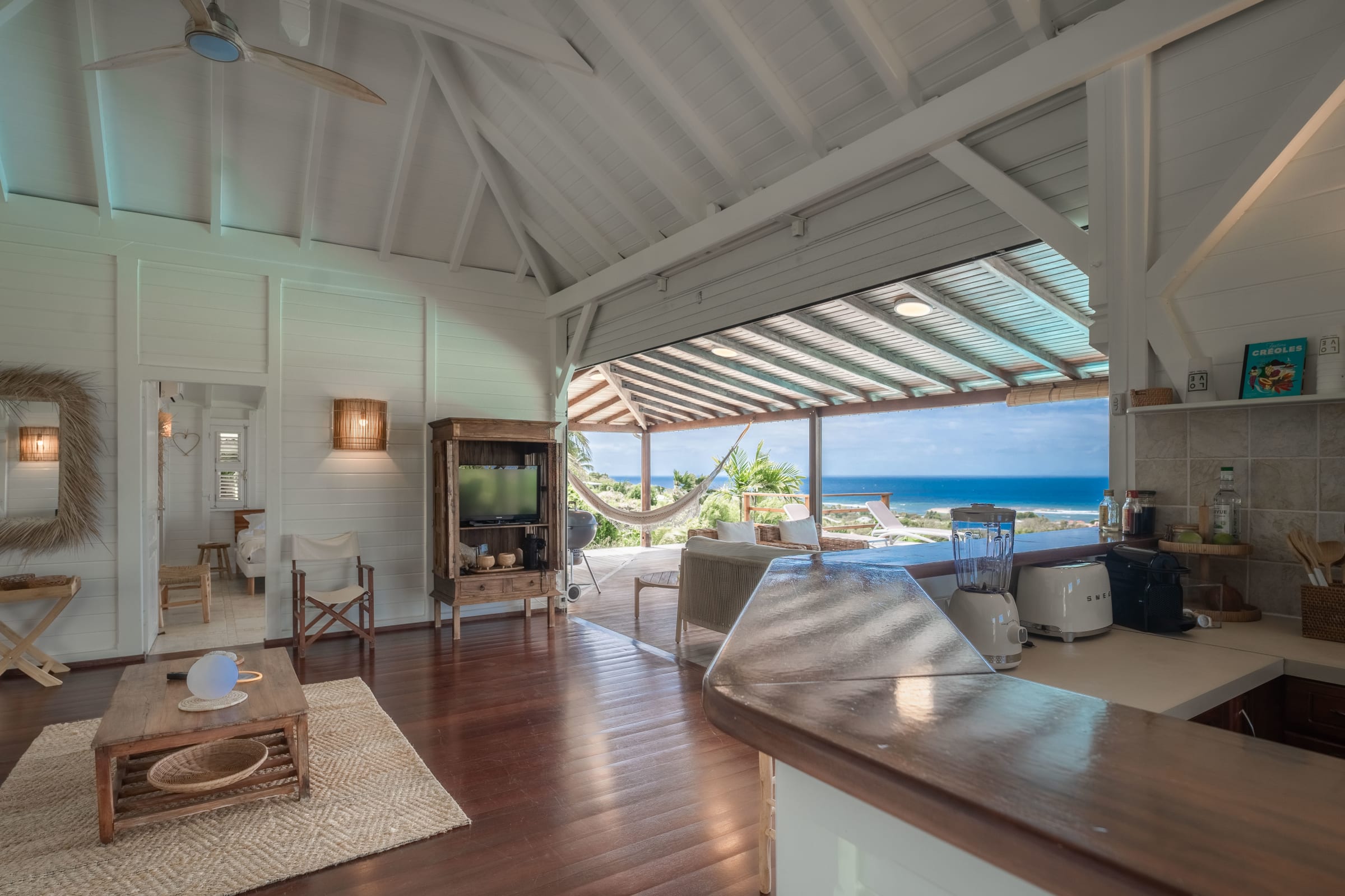 The villa is located in Grand-Bourg, one of the jewels of Marie-Galante, renowned for its white sand beaches and its authenticity. About 5 minutes from the town, you will find all amenities: supermarkets, bakeries, local markets and Creole restaurants. The beaches of Feuillère and Anse Canot are unmissable, ideal for swimming or relaxing. Nature lovers will appreciate the hiking trails and sugar cane fields which give the island its unique charm.