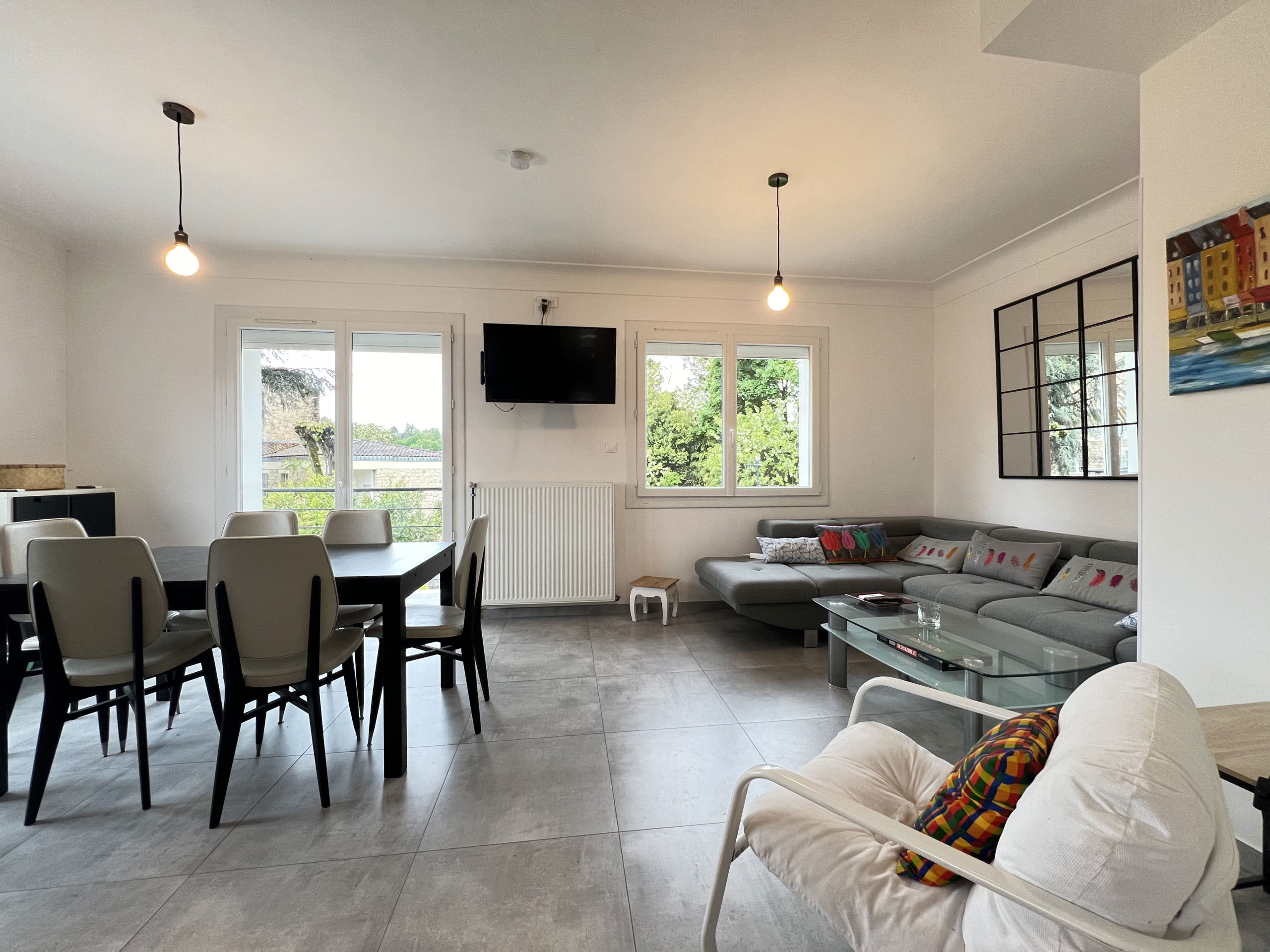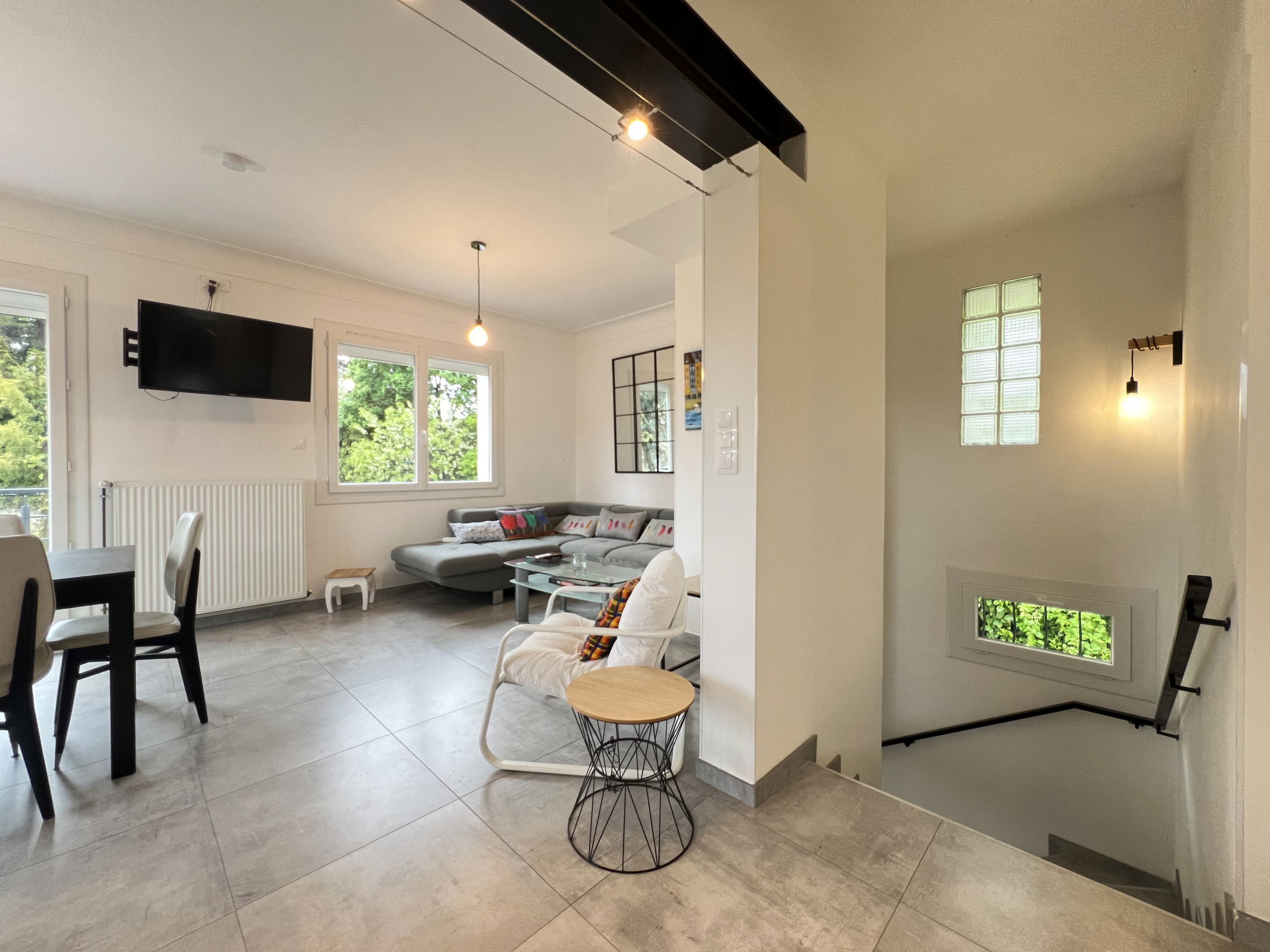 The accommodation is equipped with the following items: garden, garden furniture, fenced garden, terrace, washing machine, barbecue, internet (Wi-Fi), balcony, heat pump, open-air parking in the same building, 3 fans, 1 TV.