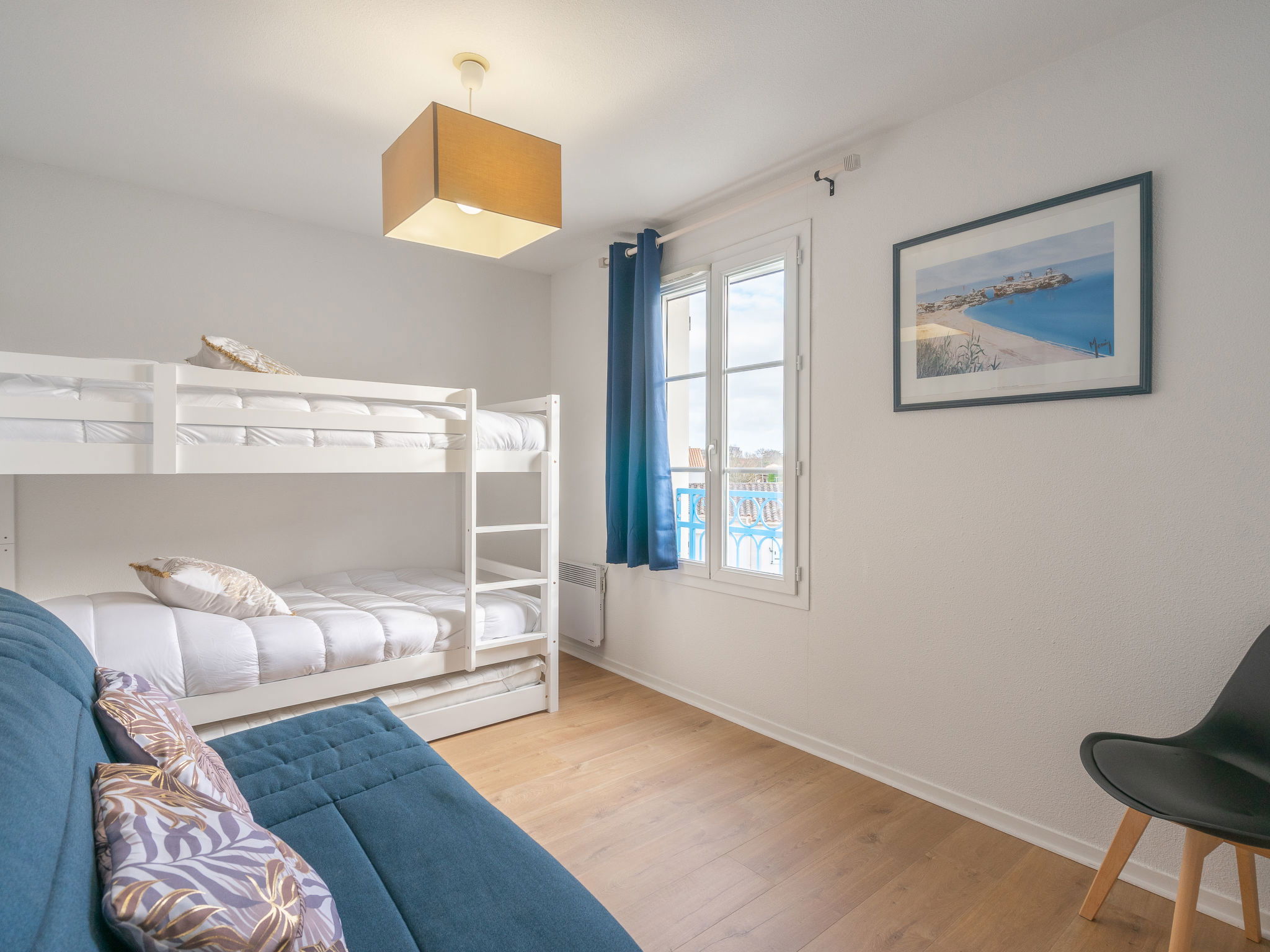 3-room apartment 60 m2 on 1st floor, east facing position. Beautiful furnishings: living/dining room with TV (flat screen). Exit to the terrace. 1 room with 1 french bed (1 x 140 cm, length 190 cm), TV (flat screen). 1 room with 1 double sofabed (1 x 120 cm, length 190 cm), 1 x 2 bunk beds (90 cm, length 190 cm). Kitchenette (4 hot plates, oven, dishwasher, toaster, microwave, freezer, electric coffee machine). Shower, sep. WC. Electric heating. Large terrace 12 m2, east facing position. Terrace furniture, electric barbecue. Facilities: washing machine, baby cot. Internet (WiFi, free). Parking space n 1109. Please note: smoke alarm. Offer by a private individual according to Art. 155, IV of CGI.