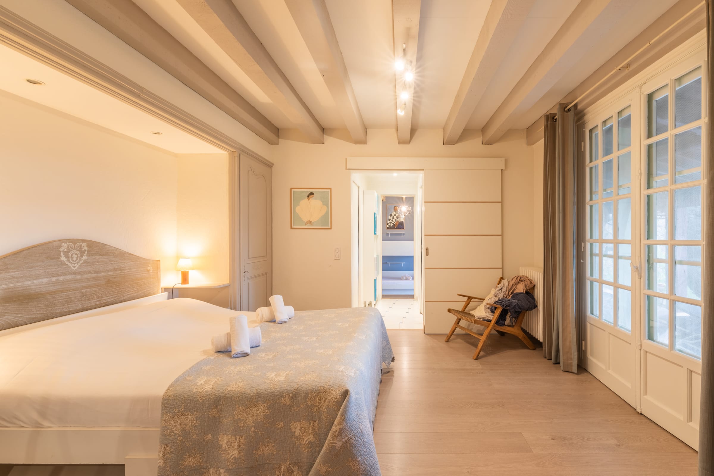 - one bedroom with queen-size bed (160cm) and en-suite bathroom with bathtub,