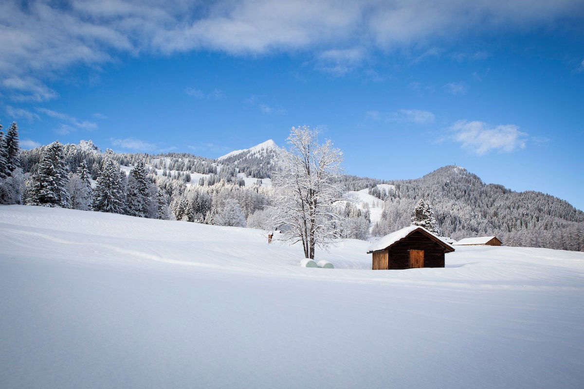 The Paula family holiday apartment is located in the historic center of Brand, right next to the Walser Ensemble. This ensemble consists of the parish church, a historic Walser house, an old Walser stable, the old elementary school and the vicarage of the parish of Maria Himmelfahrt.