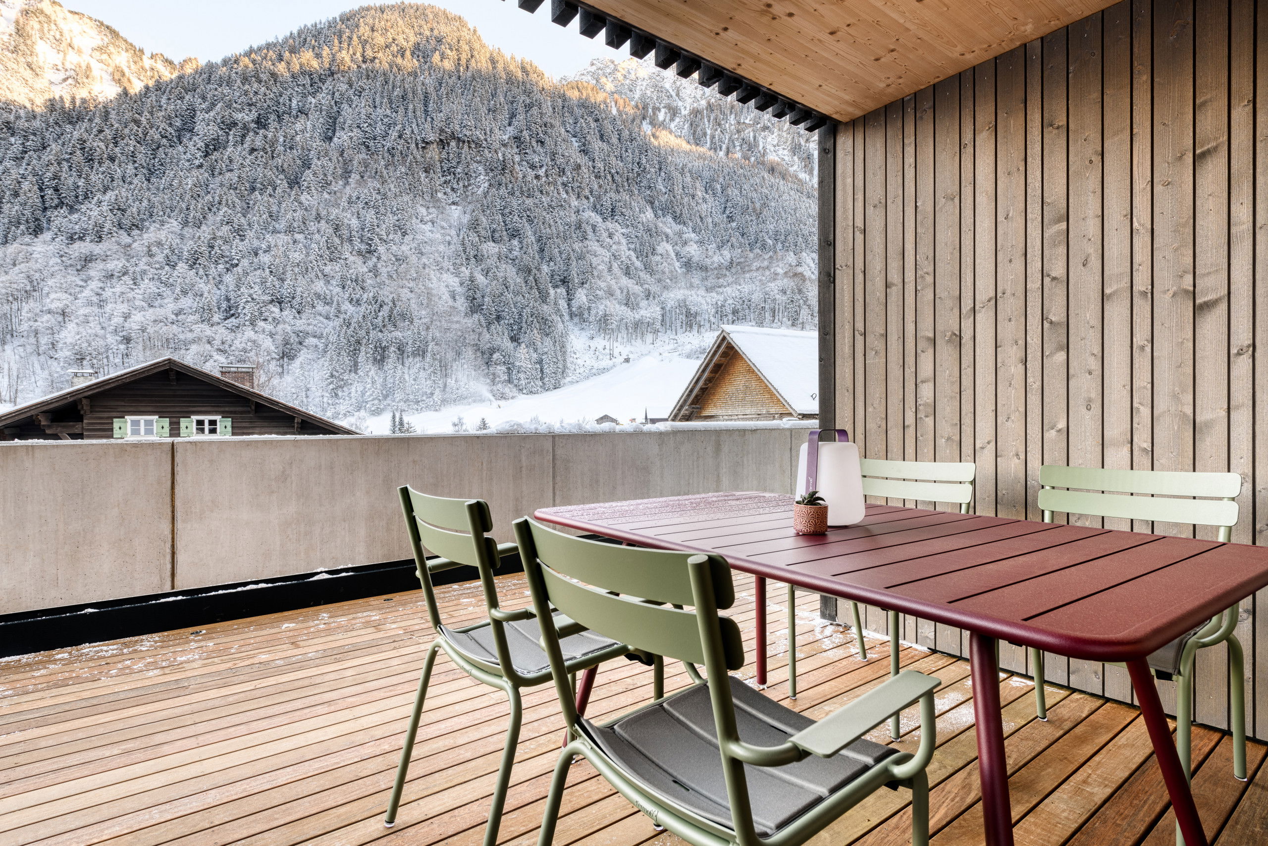 The deep and very spacious terrace facing SW always guarantees sunshine, provided the mighty peaks of the Rätikon allow it.