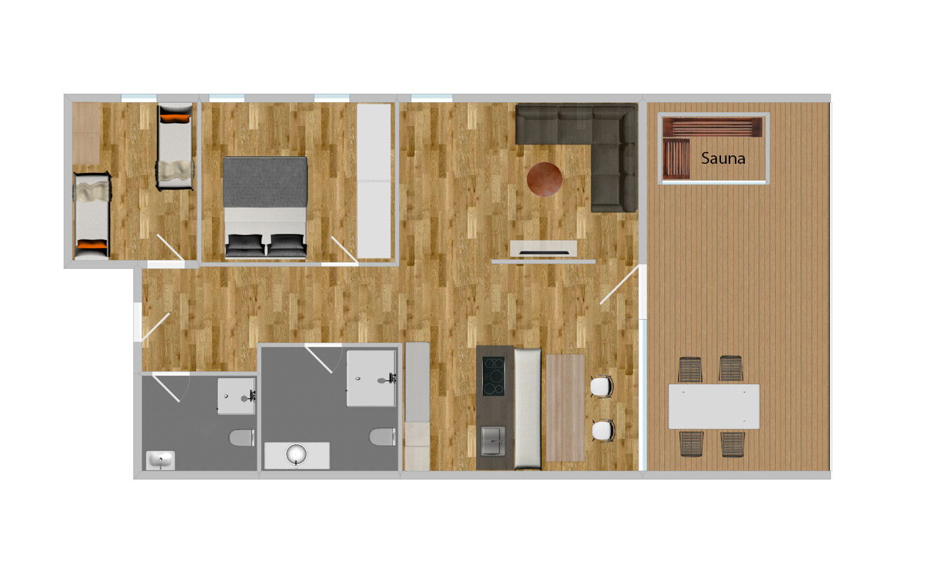 The two bathrooms are further “delighters”. Ensure the highest possible level of privacy for all travel participants.